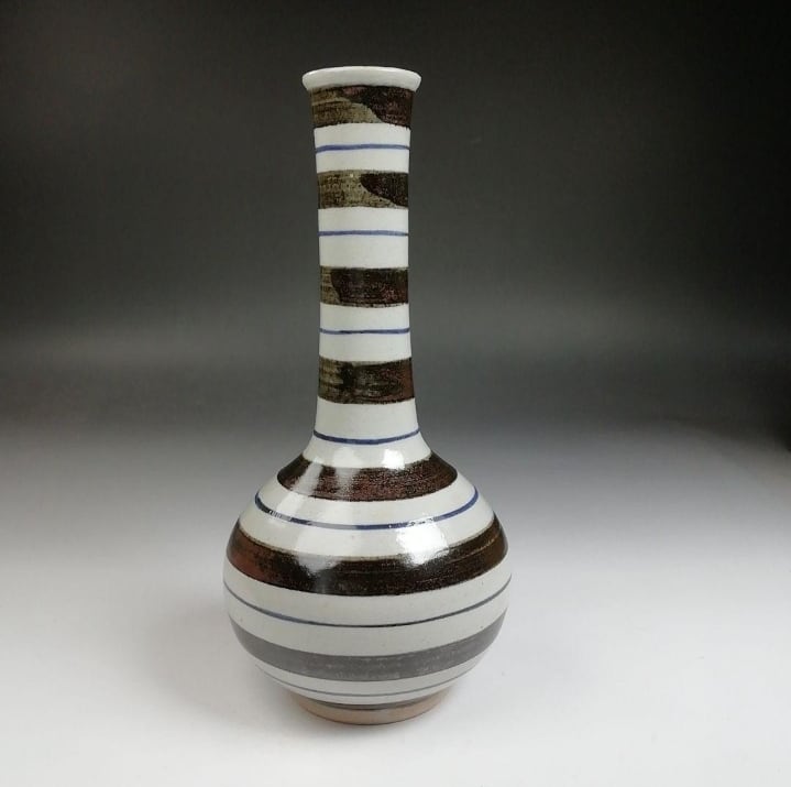 永樂善五郎家による、独楽縞(こまじま)模様の花入。