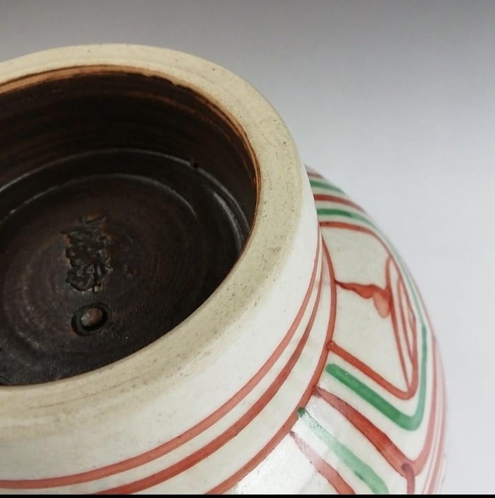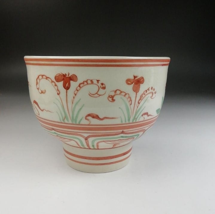 古曽部焼の素朴な味わいと、安南風赤絵の魅力が融合した、温かみのある一点です。