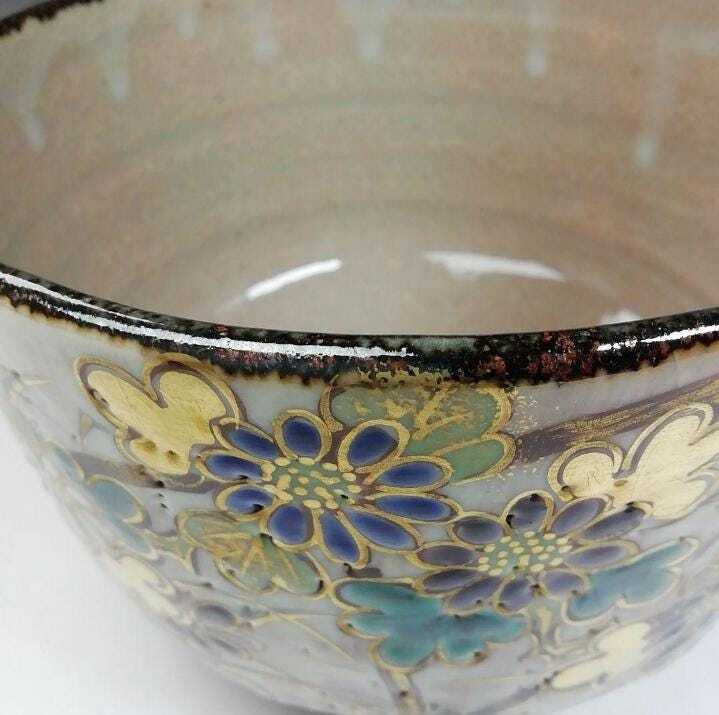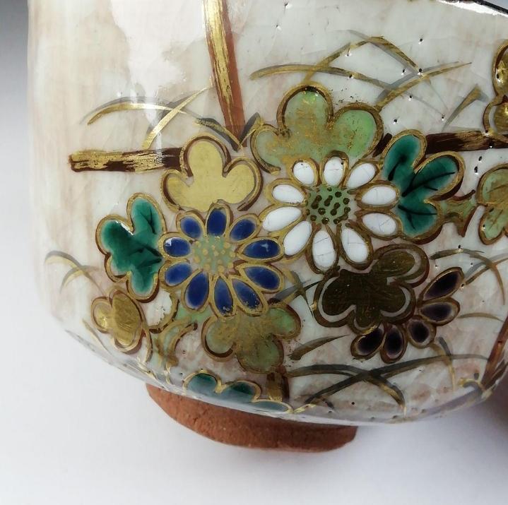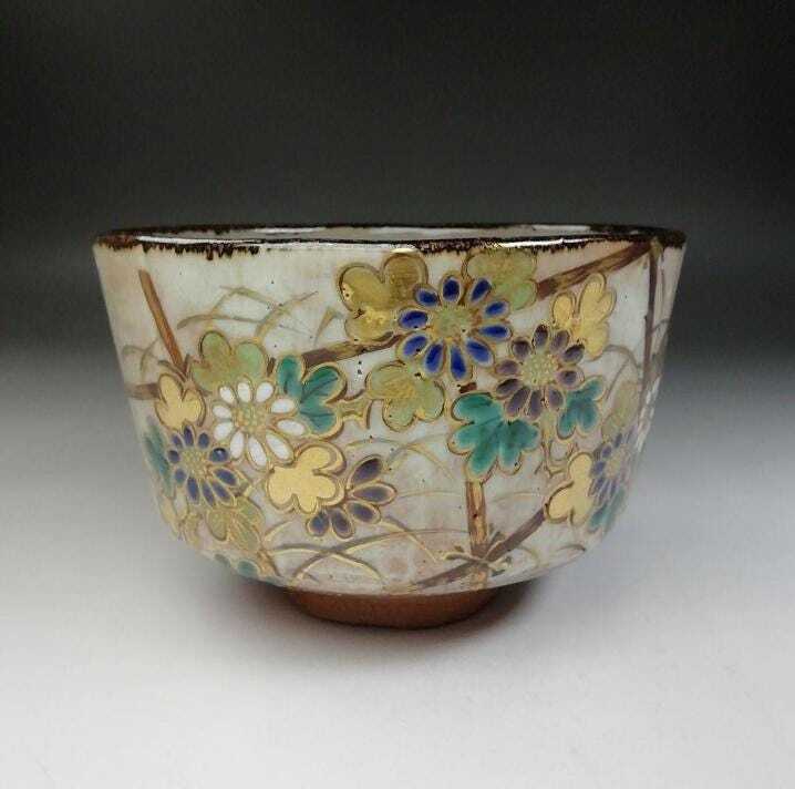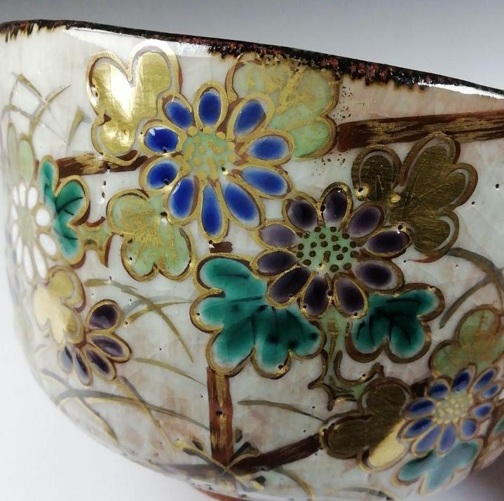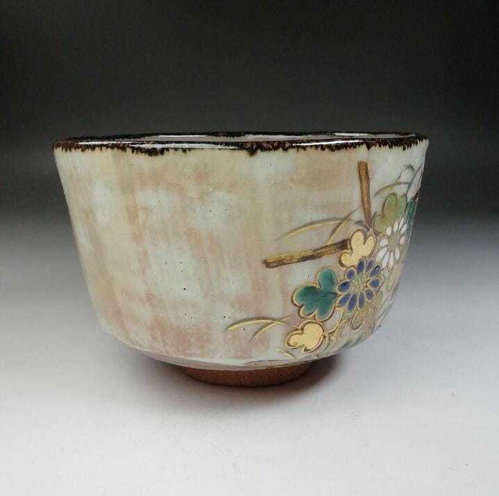 上品で華やかな絵付けが魅力の、京焼らしい優美な抹茶碗です。