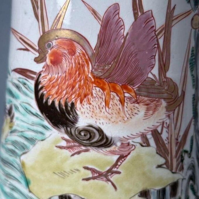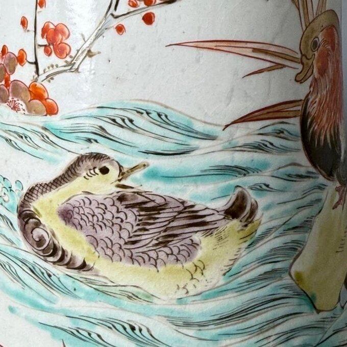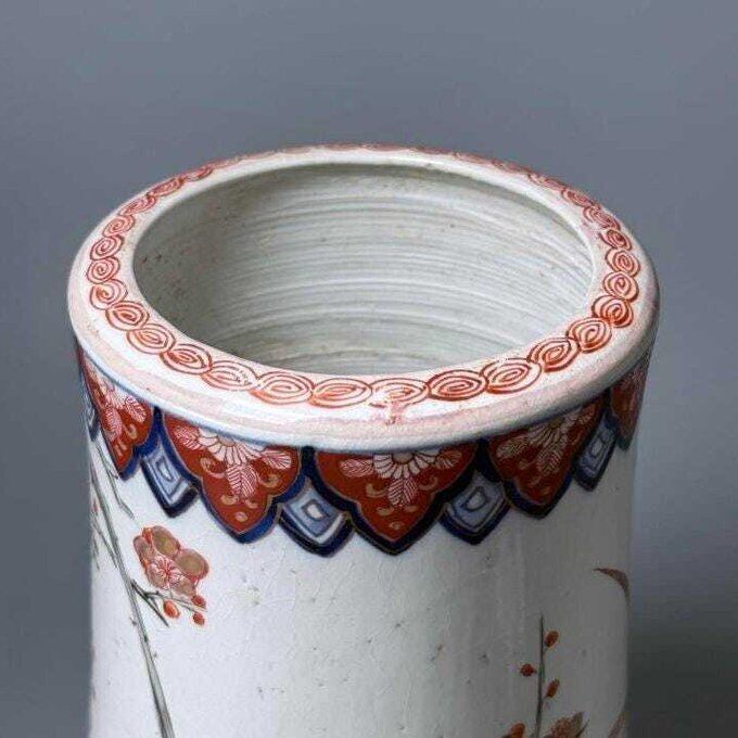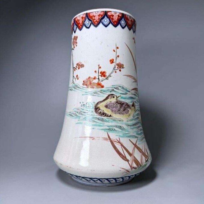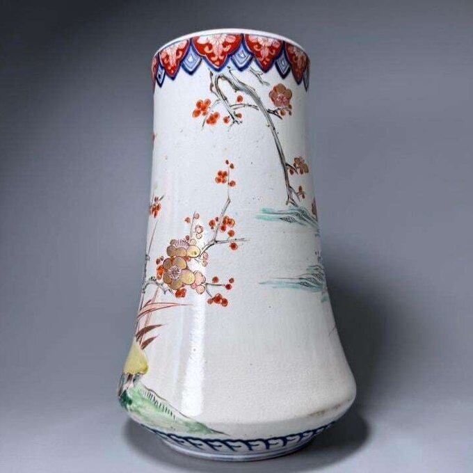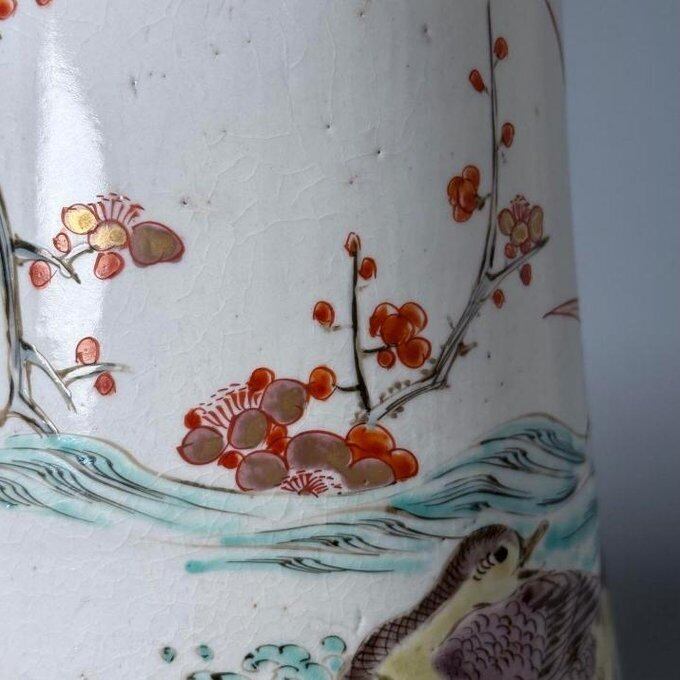 明治期 有田焼 花瓶|染錦 水鳥文・梅文|伊万里輸出磁器|19世紀アンティーク