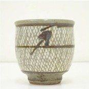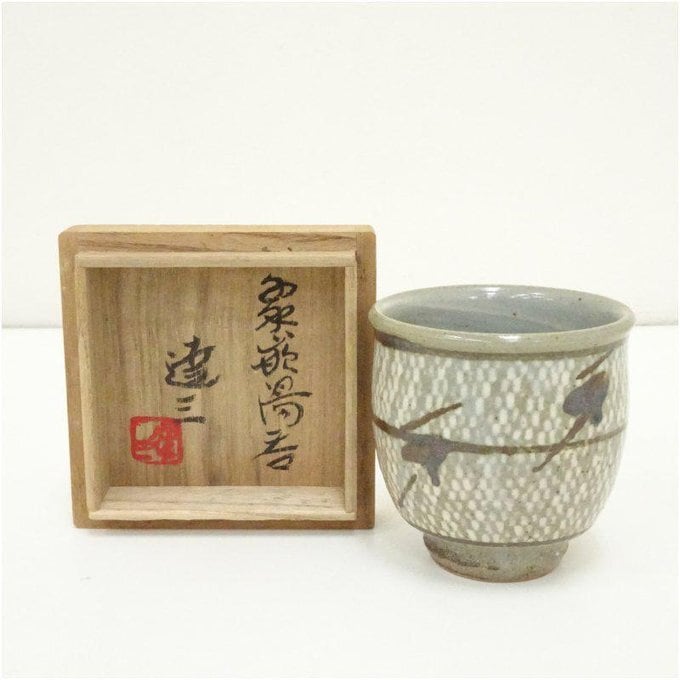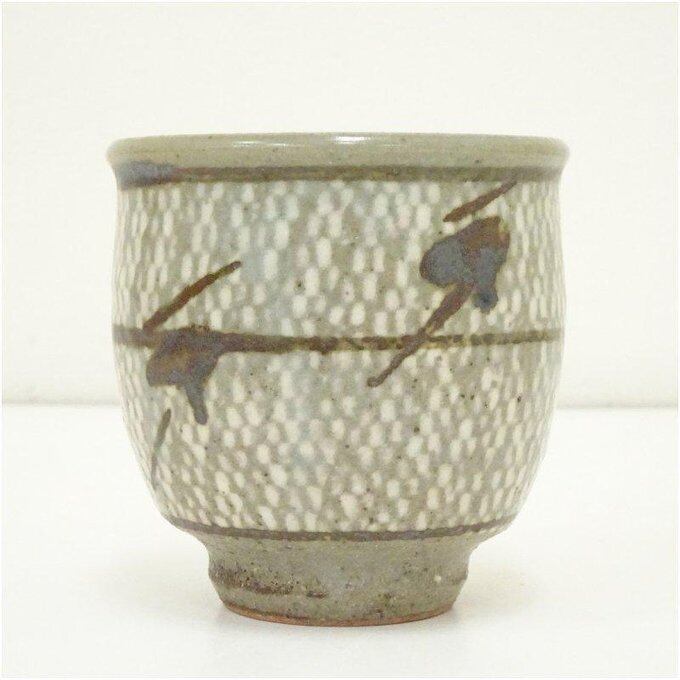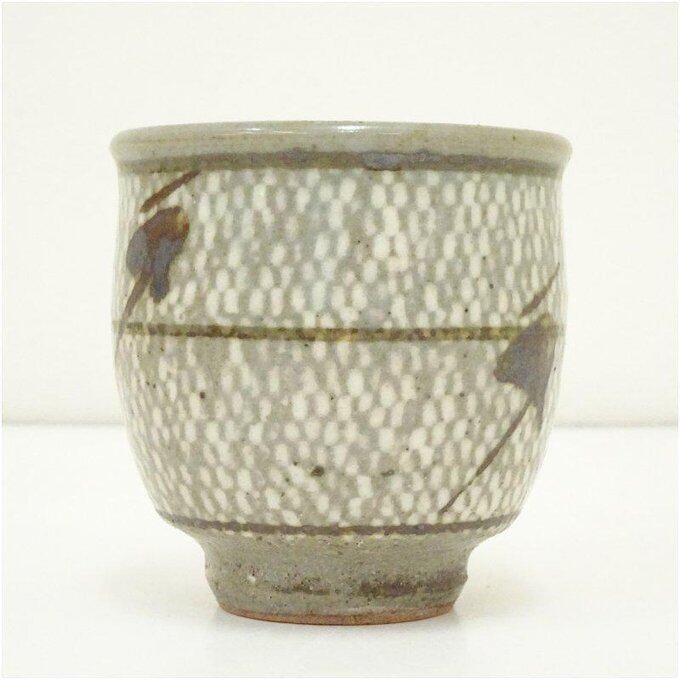 日本を代表する陶芸家、**島岡達三(1919–2007)**による縄文象嵌の湯呑です。