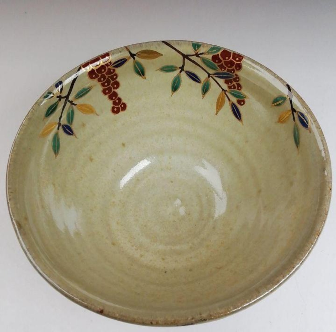・赤い実と緑の葉を中心に、深い青を添えた上品な色絵