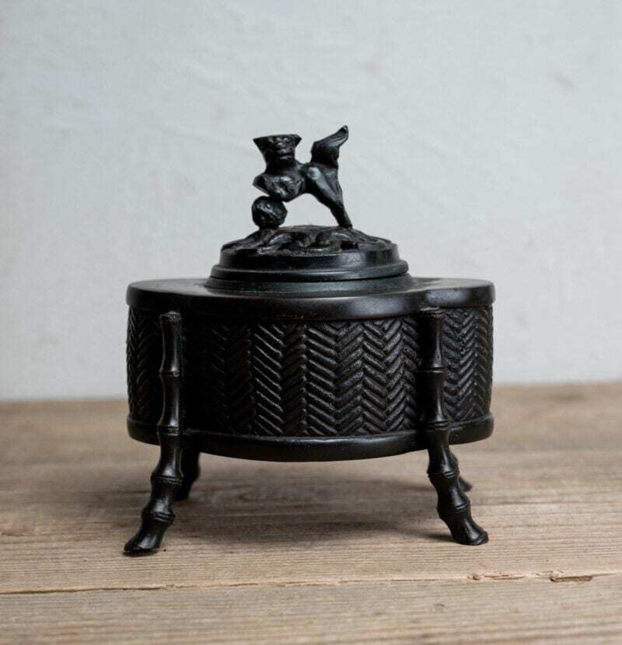 経年により、青銅特有の**深みのある美しい古色(パティナ)**が生まれ、落ち着きと風格を備えています。装飾性だけでなく実用性も保たれており、香炉として問題なくご使用いただけます。