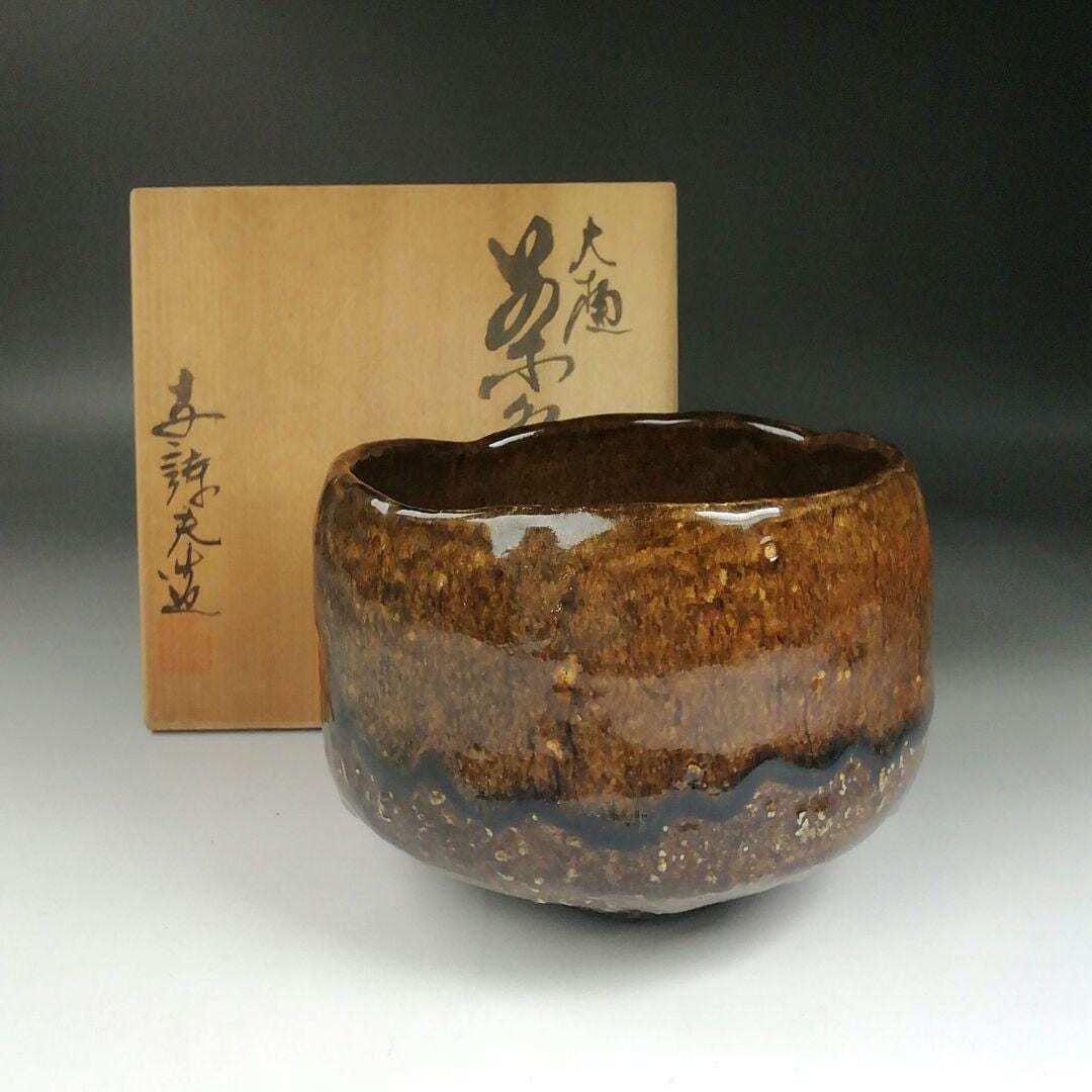 大樋焼 抹茶茶碗 岩村与詩夫 作|飴釉|共箱付|金沢陶芸
