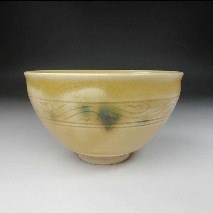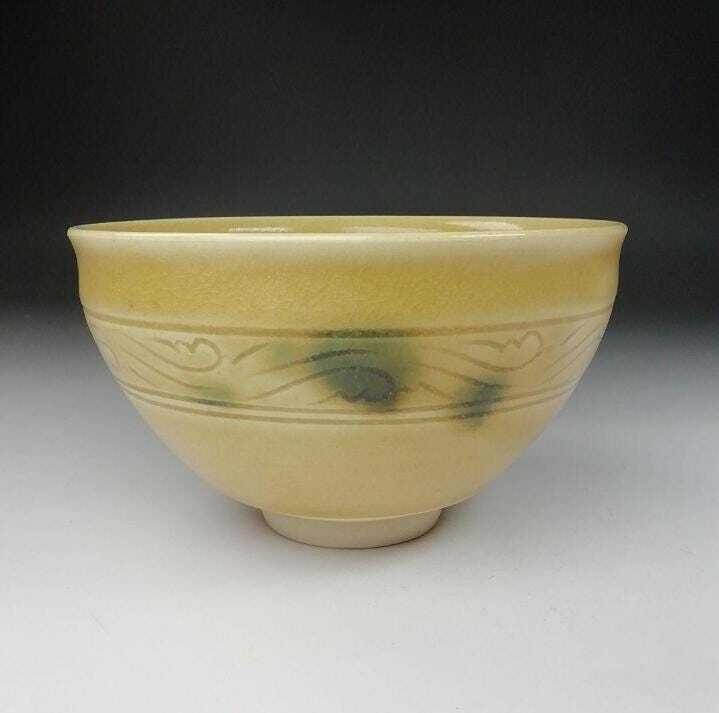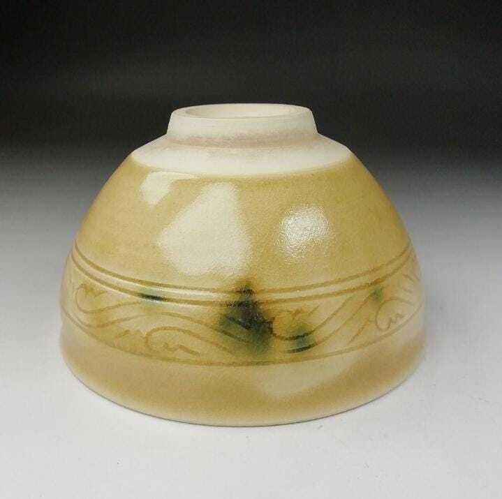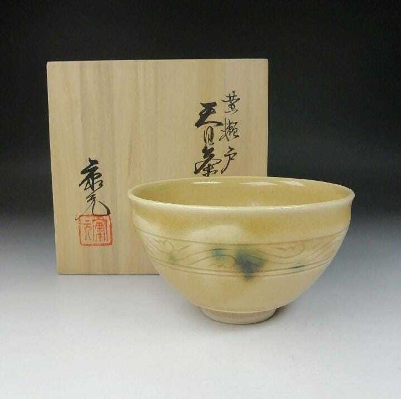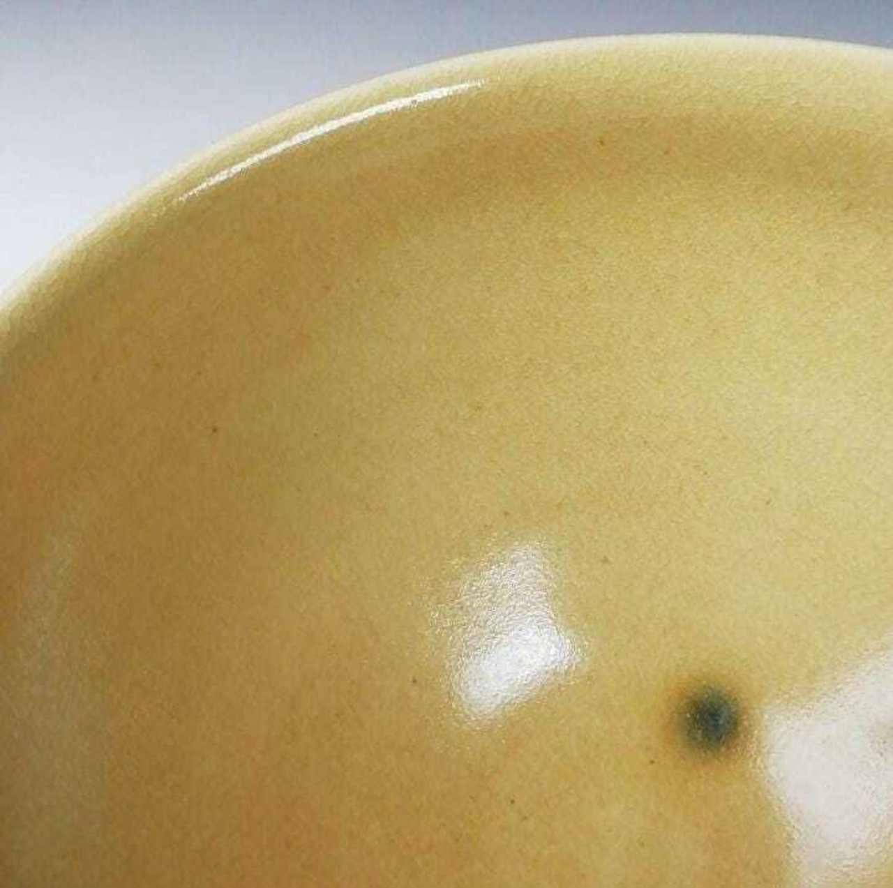 胴には黄瀬戸特有の**胆礬(たんぱん)**による緑味の斑点が現れ、