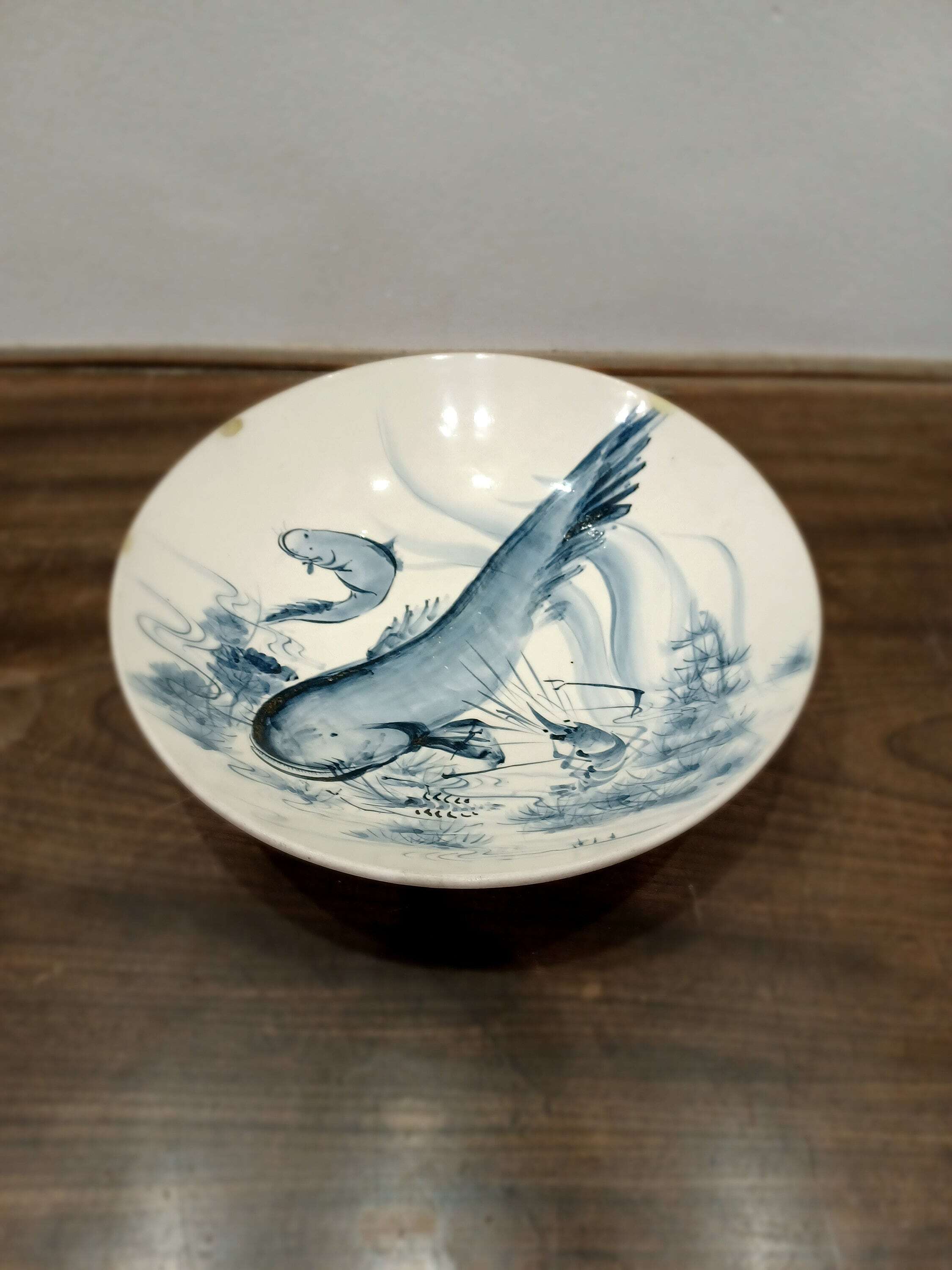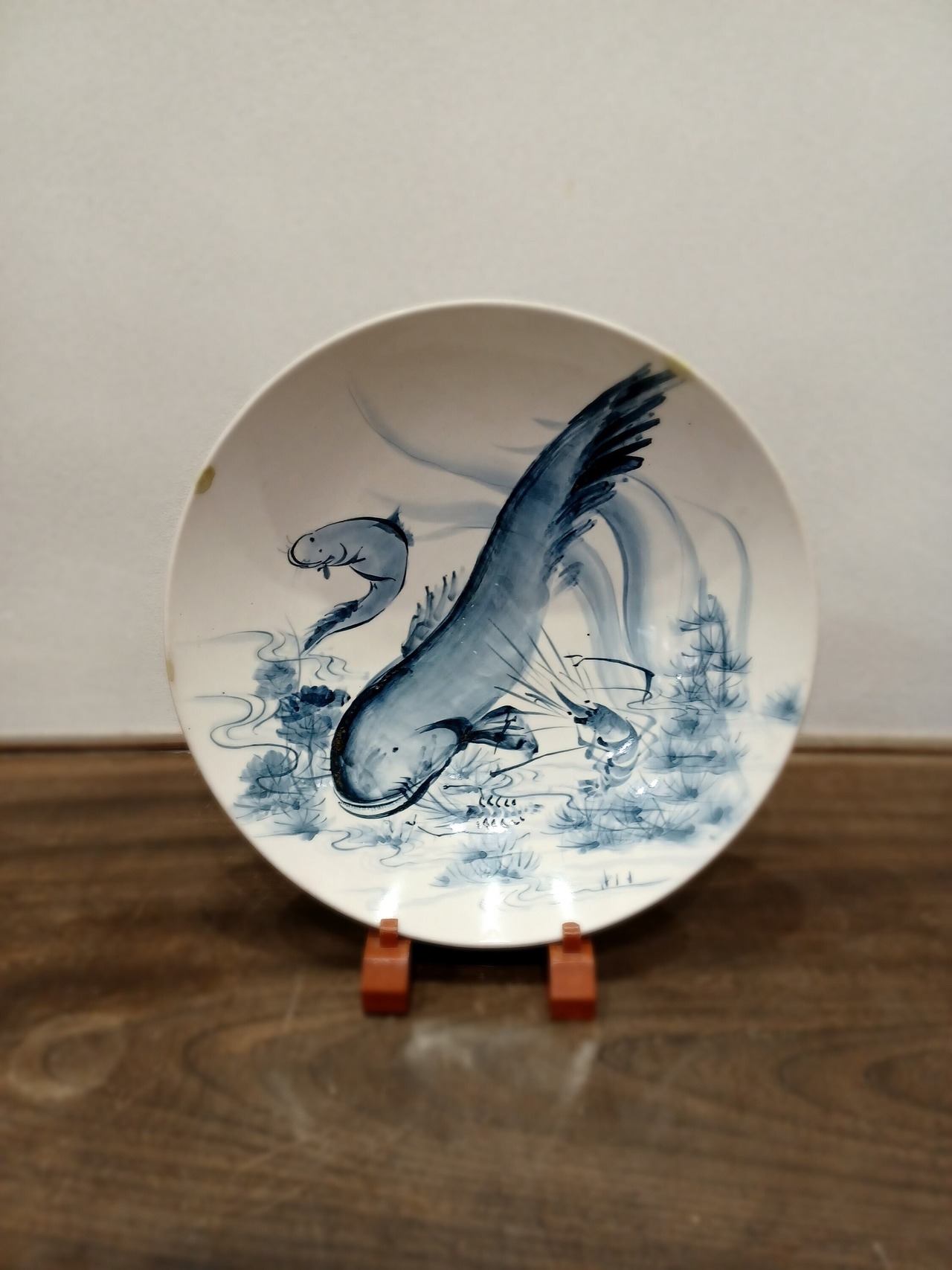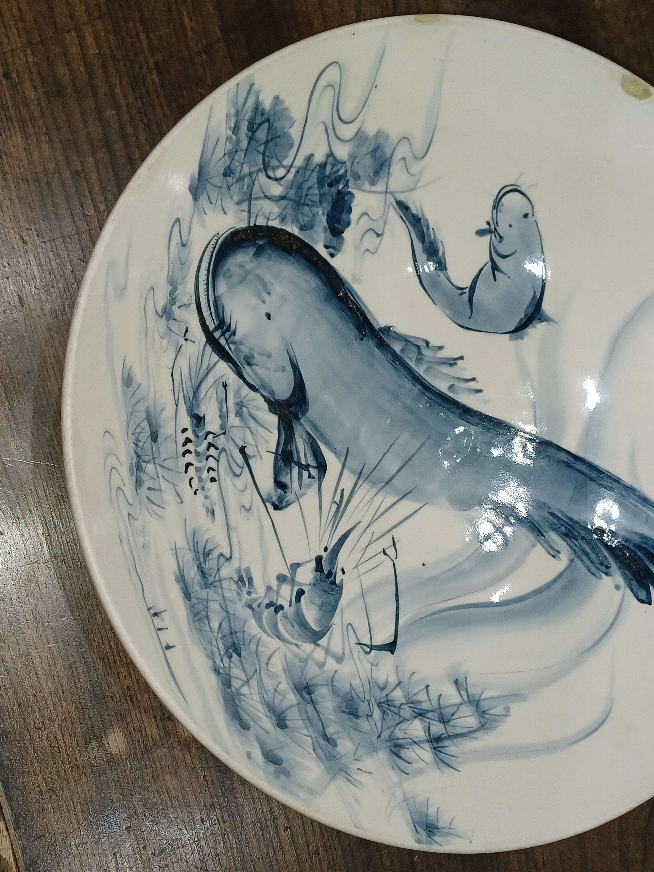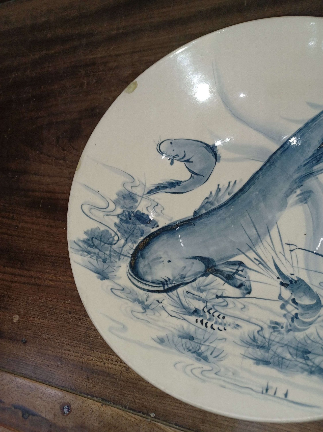染付 鯰図 大鉢/飾り皿|江戸期|直径34.7cm