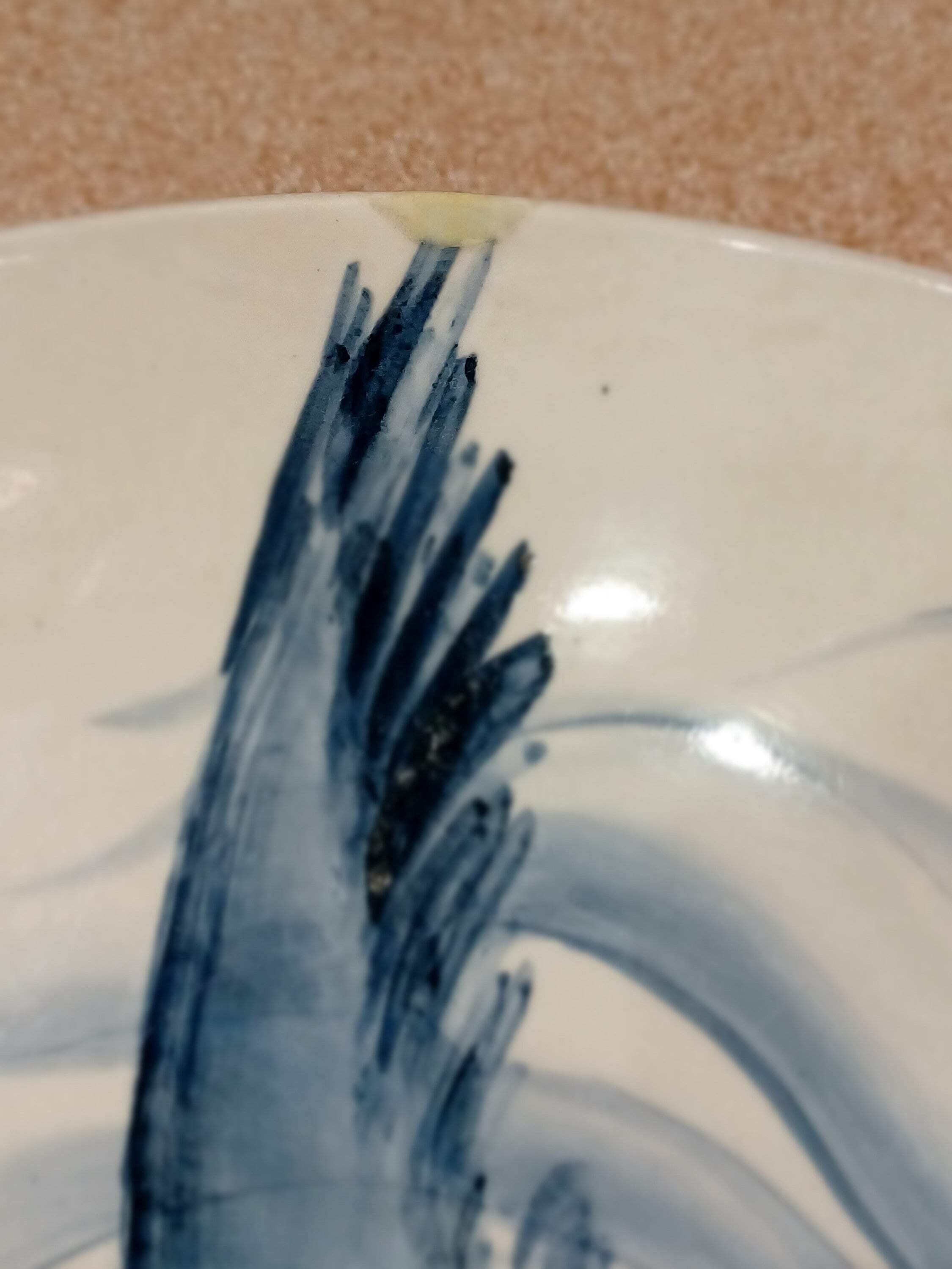 迫力ある構図が目を引く、江戸時代の** 染付大鉢(飾り皿)**です。