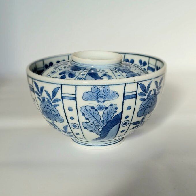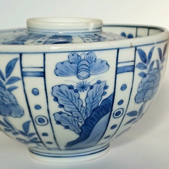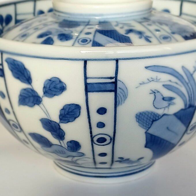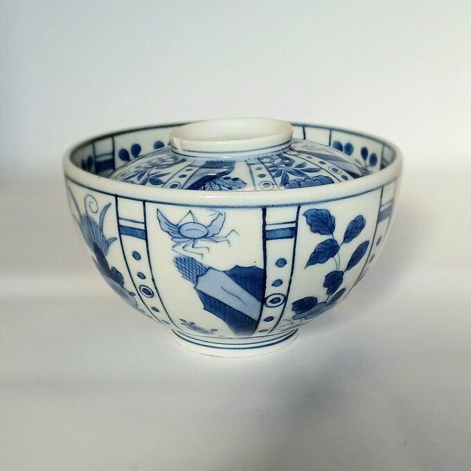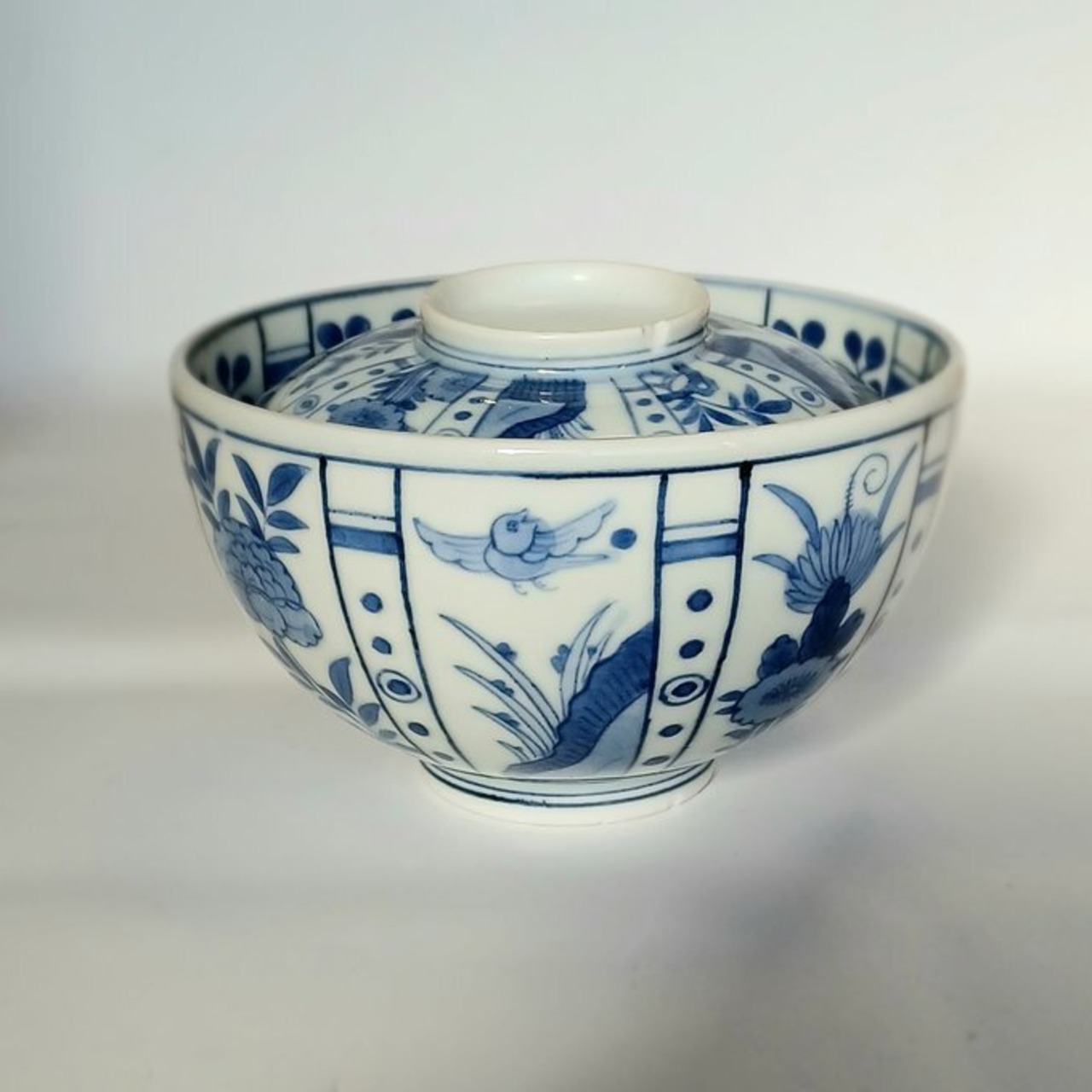 古伊万里染付芙蓉手草花鳥虫文蓋物