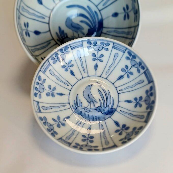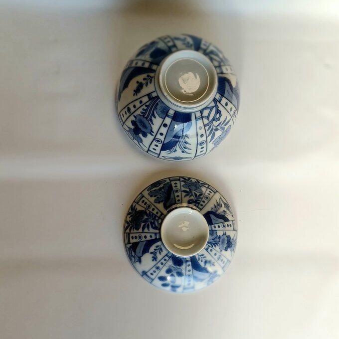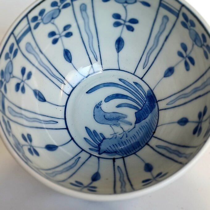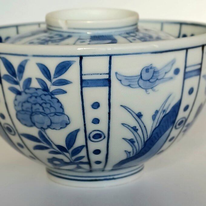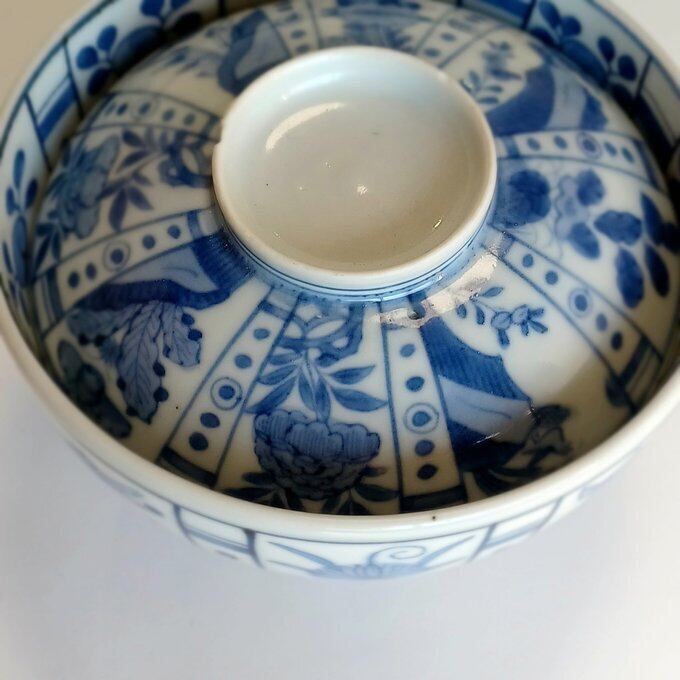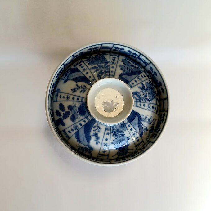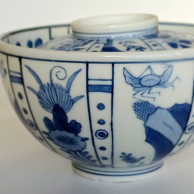 古伊万里染付芙蓉手草花鳥虫文蓋物