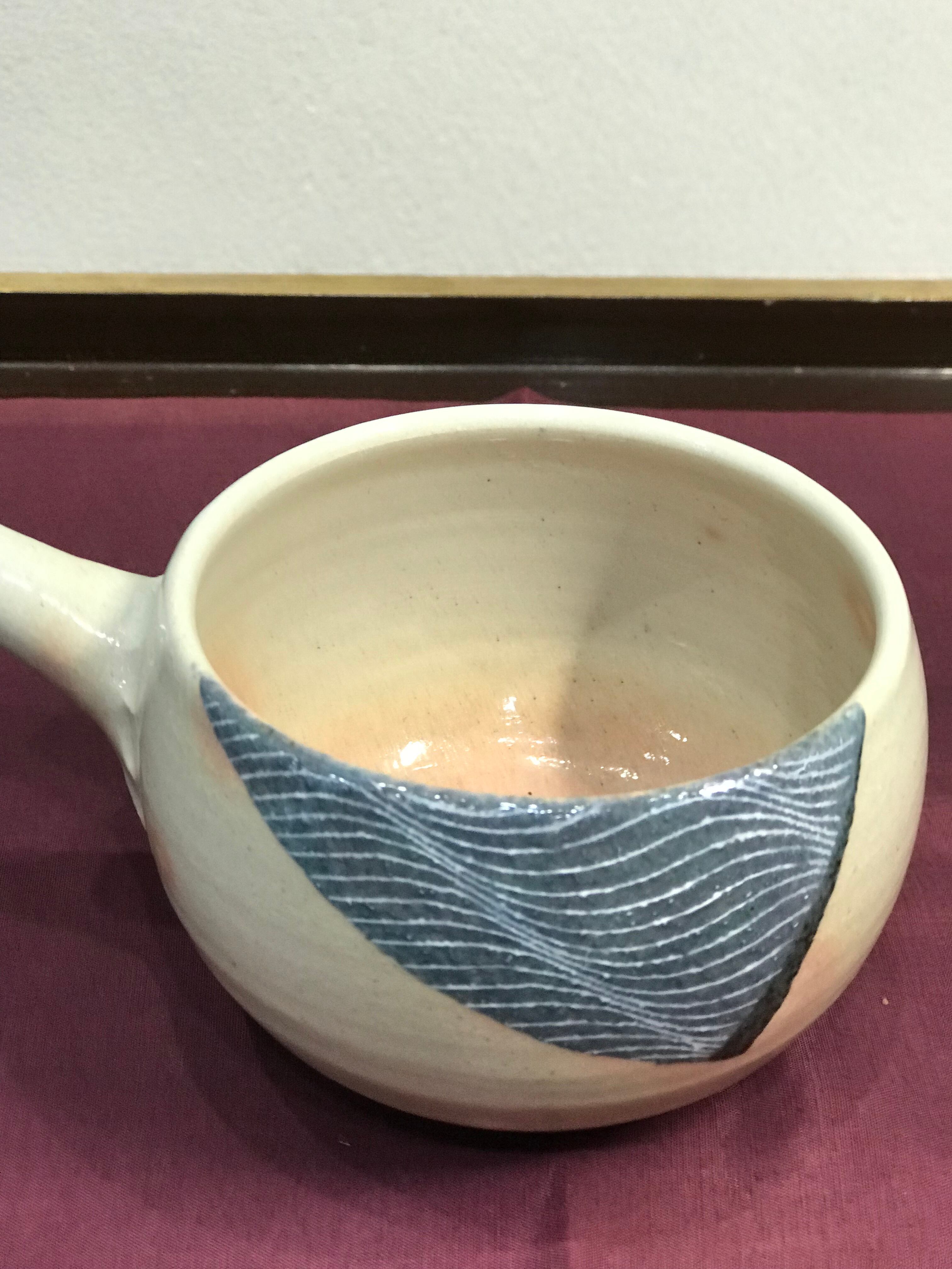 現代萩焼を代表する陶芸家・上田敦之氏による「青化粧波文片口注器」。