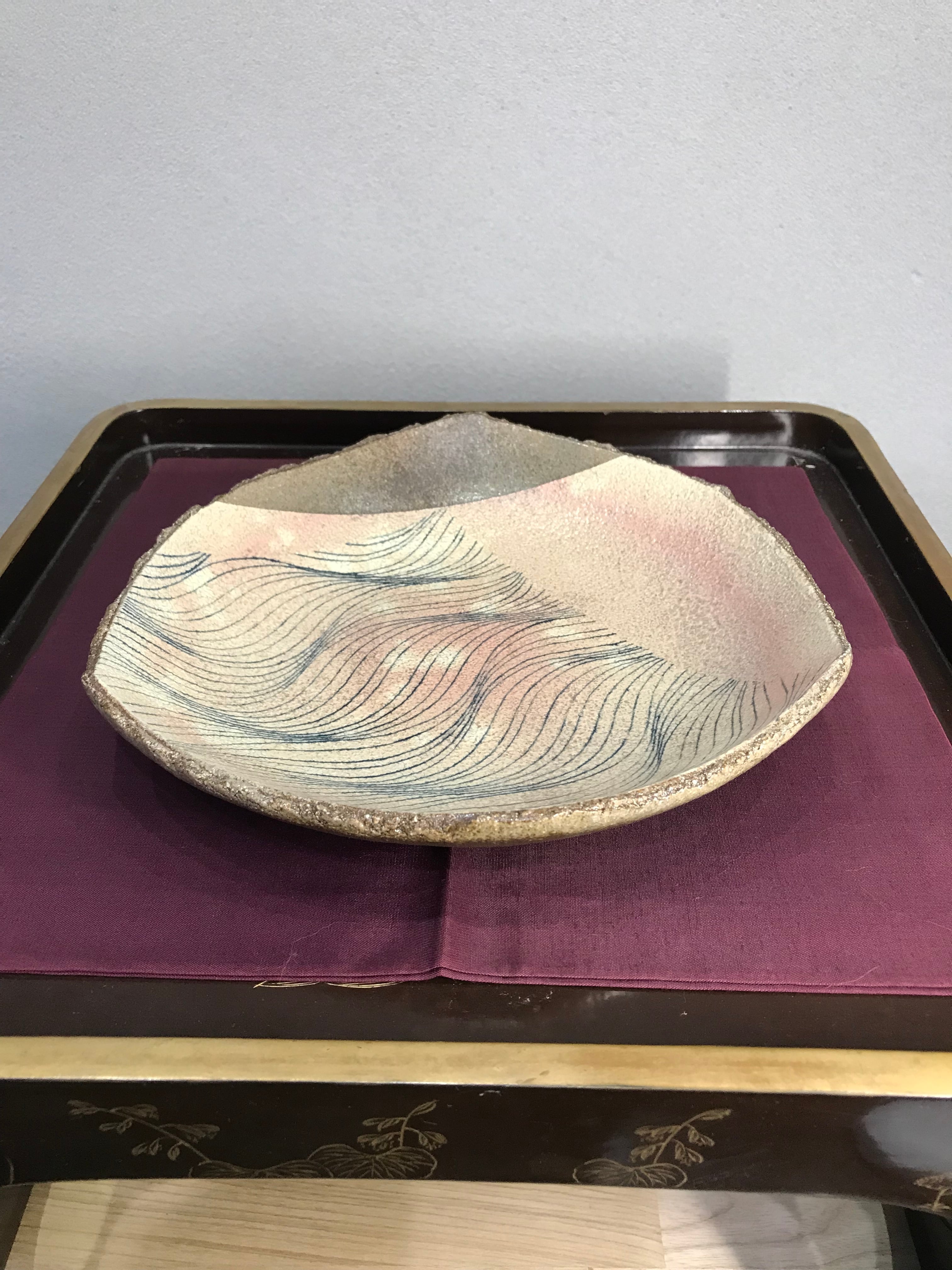 萩焼作家・上田敦之先生による「波文タタラ三角皿」です。
