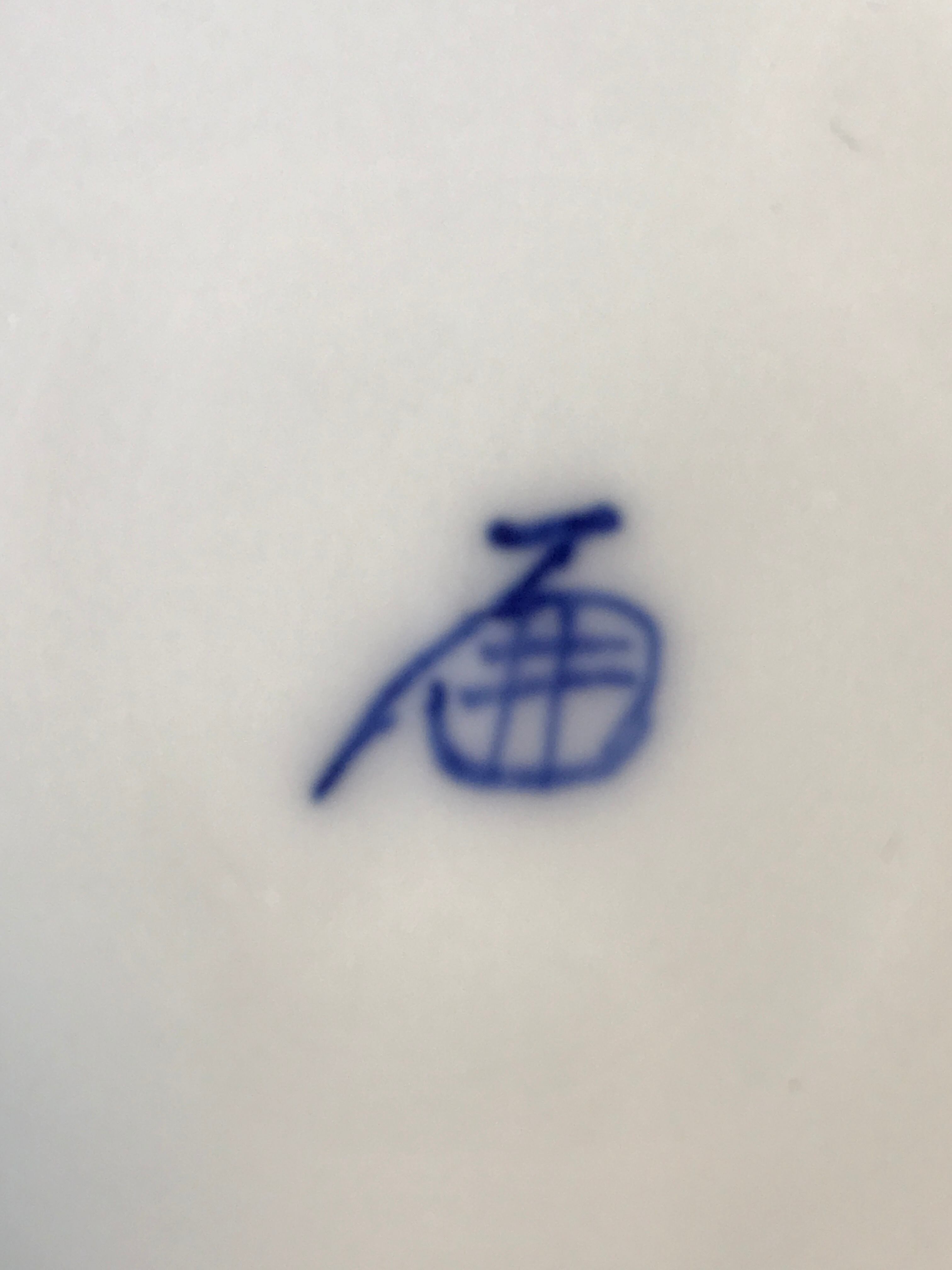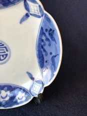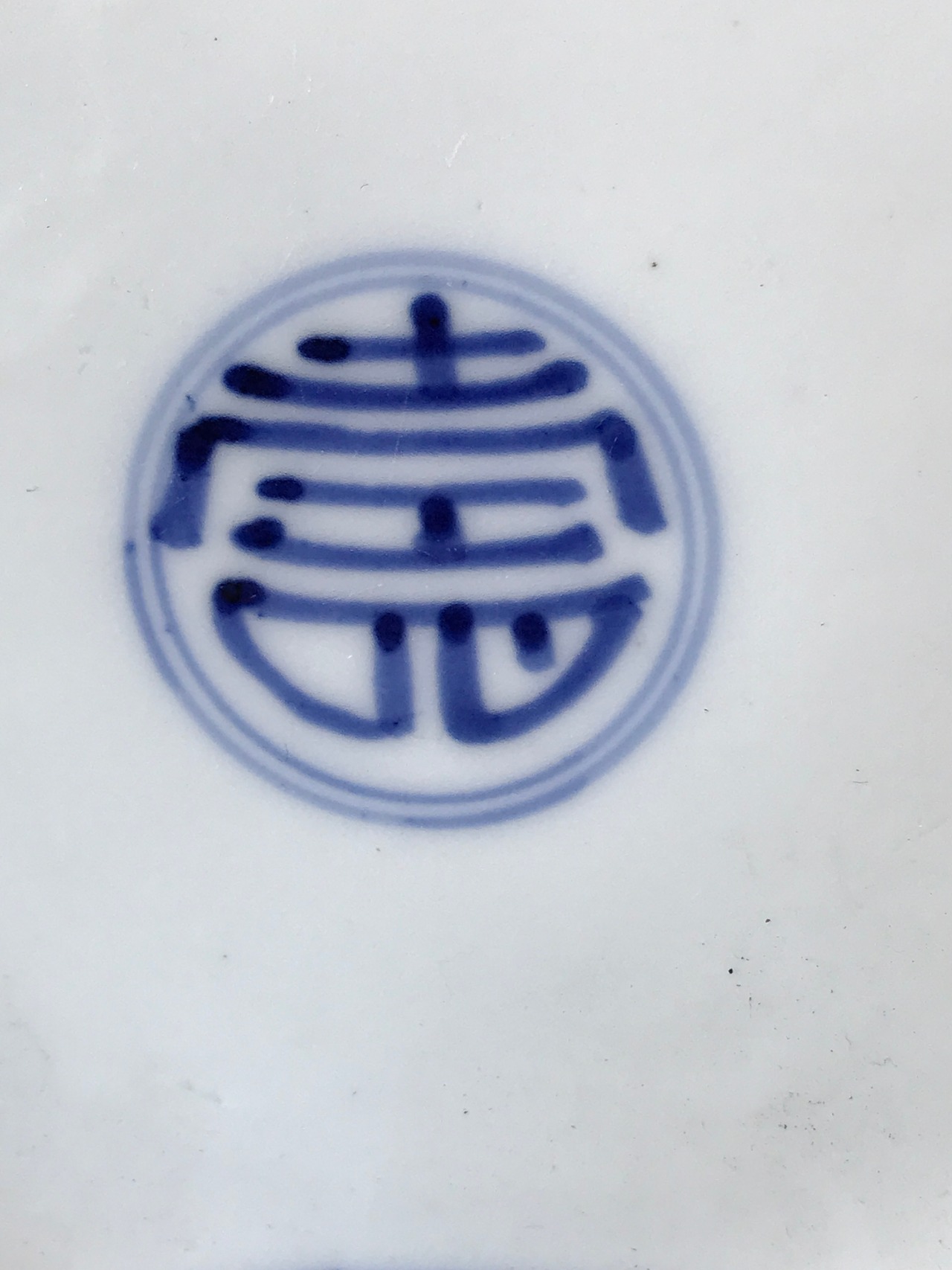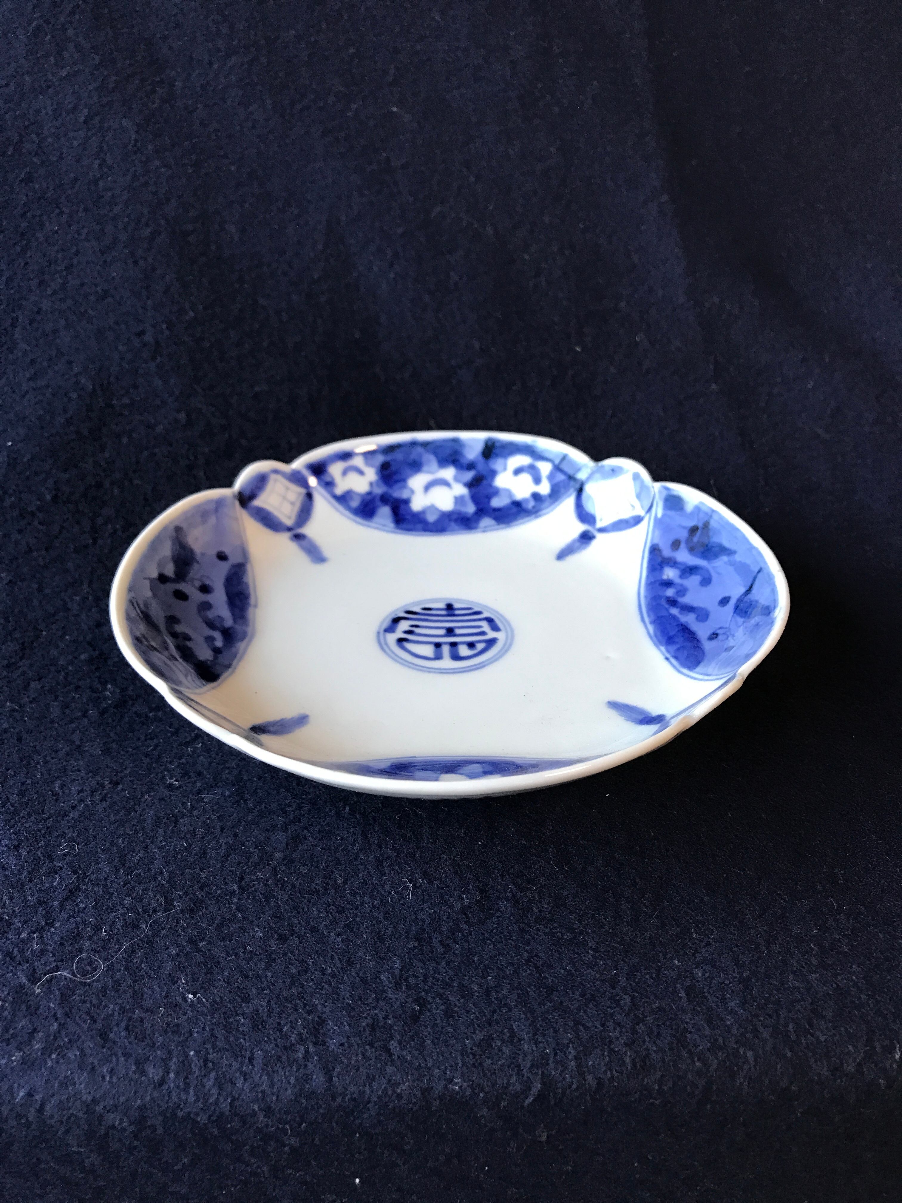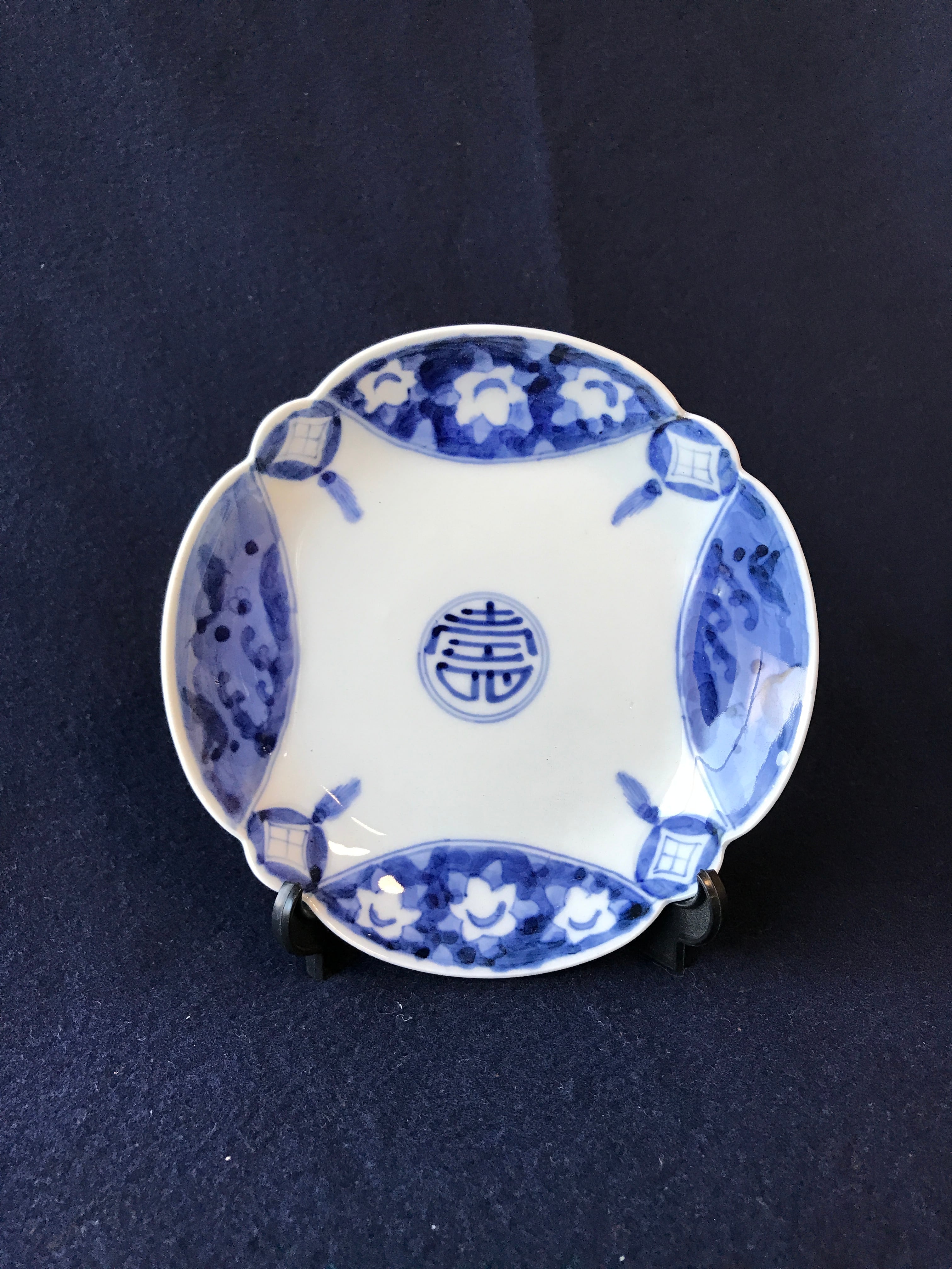 明治伊万里:染付寿文中皿【茶茶焼】 15cm(15.5cm ) x h3.2cm