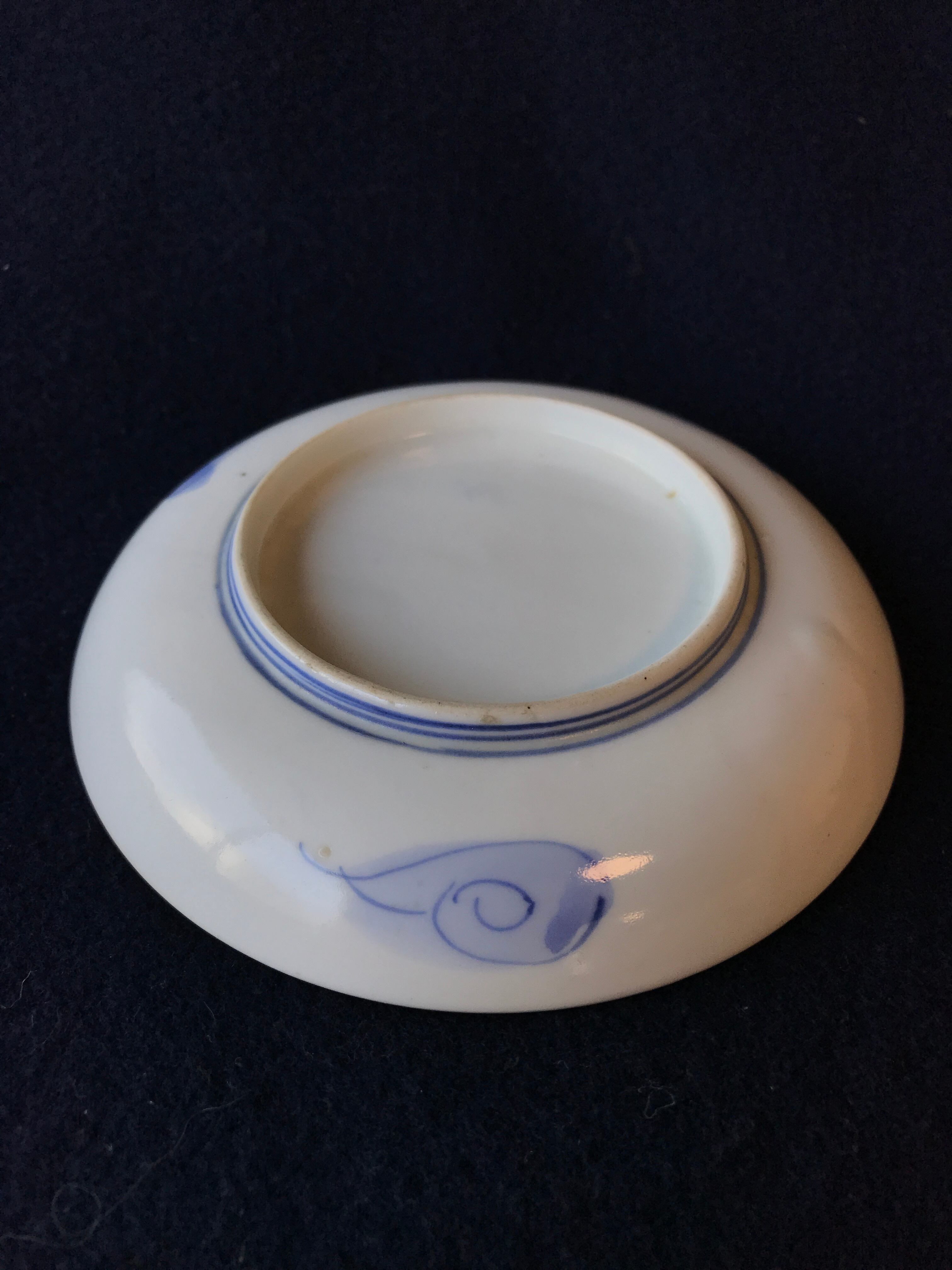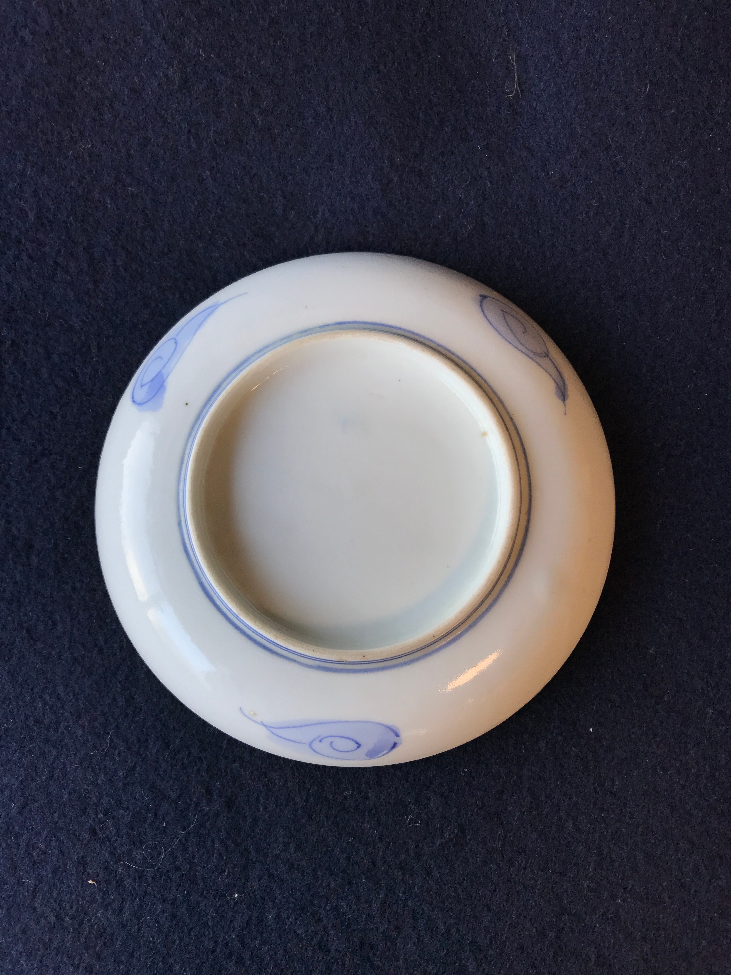 明治伊万里 染付盆栽鑑賞人物図小皿 手塩皿 径12.3cm X 高さ2.7cm