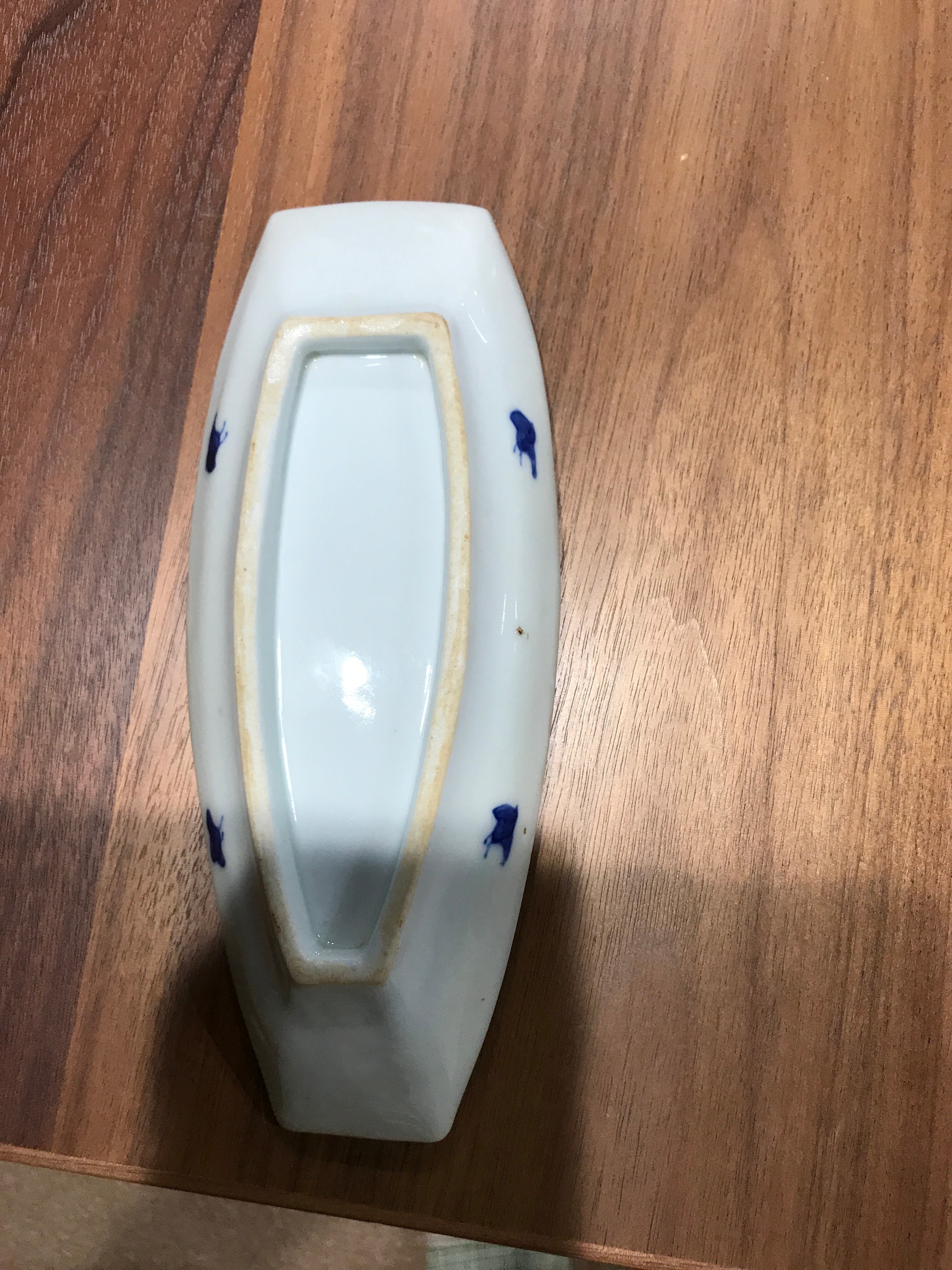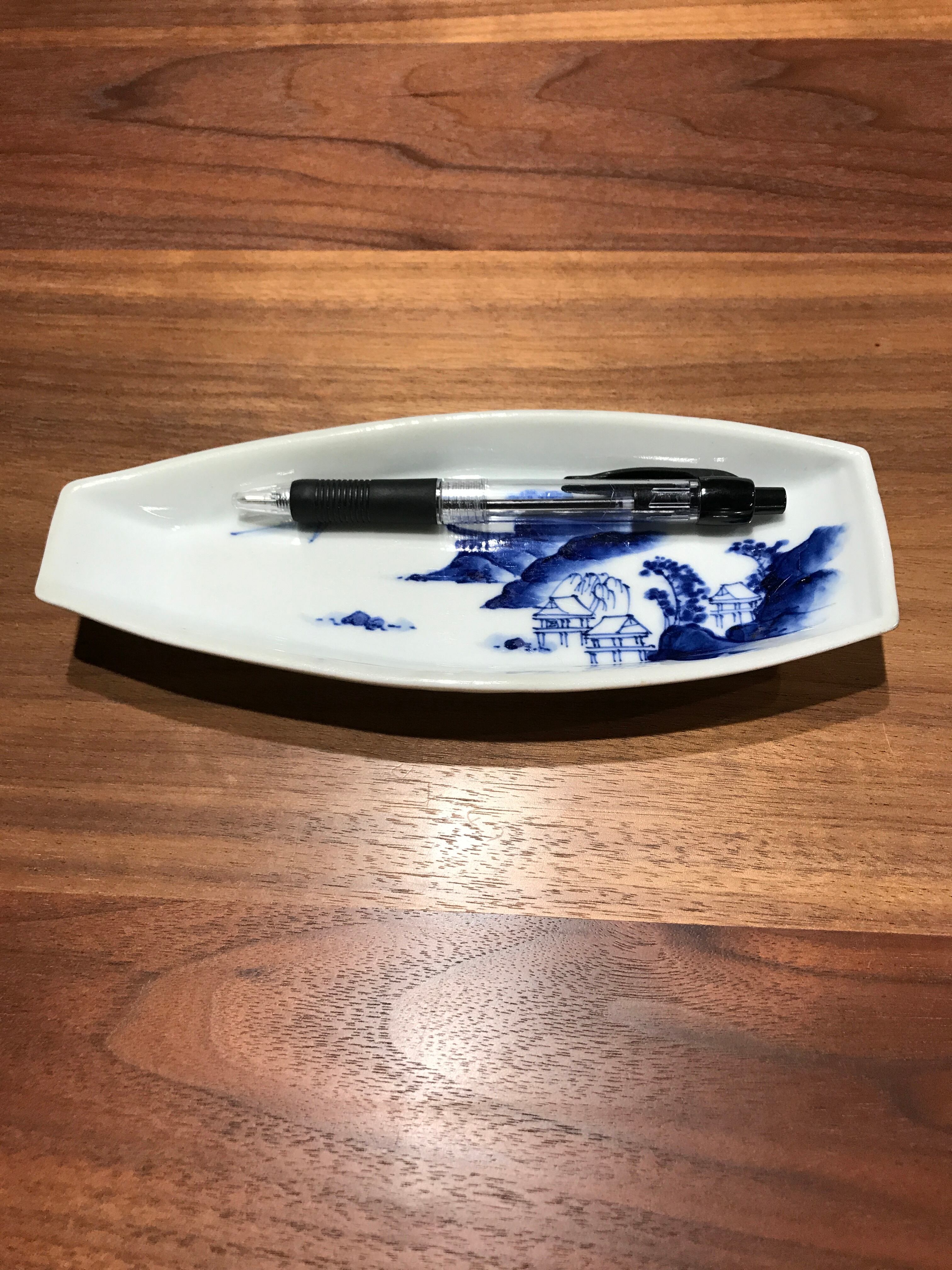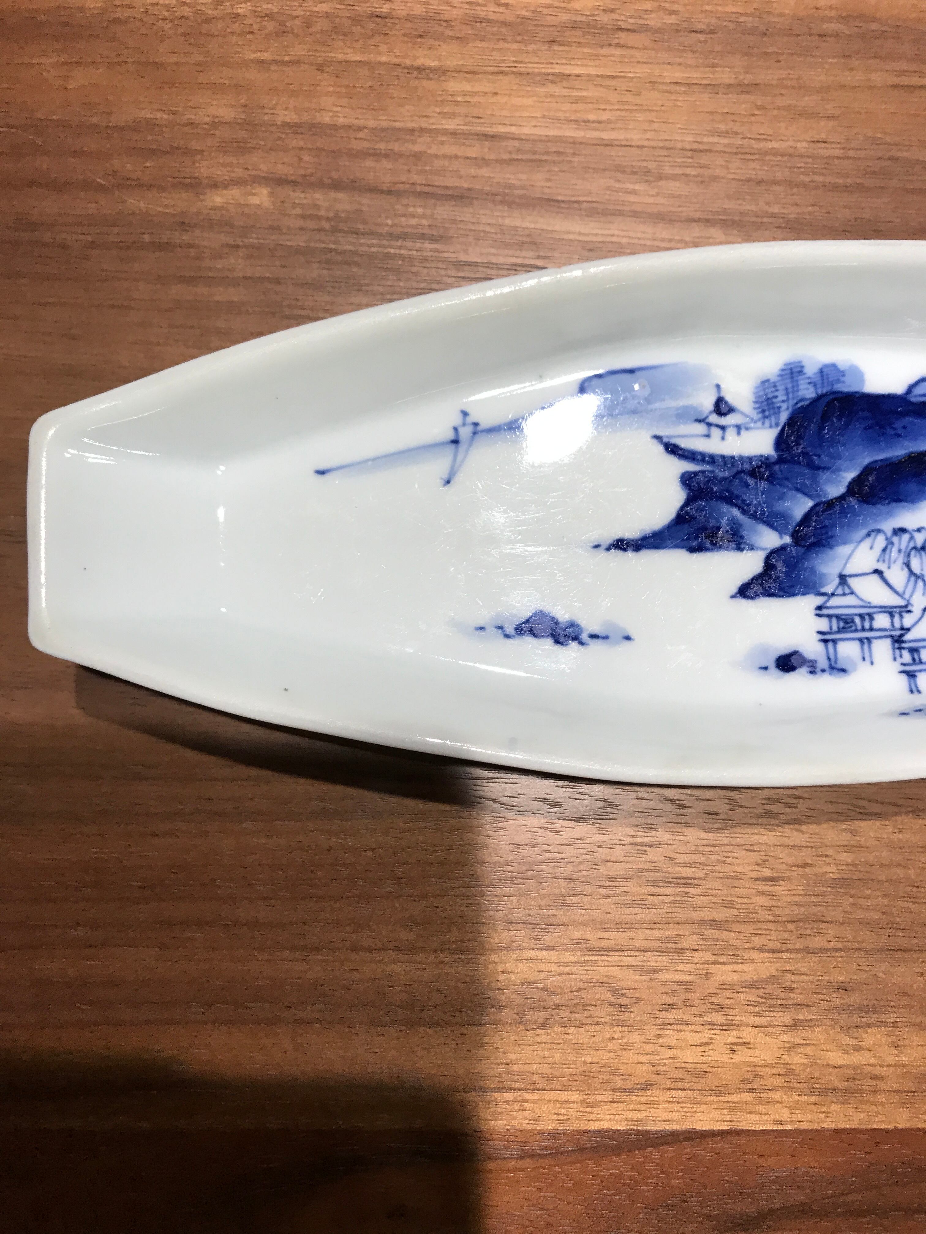 舟形小皿:染付山水文【明治ー大正期】【アンティーク】(ペン皿にいかがですか?) w20.4cm
