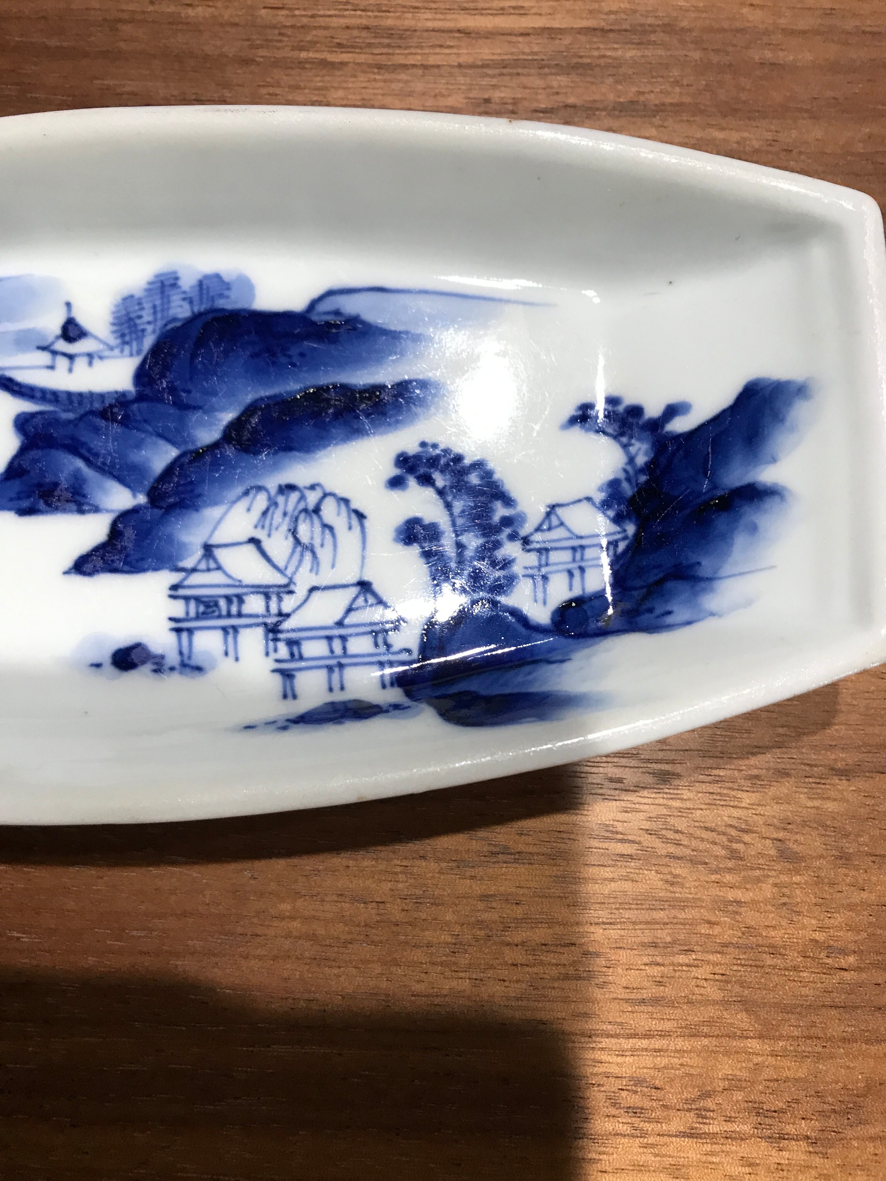 舟形小皿:染付山水文【明治ー大正期】【アンティーク】