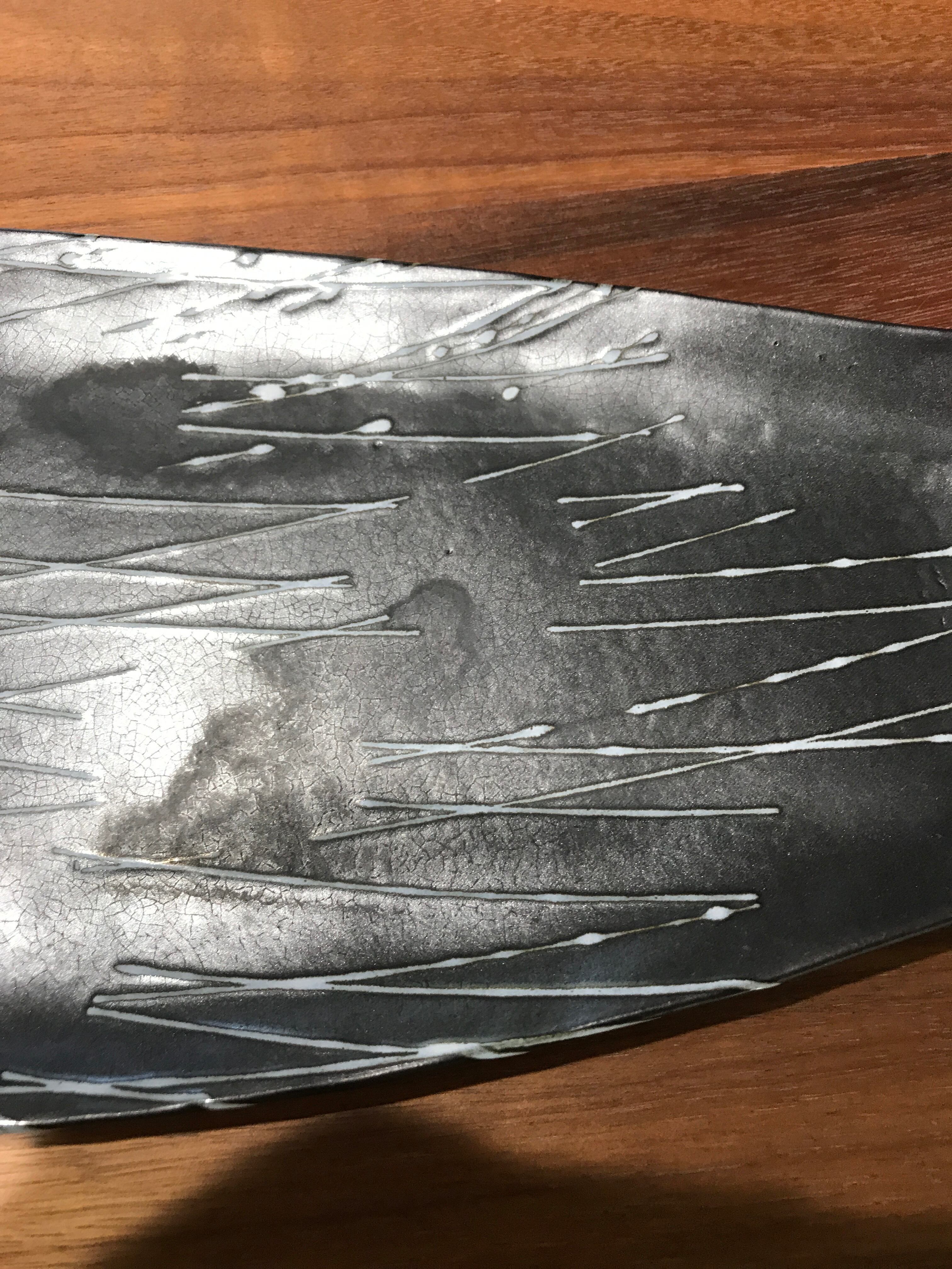 黒釉変形皿 松野創平作 萩焼 w29.3cm X d17cm