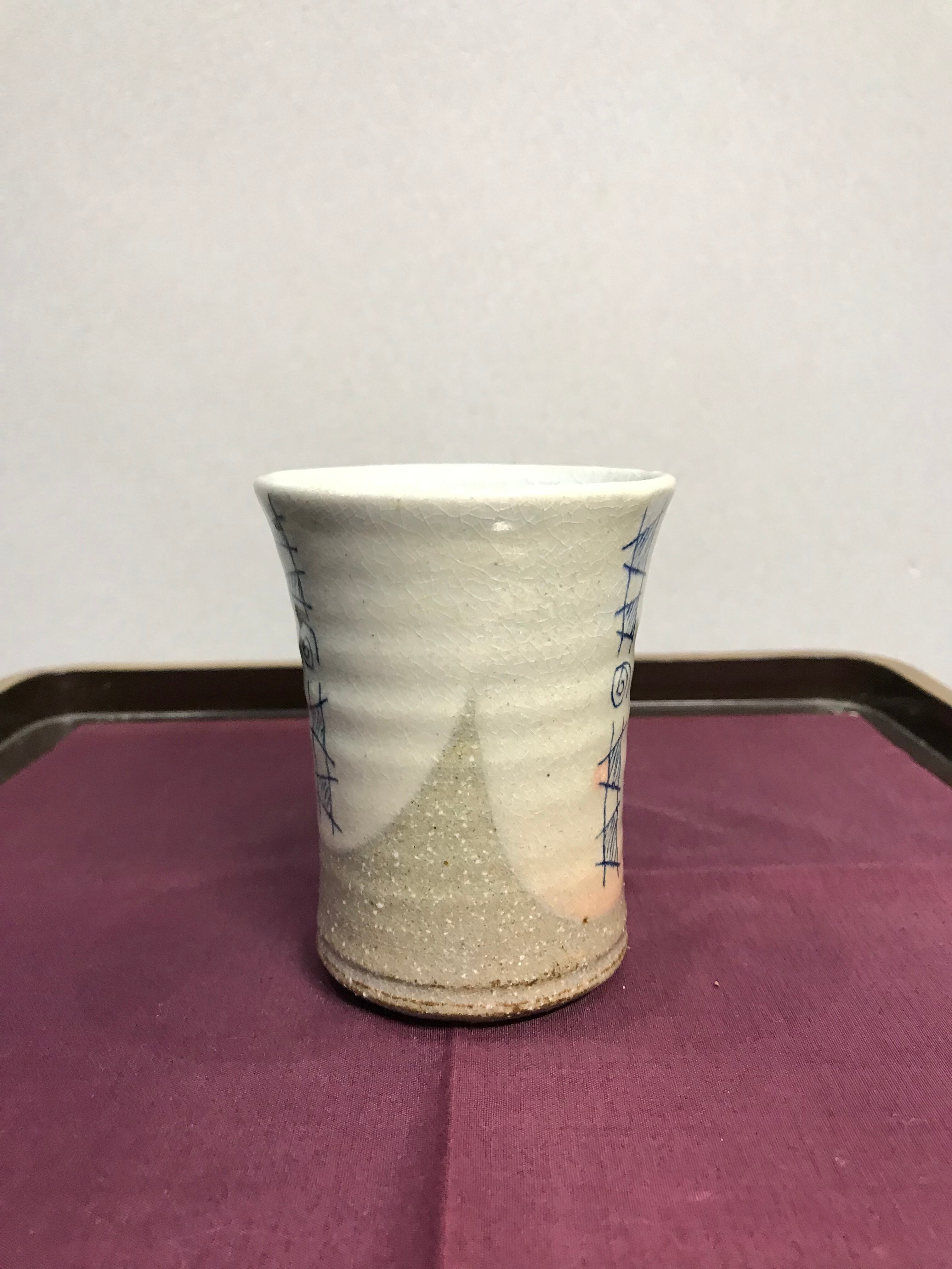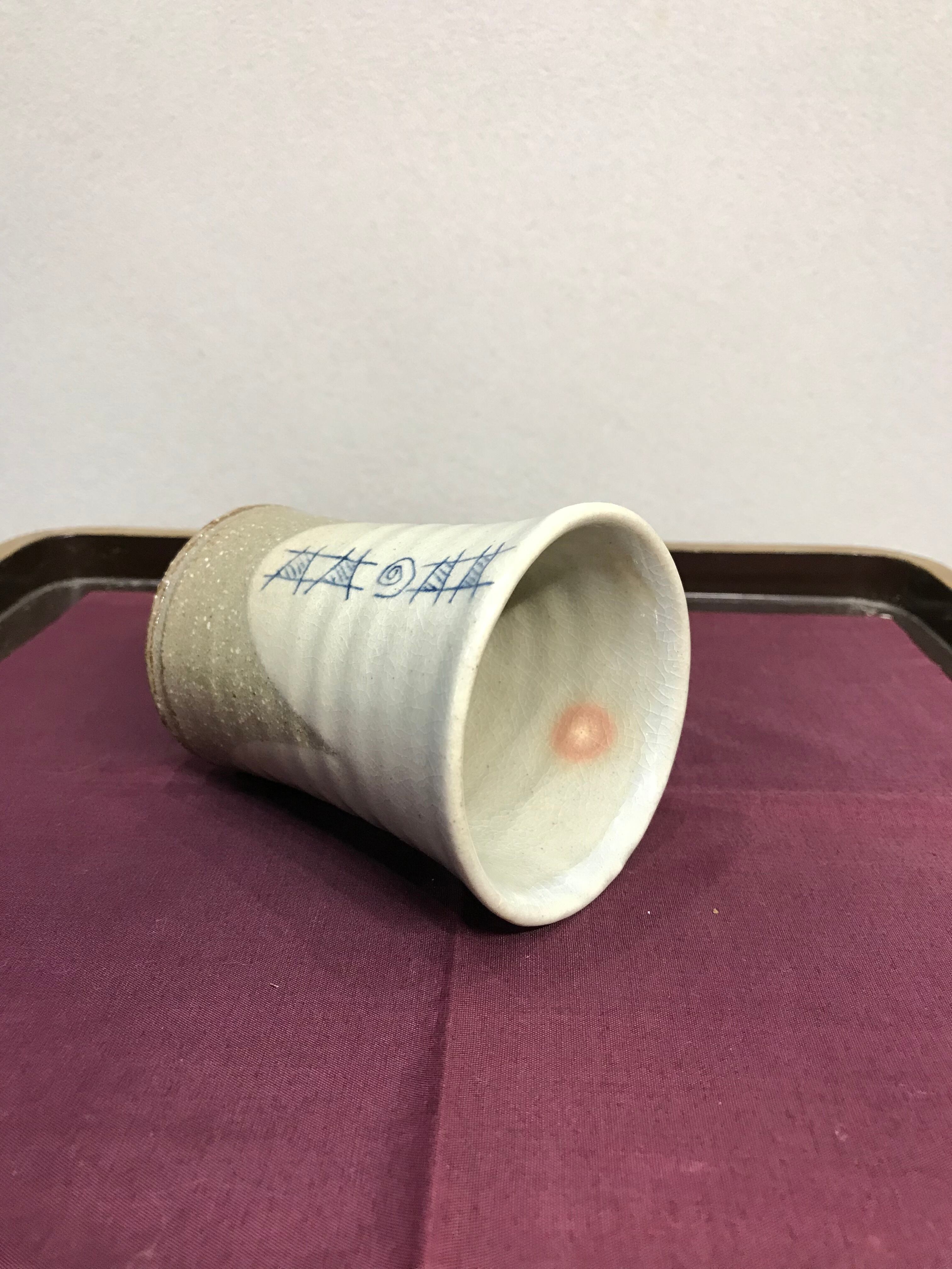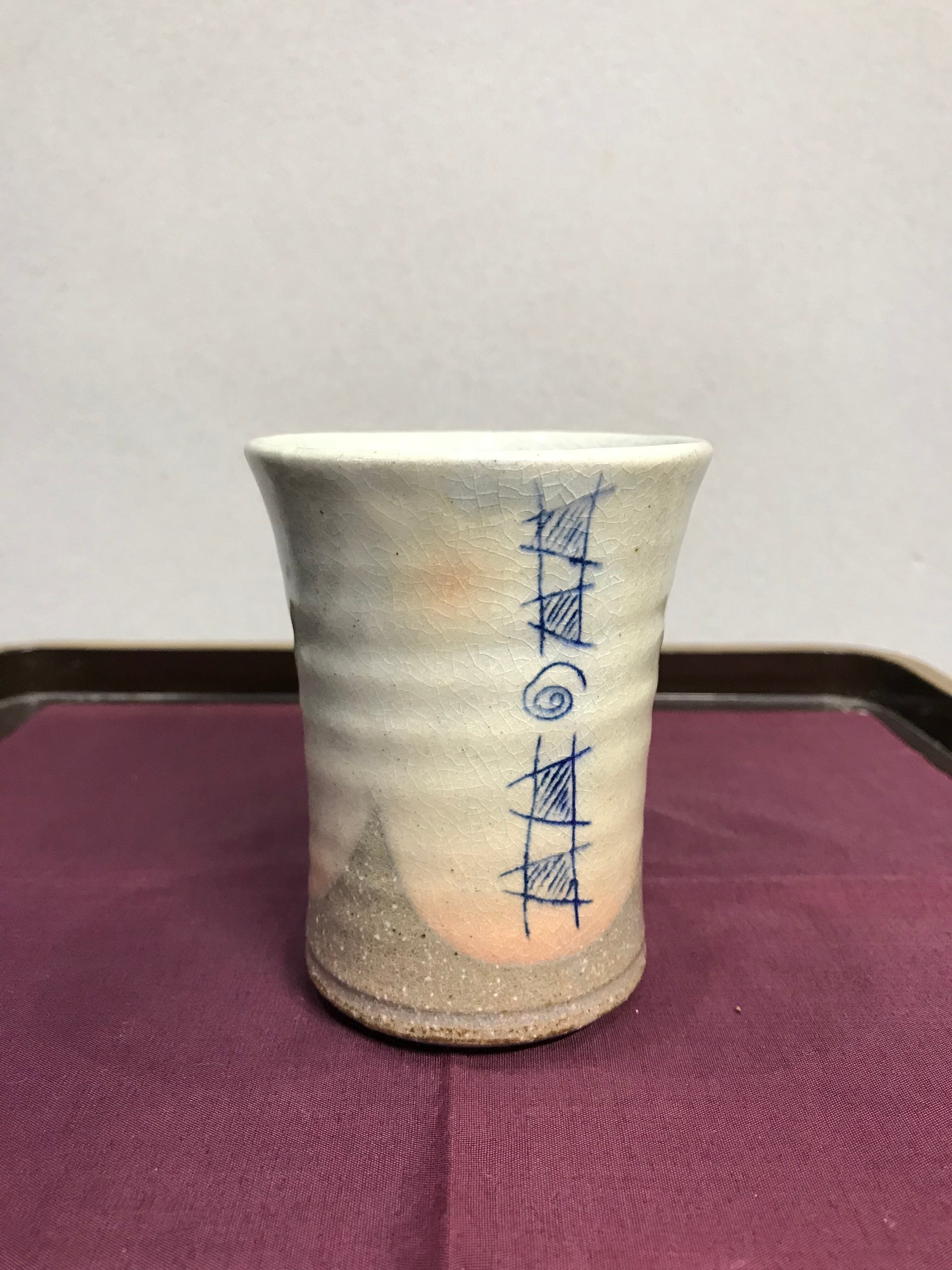 現代萩焼の名工・上田敦之氏による「化粧掛け線刻フリーカップ」。