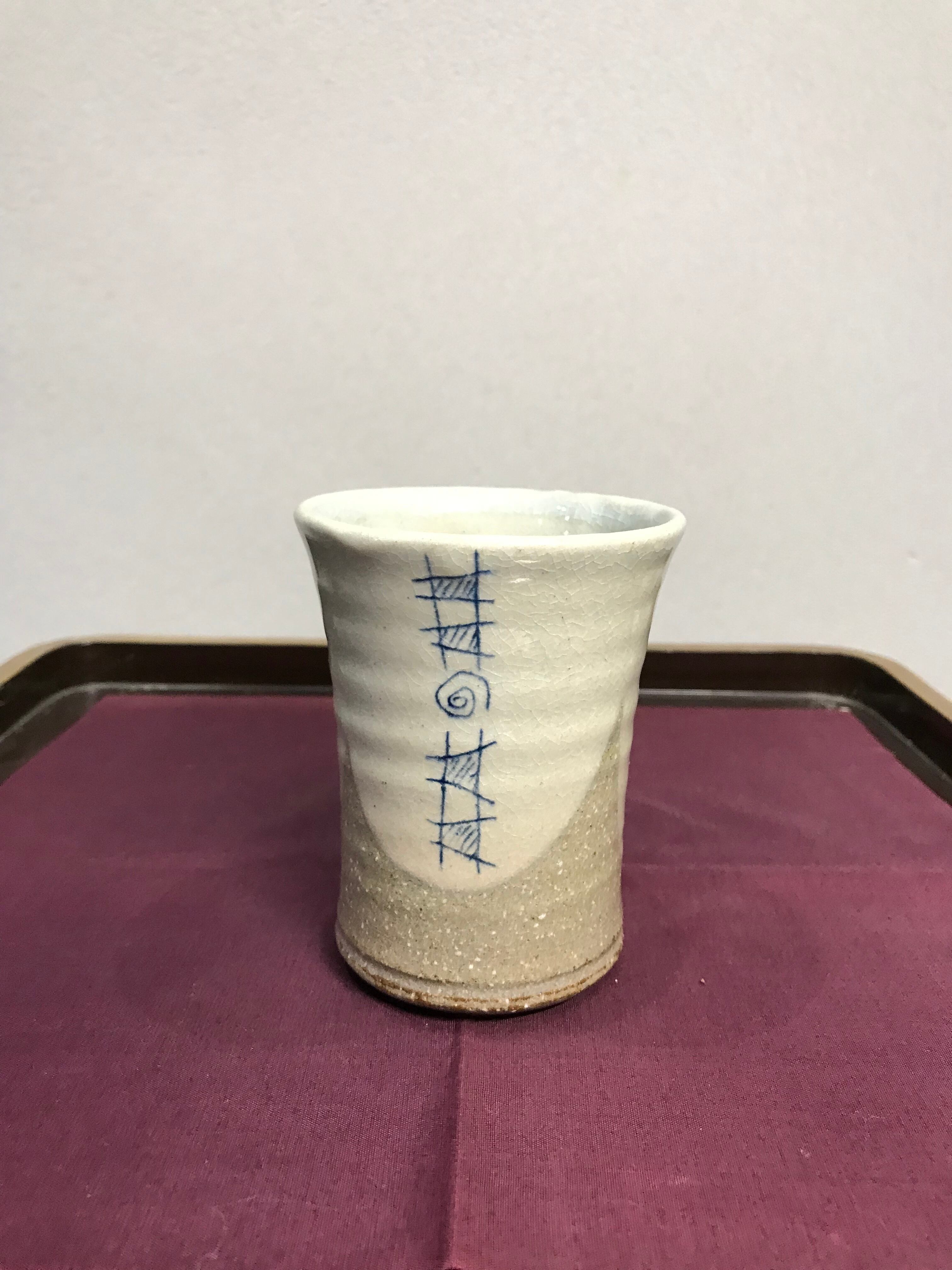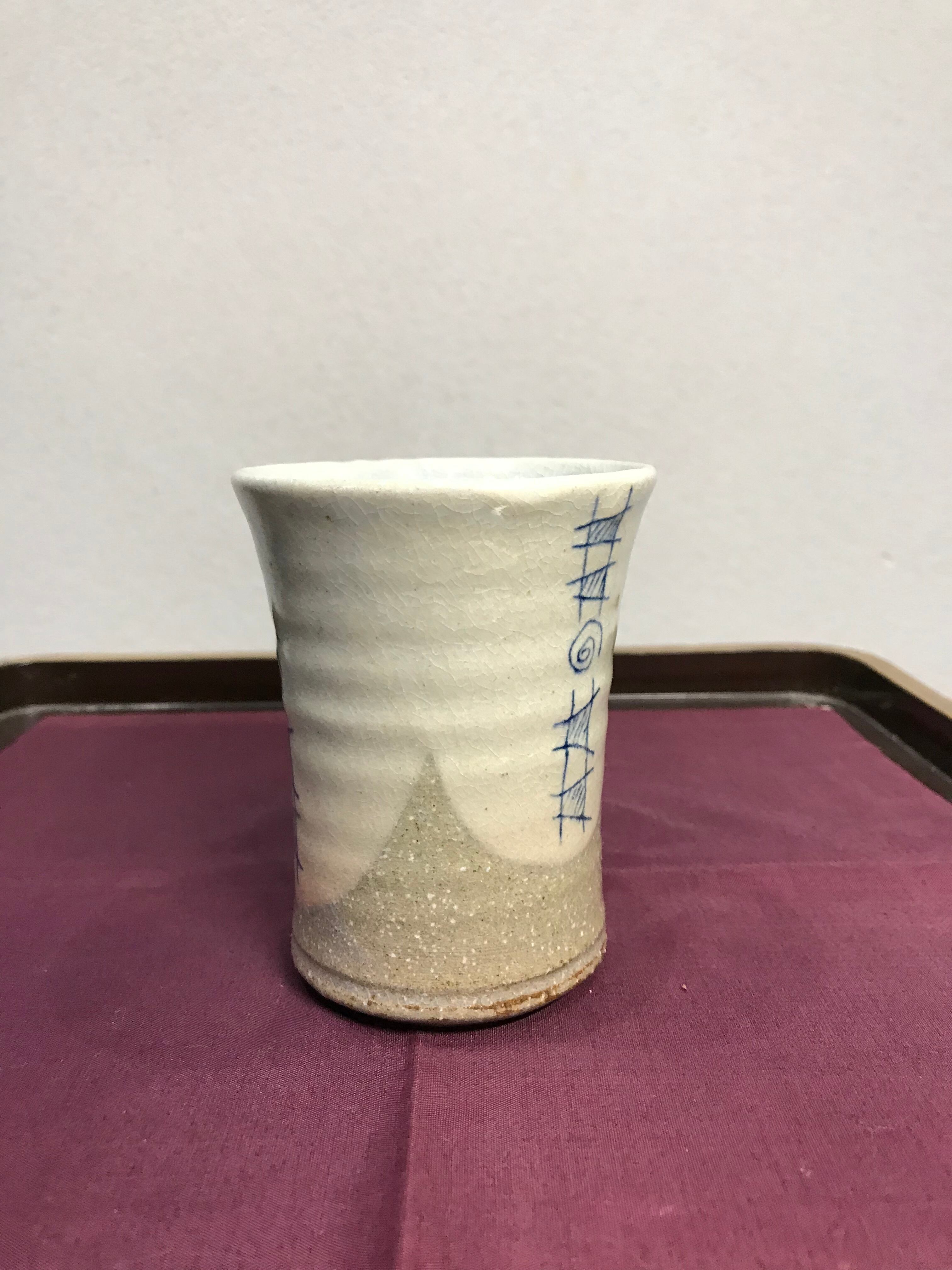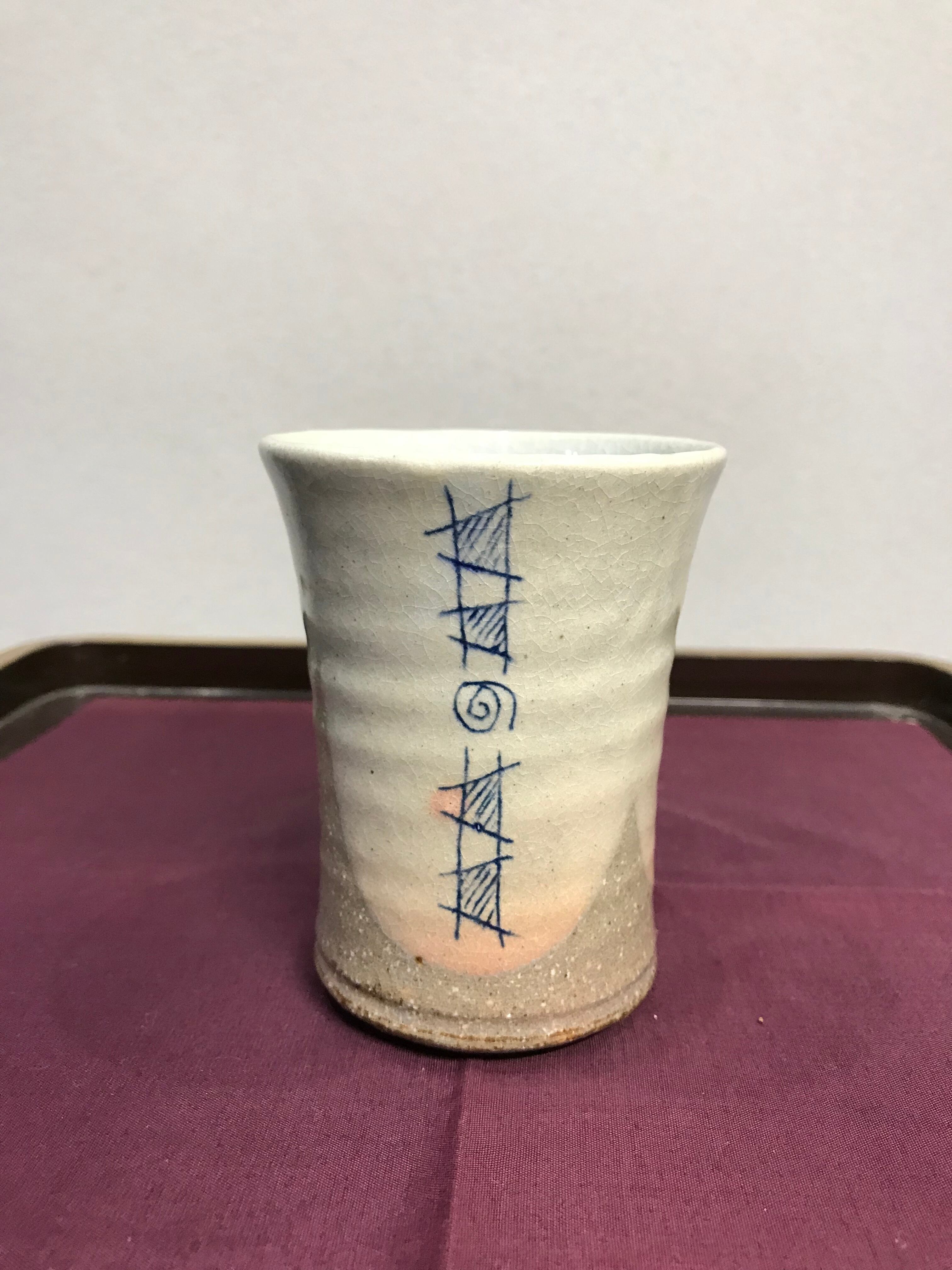 現代萩焼の名工・上田敦之氏による「化粧掛け線刻フリーカップ」。