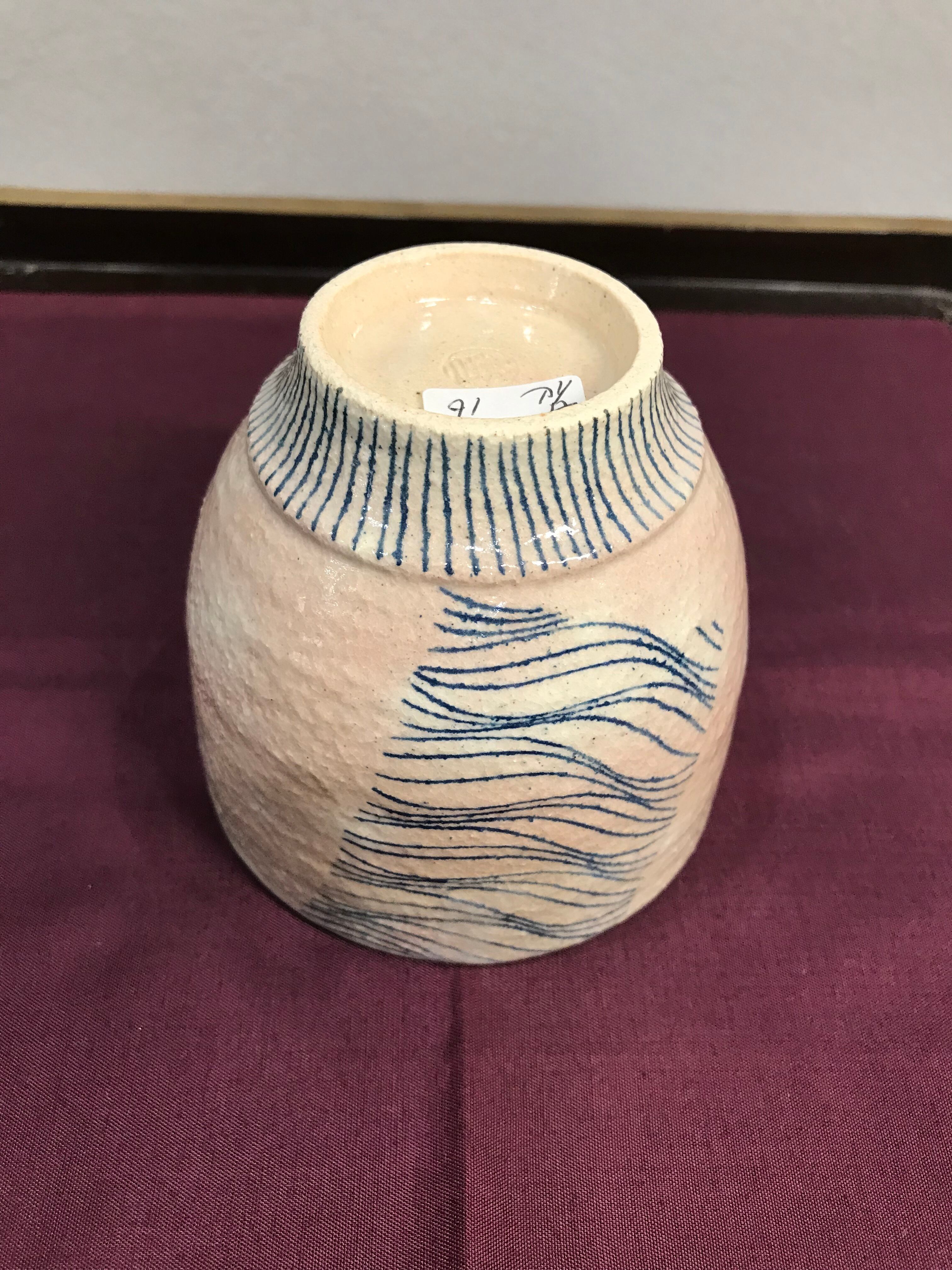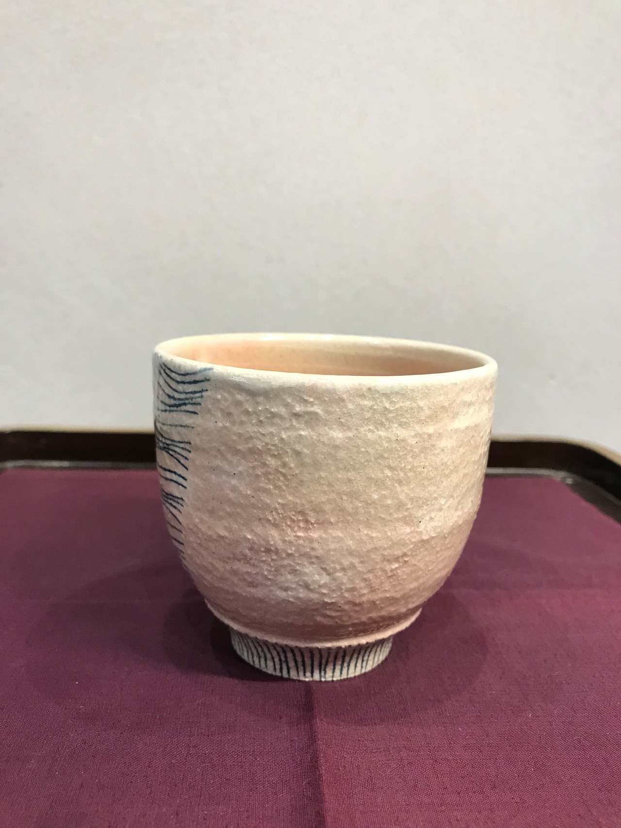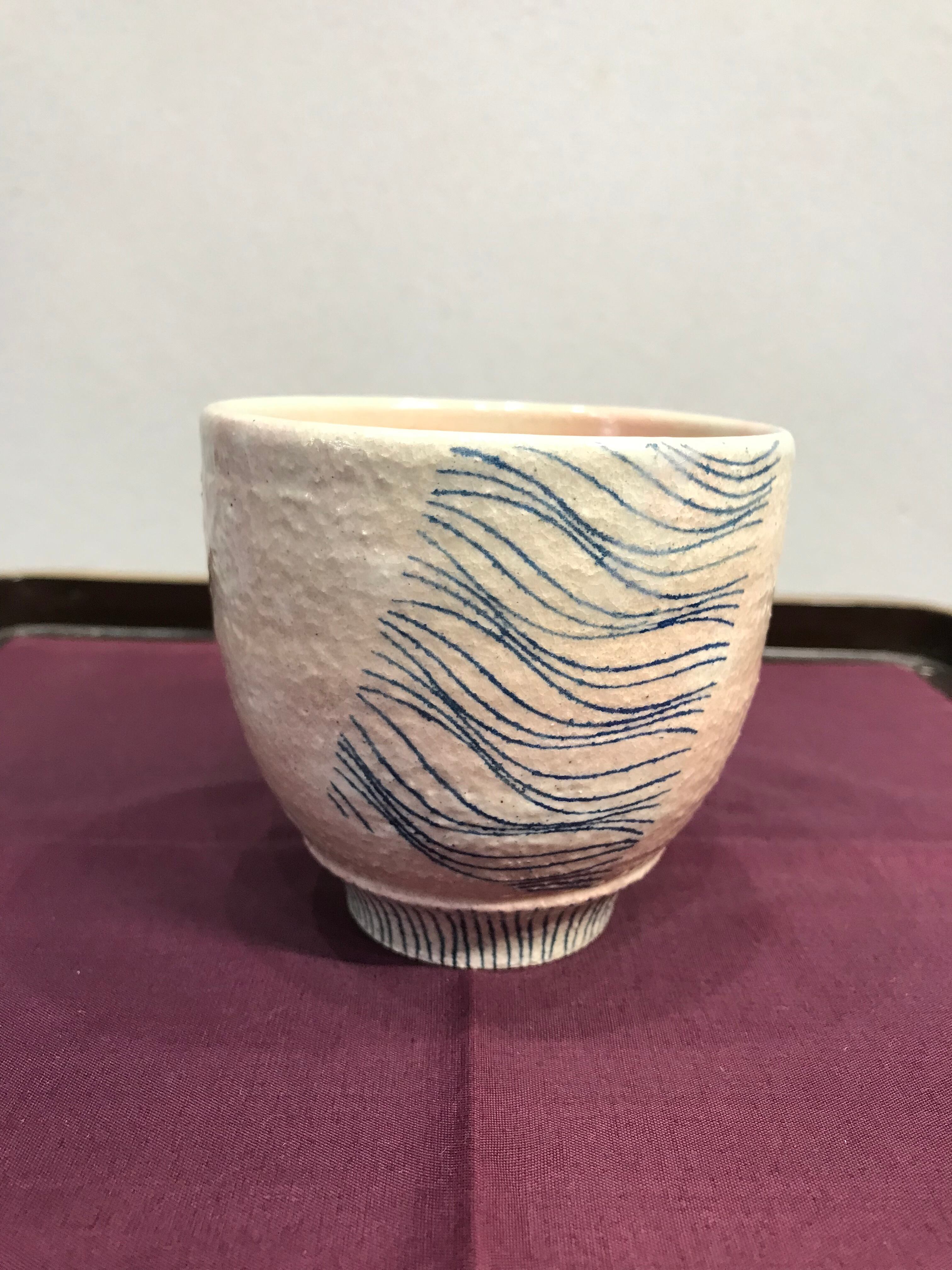現代萩焼の匠・上田敦之先生による、染象嵌技法で描かれた「波文カップ」。
