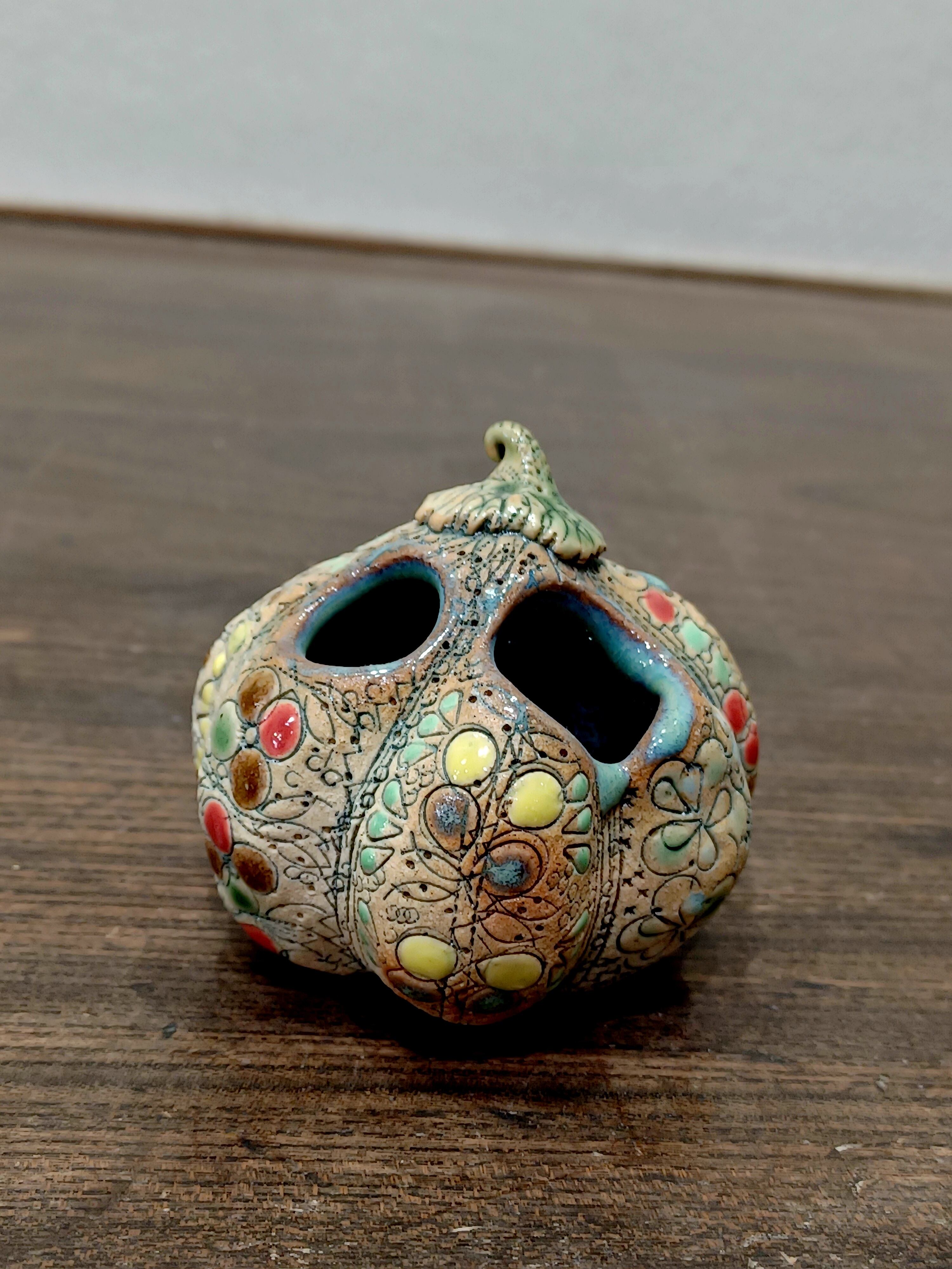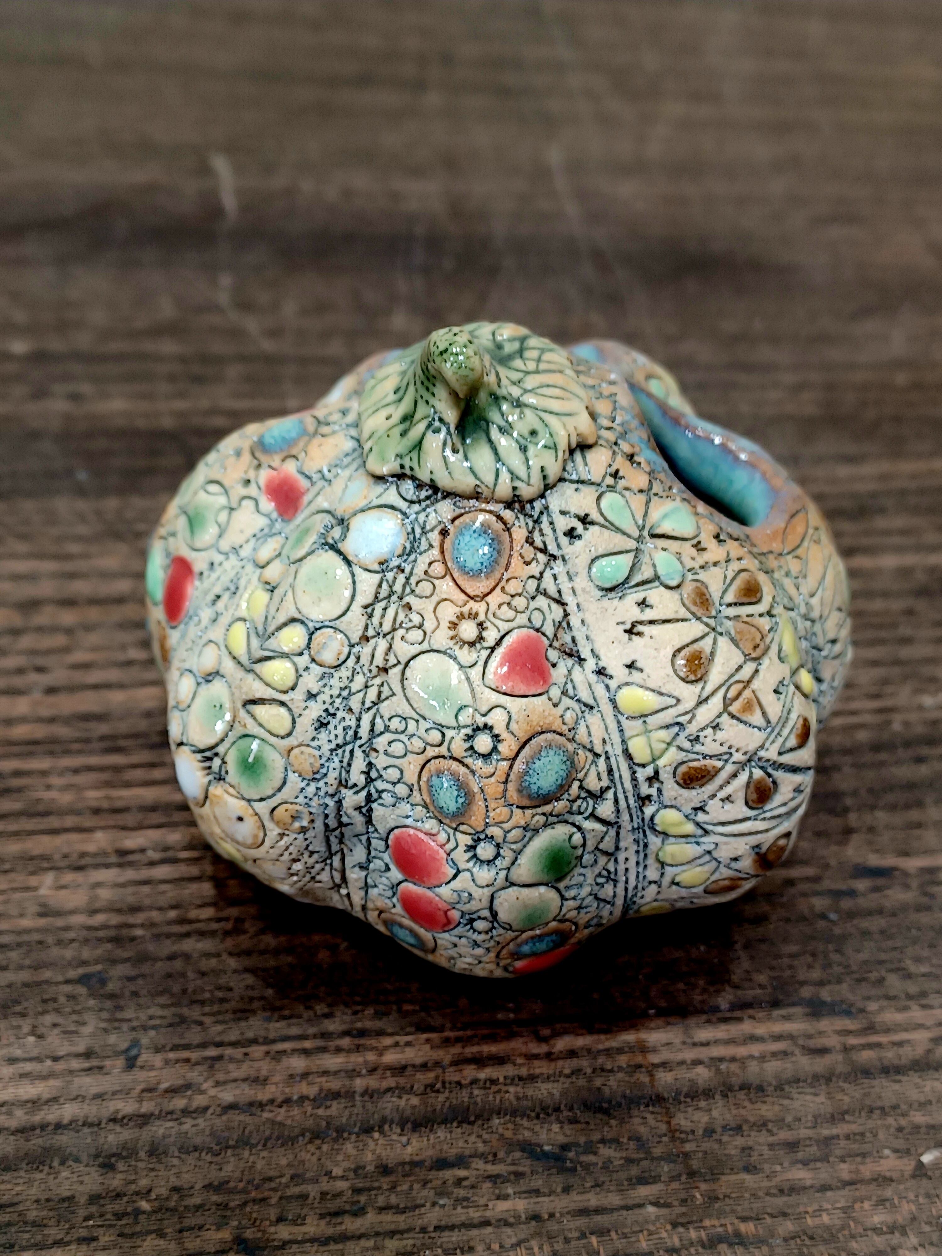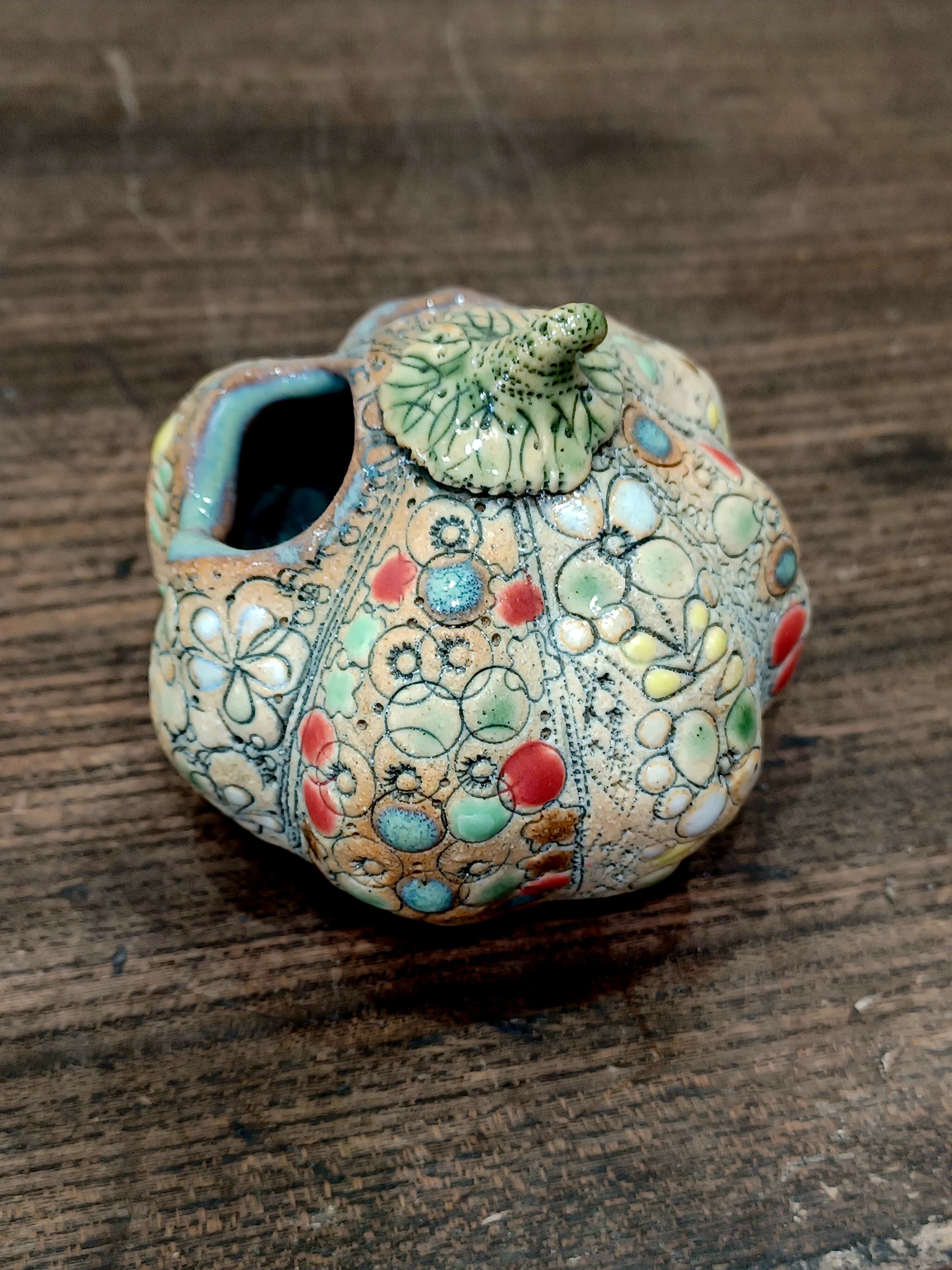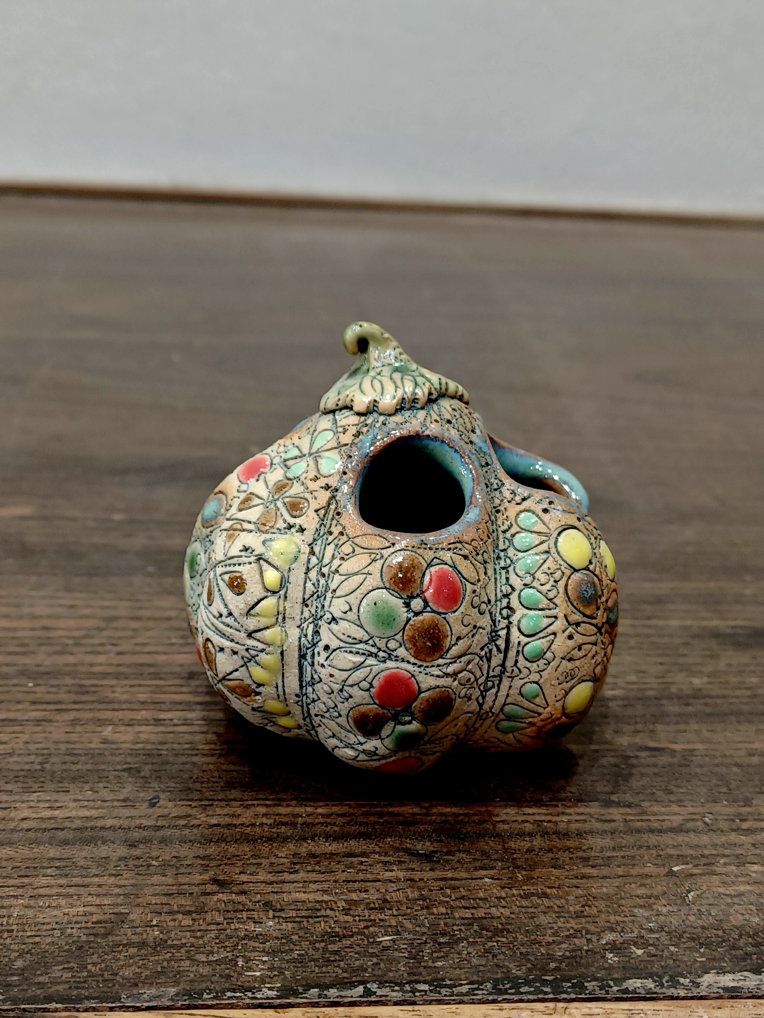 【船戸あやこ作】小さなかぼちゃの花さし|スペイン色彩陶芸の温もりをあなたのお部屋に