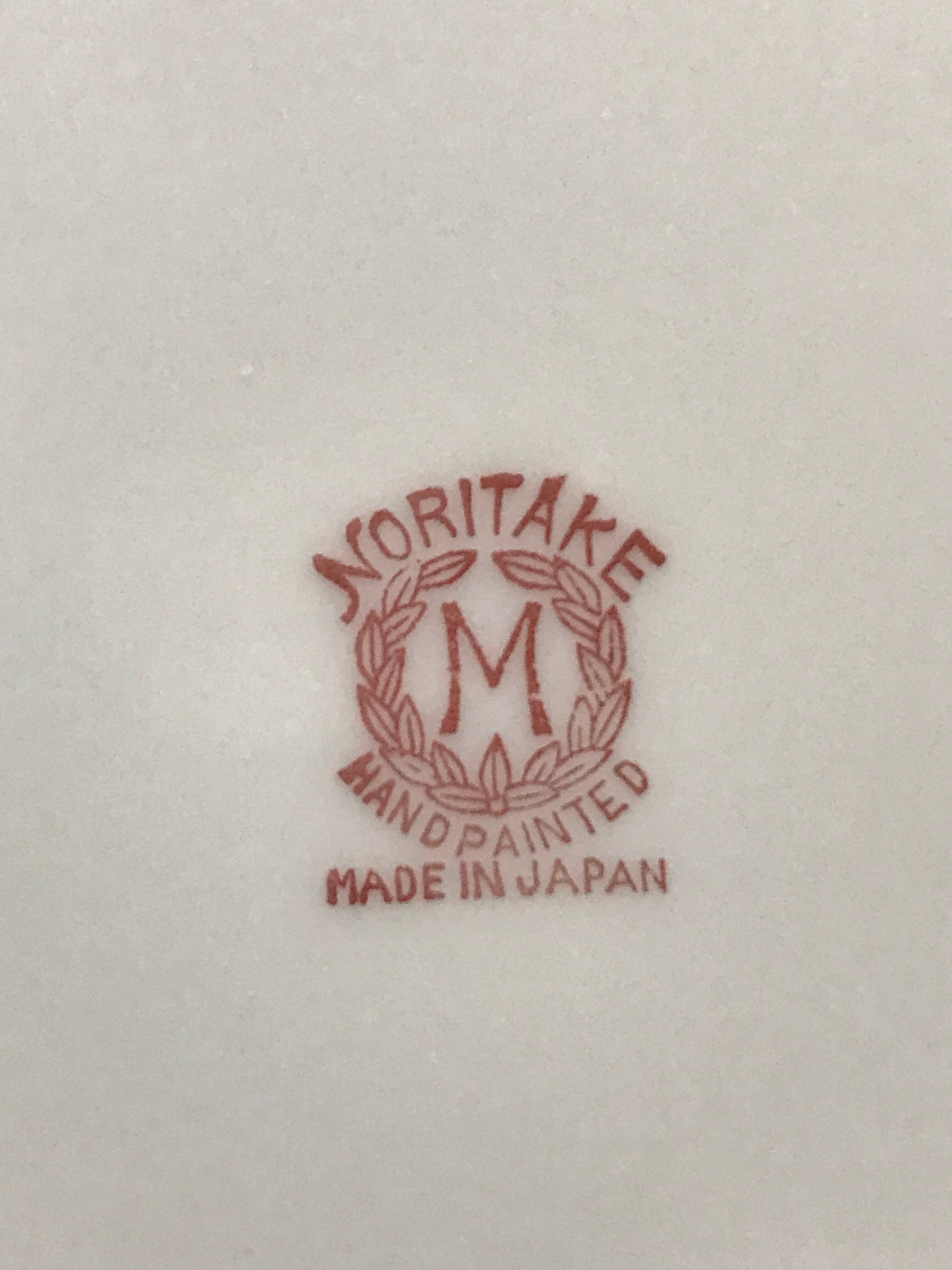 このパターンは、アメリカでは木と草地「Tree and Meadow」と呼ばれ、その牧歌的な風景が人気を得た。口縁部は金盛り上げで装飾してある。