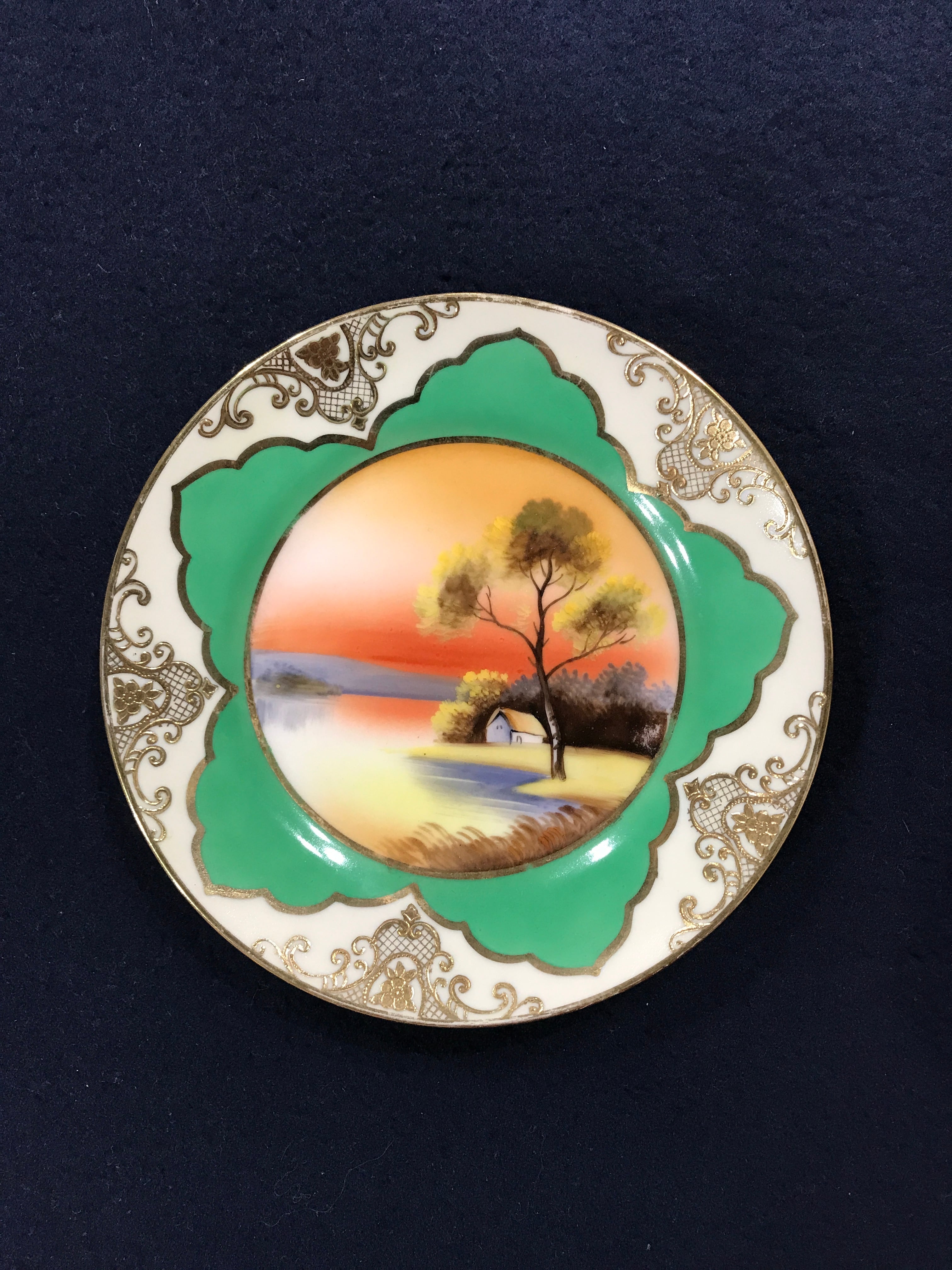オールドノリタケ:風景文金盛り上げプレート【米国より里帰り品】【M-JAPAN印】