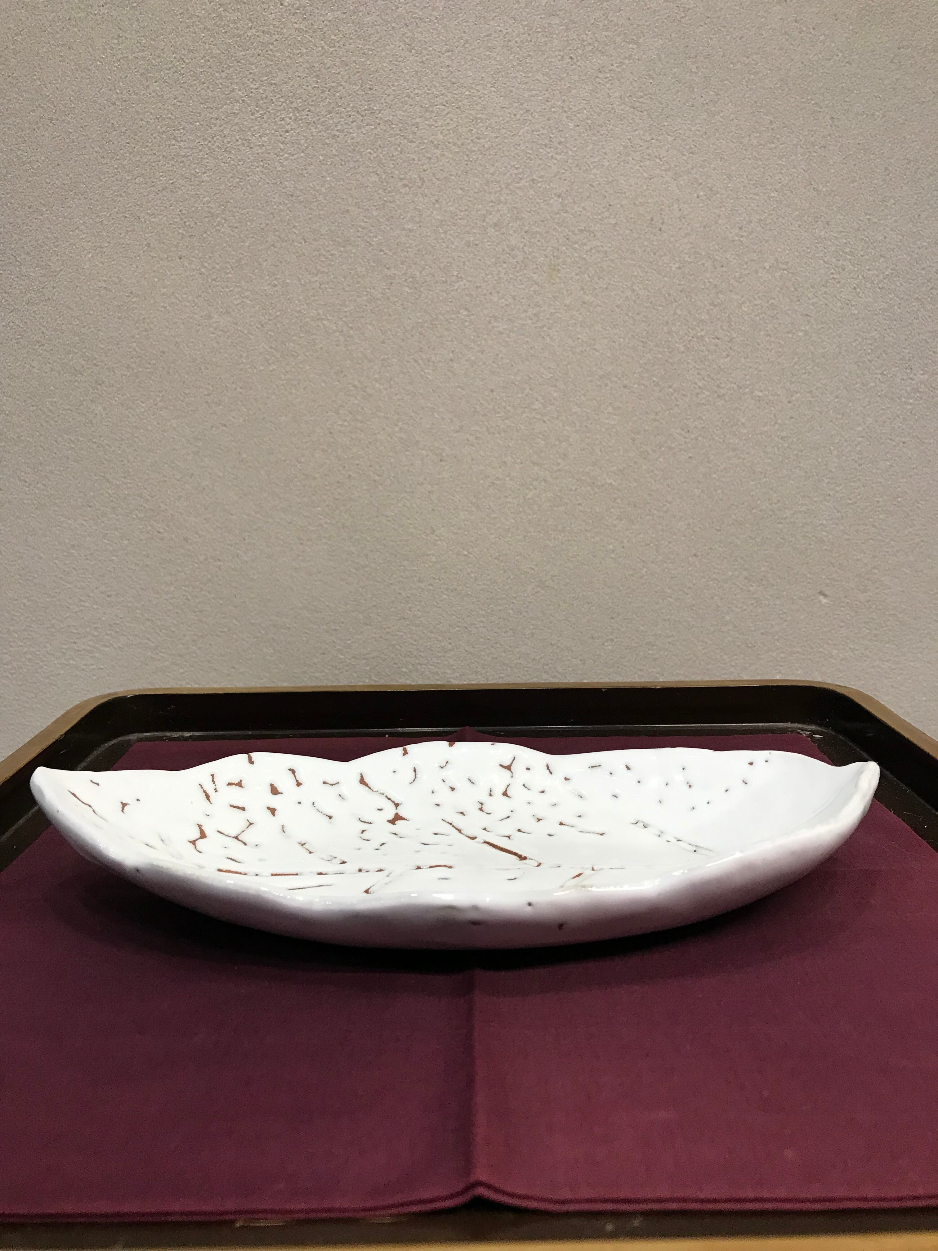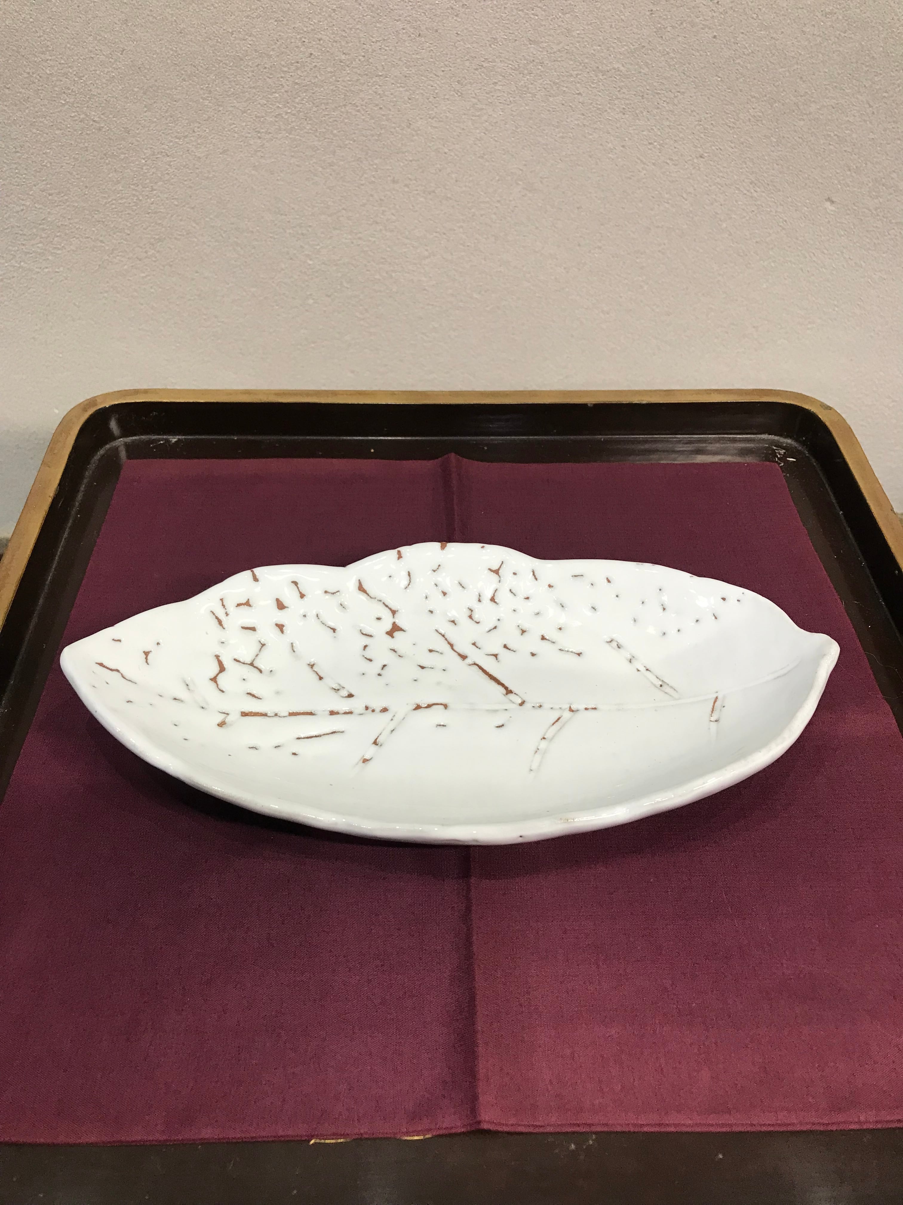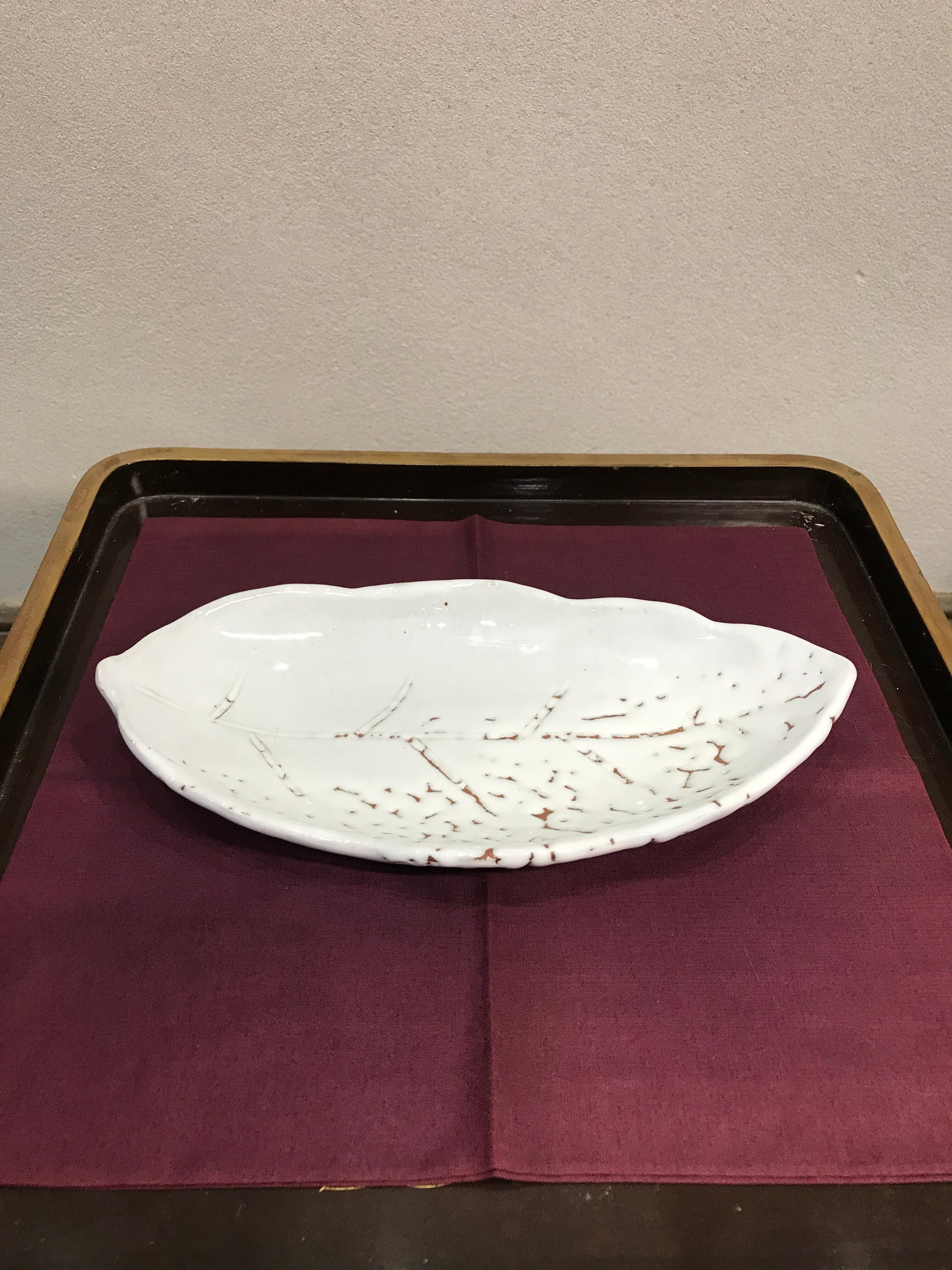 こちらは萩焼作家上田敦之(うえだ あつゆき)先生による、**白釉の木葉皿(このはざら)**です。