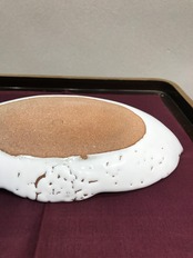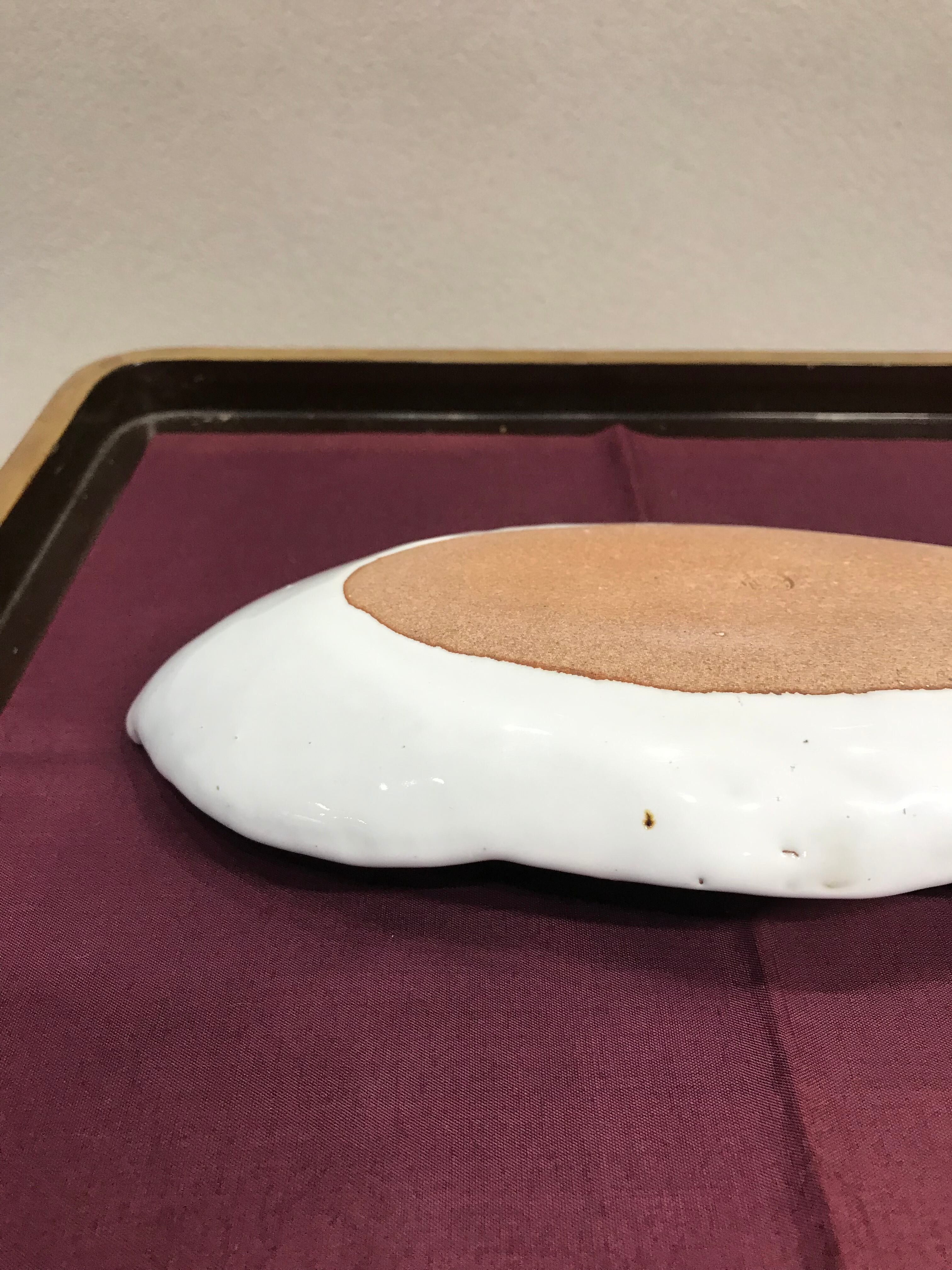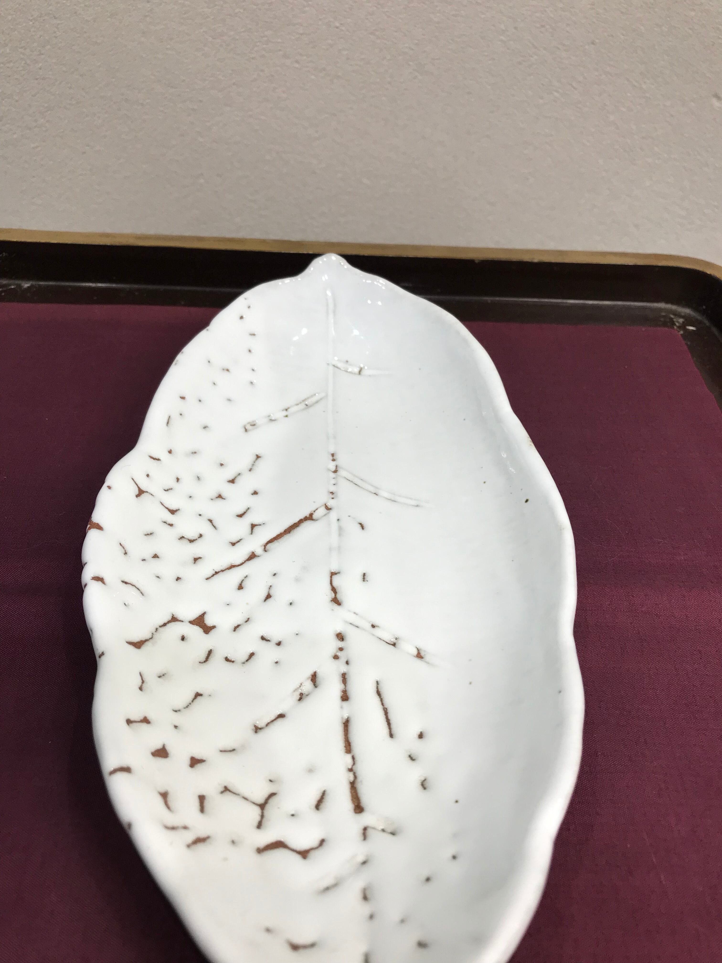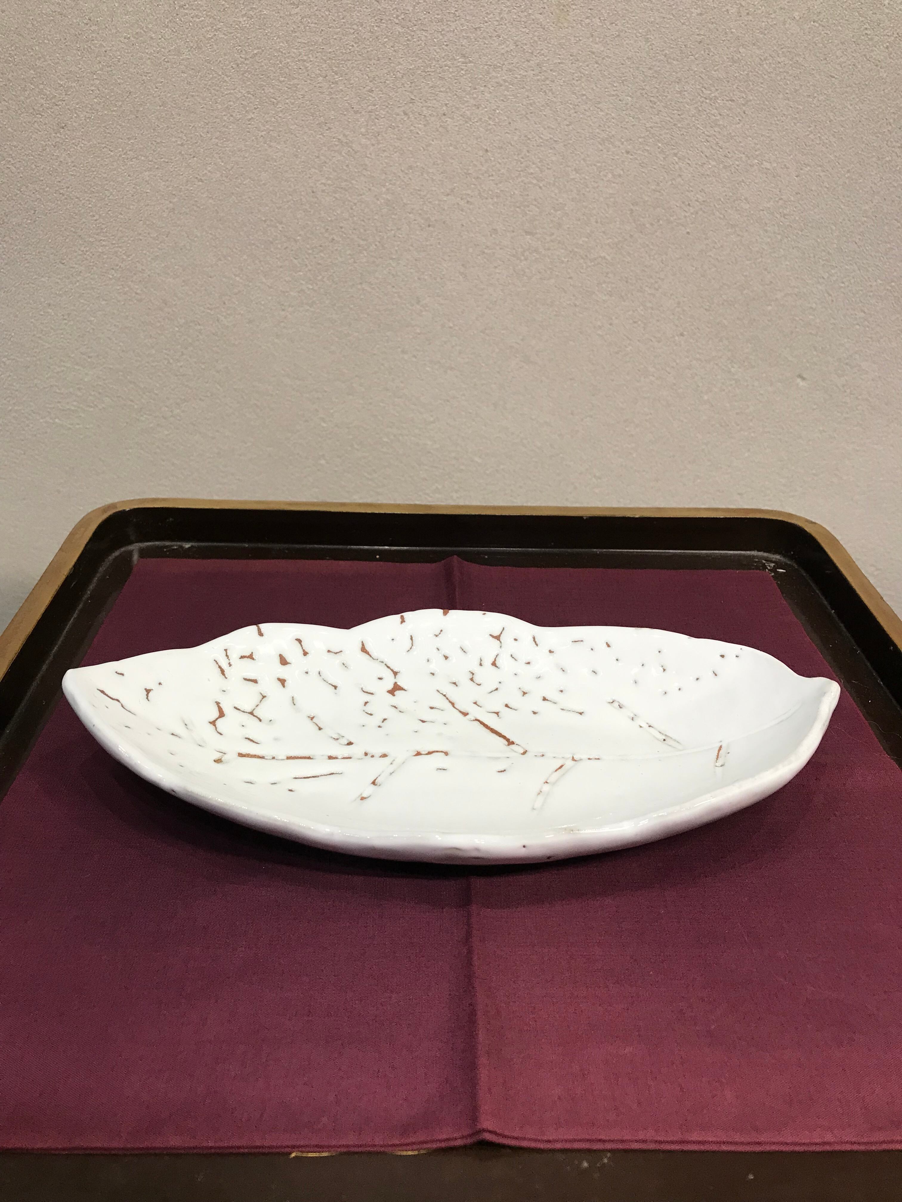 こちらは萩焼作家上田敦之(うえだ あつゆき)先生による、**白釉の木葉皿(このはざら)**です。