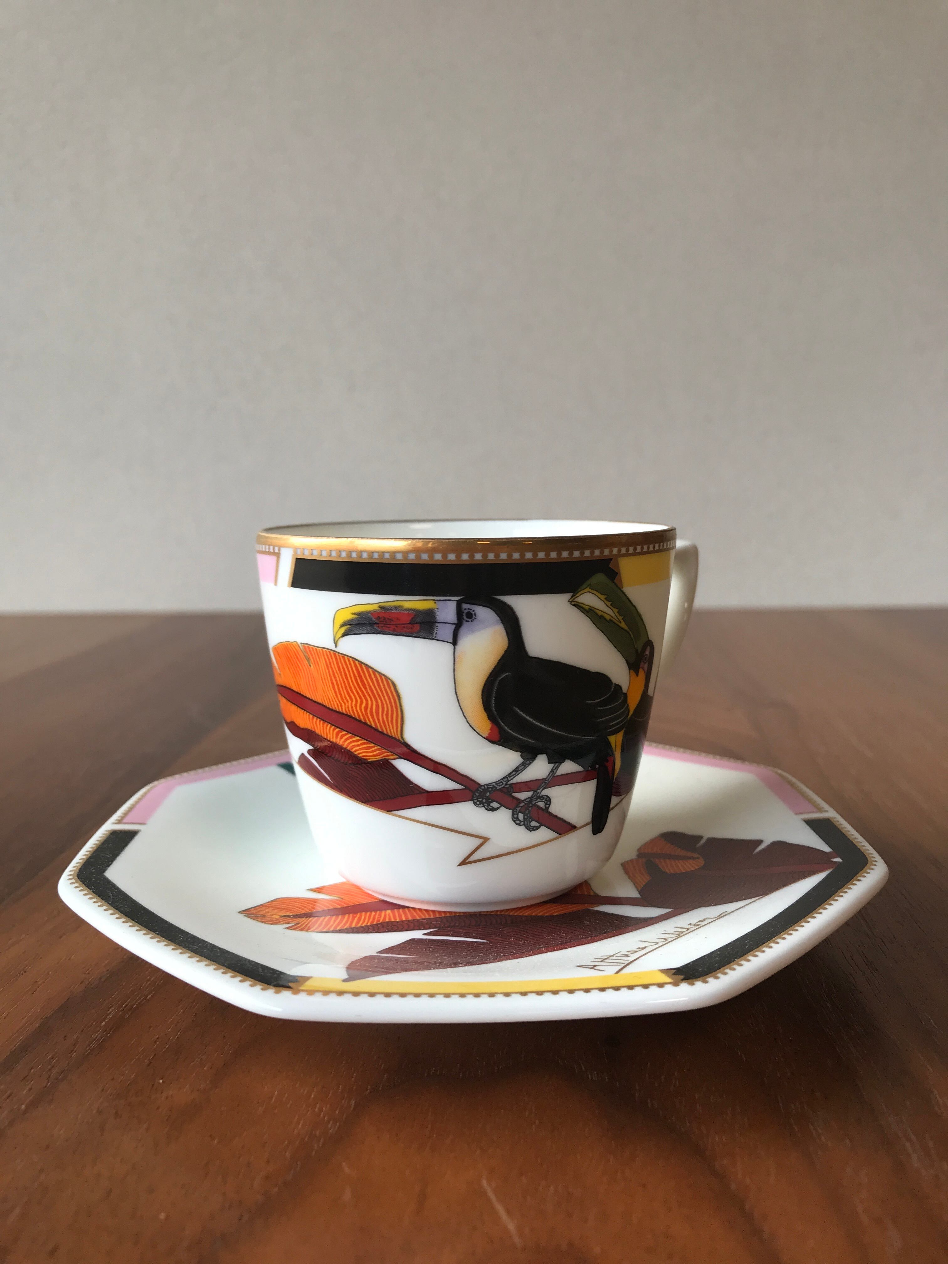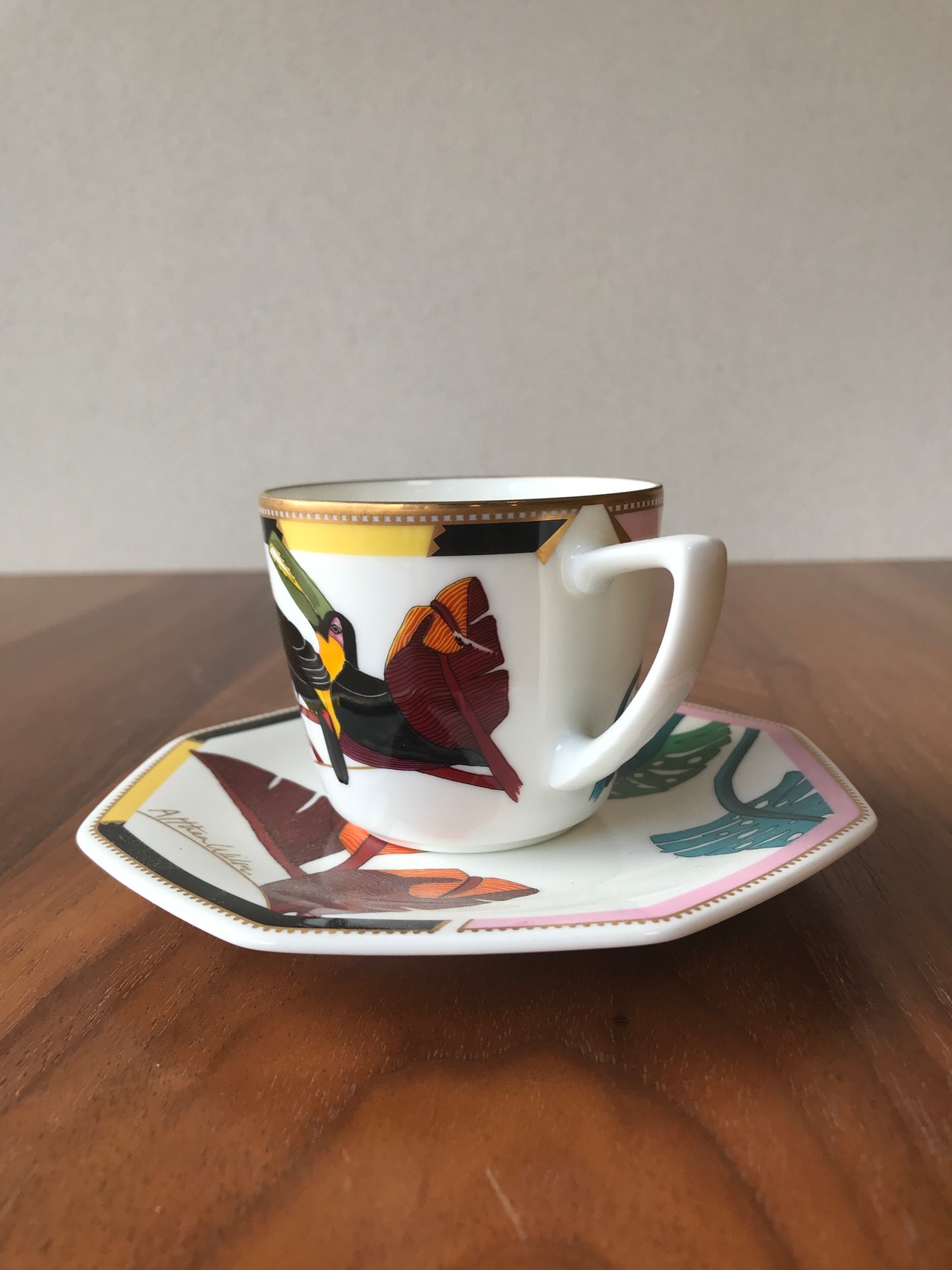 資生堂が1990年に販売した、美しく華やかな**「楽園シリーズ」カップ&ソーサー〈サイチョウ〉**のご紹介です。