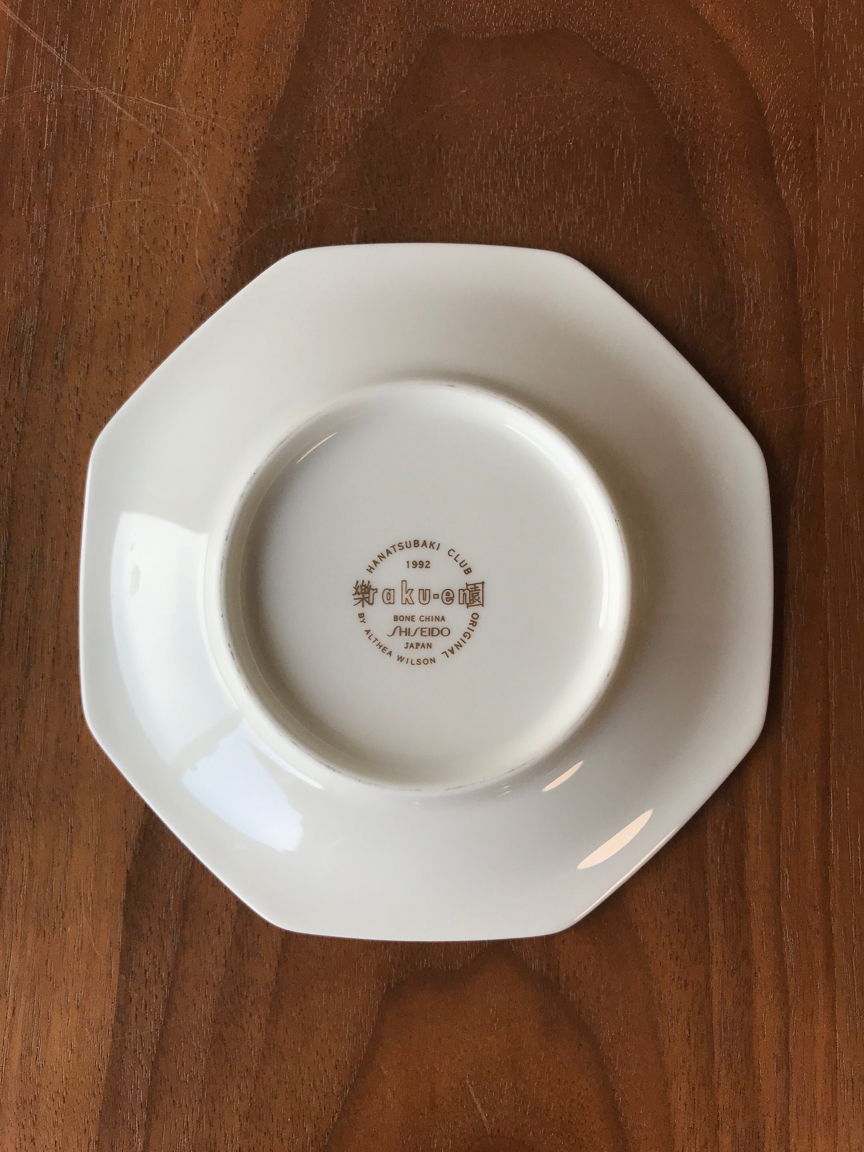 HANATSUBAKI CLUB 1992の刻印が入った、資生堂ならではのセンスと品質が感じられる逸品。ヴィンテージ食器コレクションにもおすすめです。