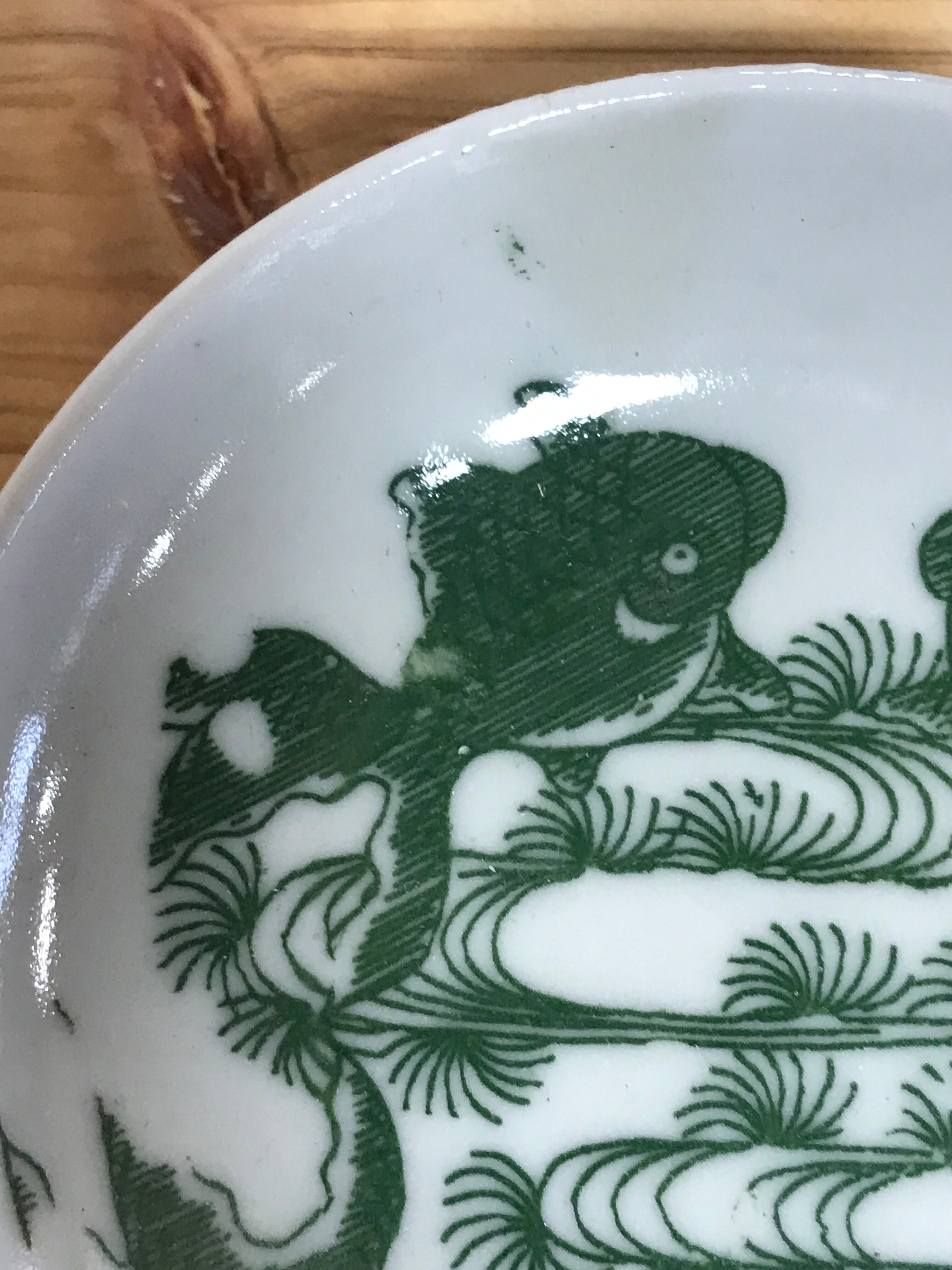 The goldfish-shaped small plate is a valuable antique item made in the Taisho era. A small plate with a diameter of 8.5cm, beautifully decorated with goldfish transferred onto a copper plate. Each pattern depicts goldfish diving and swimming in goldfish algae, and is full of cute and delicate beauty.