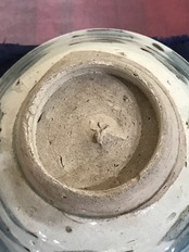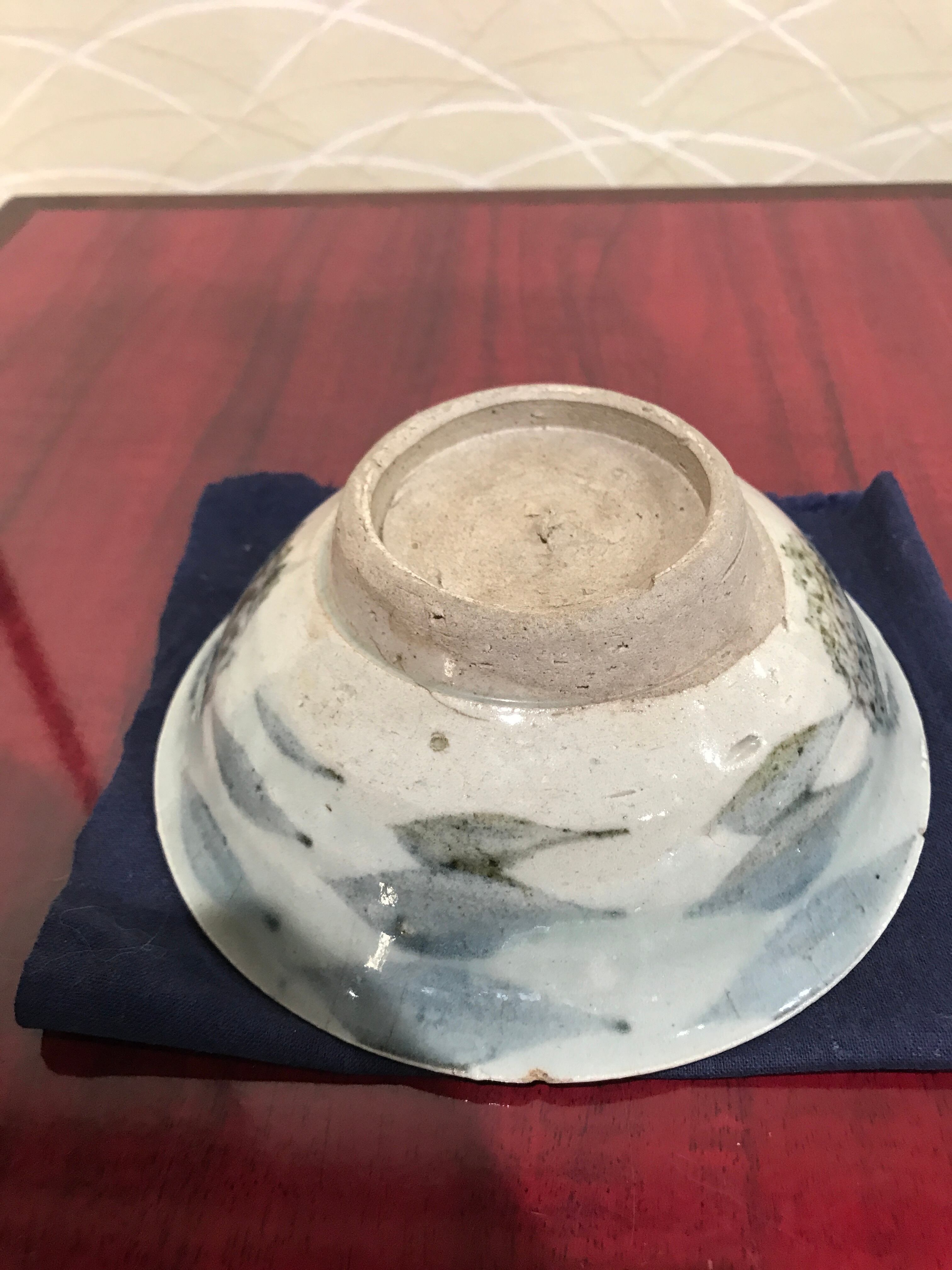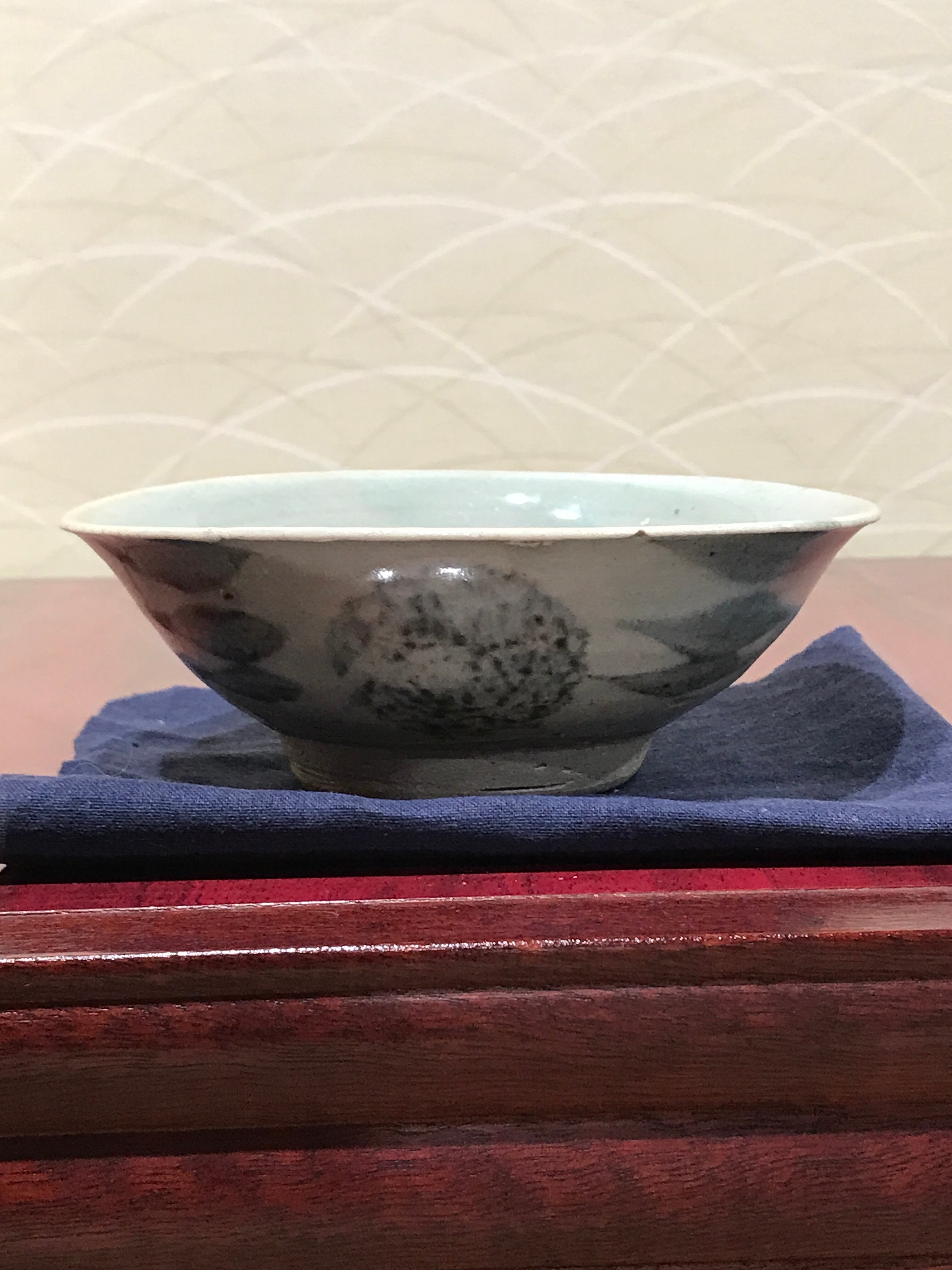 外周に染付で魚のような文様と丸紋を二つ入れてあります。丸紋は蓮華文でしょうか。