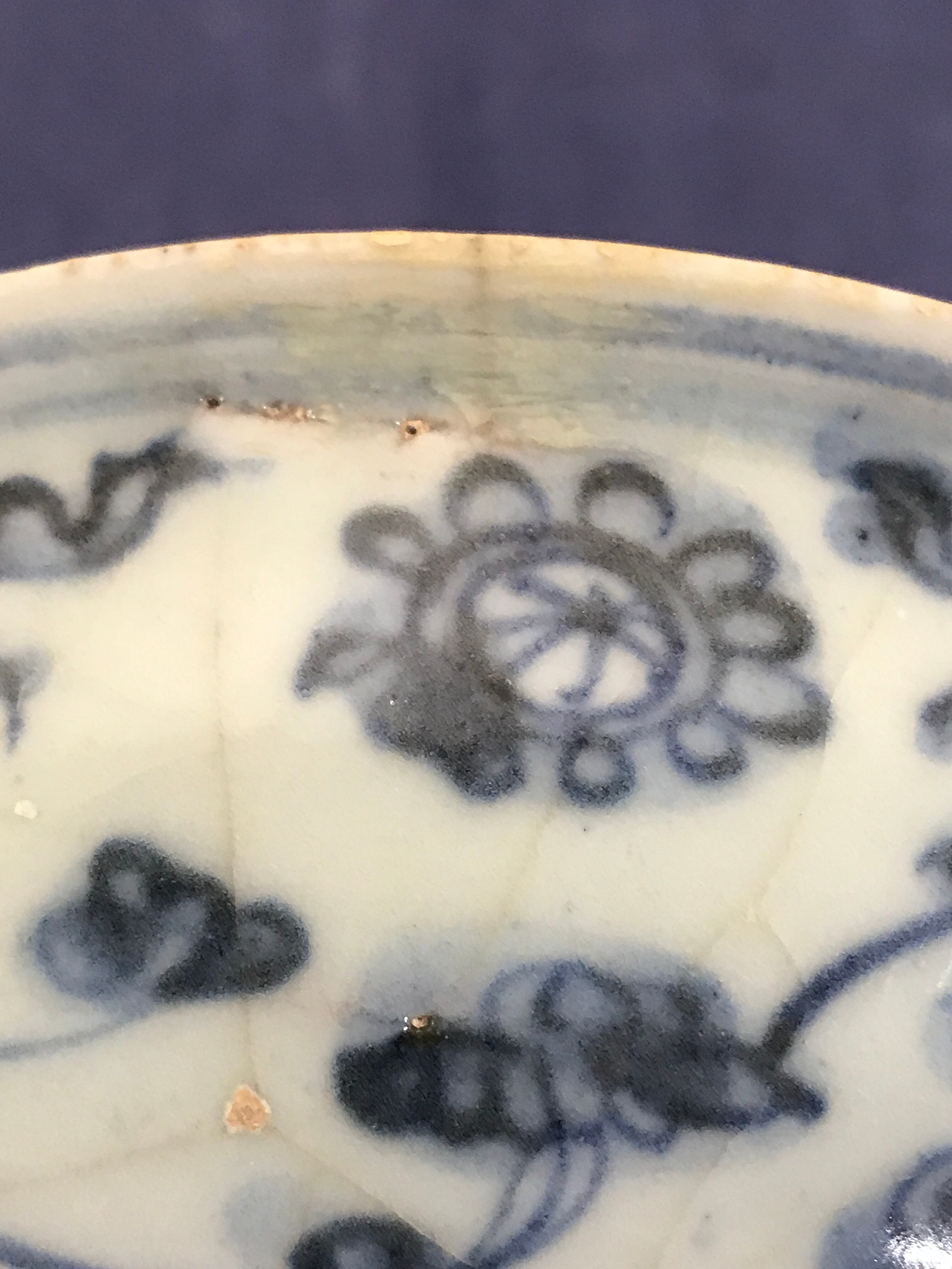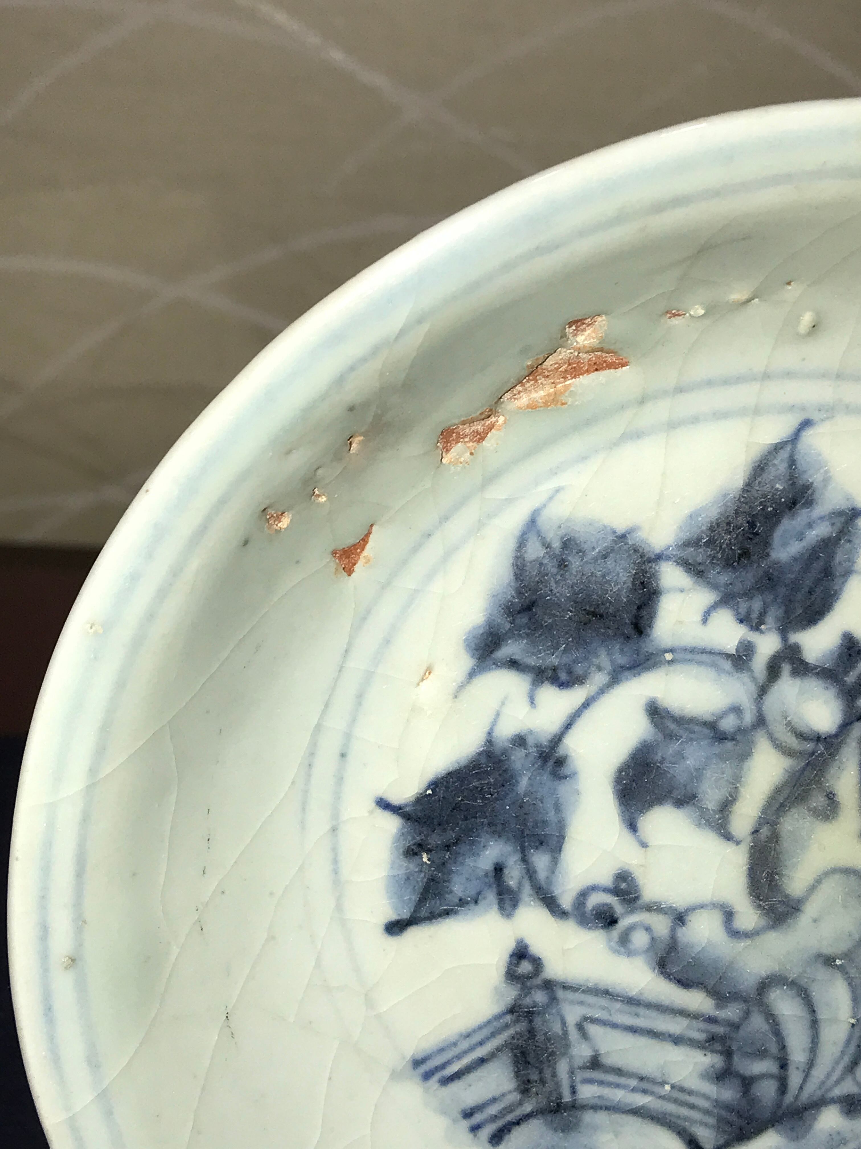 明 染付欄干樹木文皿 径15cm 高さ3.7cm