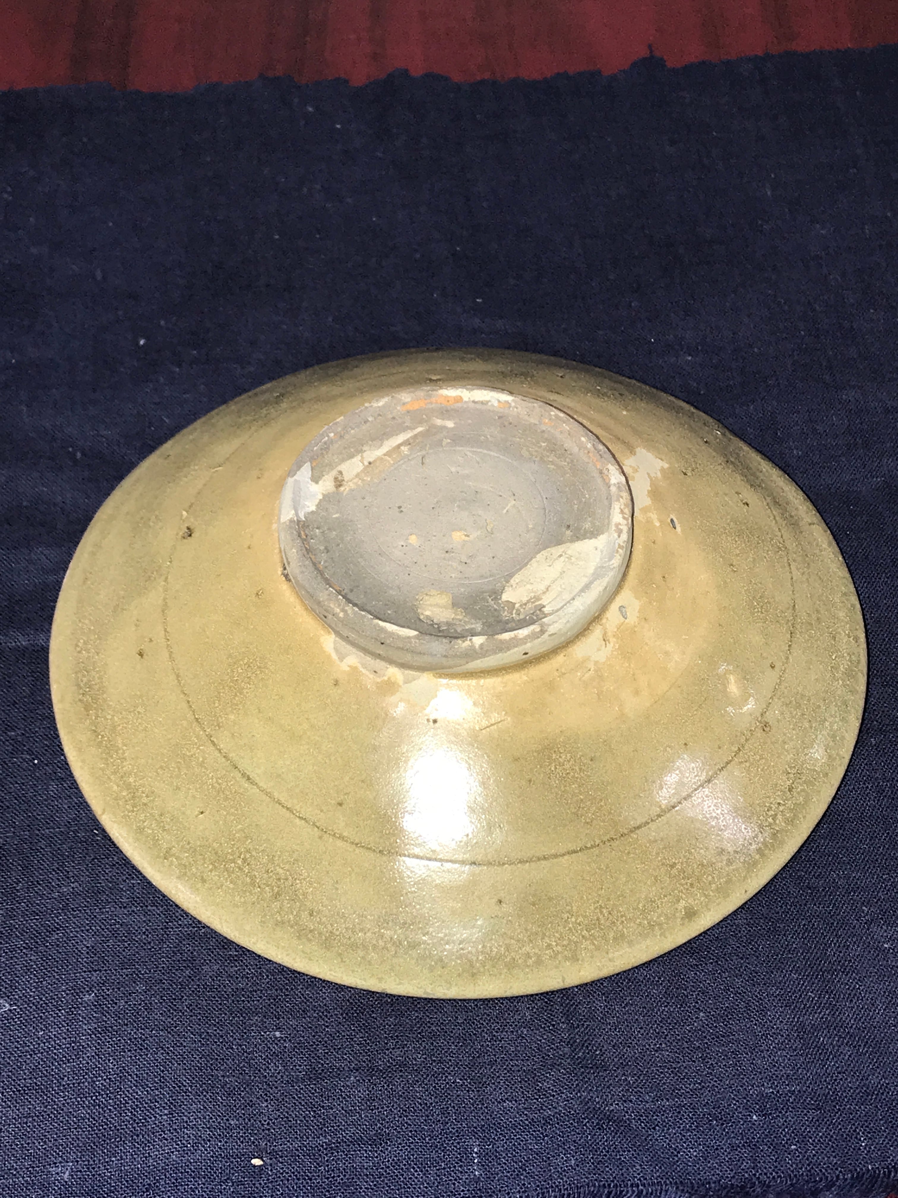 オリーブ色の青磁の発色です。フラッシュを焚かずに写真を撮ると色の出かたが異なるのでフラッシュ撮影しています。こちらの方が実際の色に近いと思います。