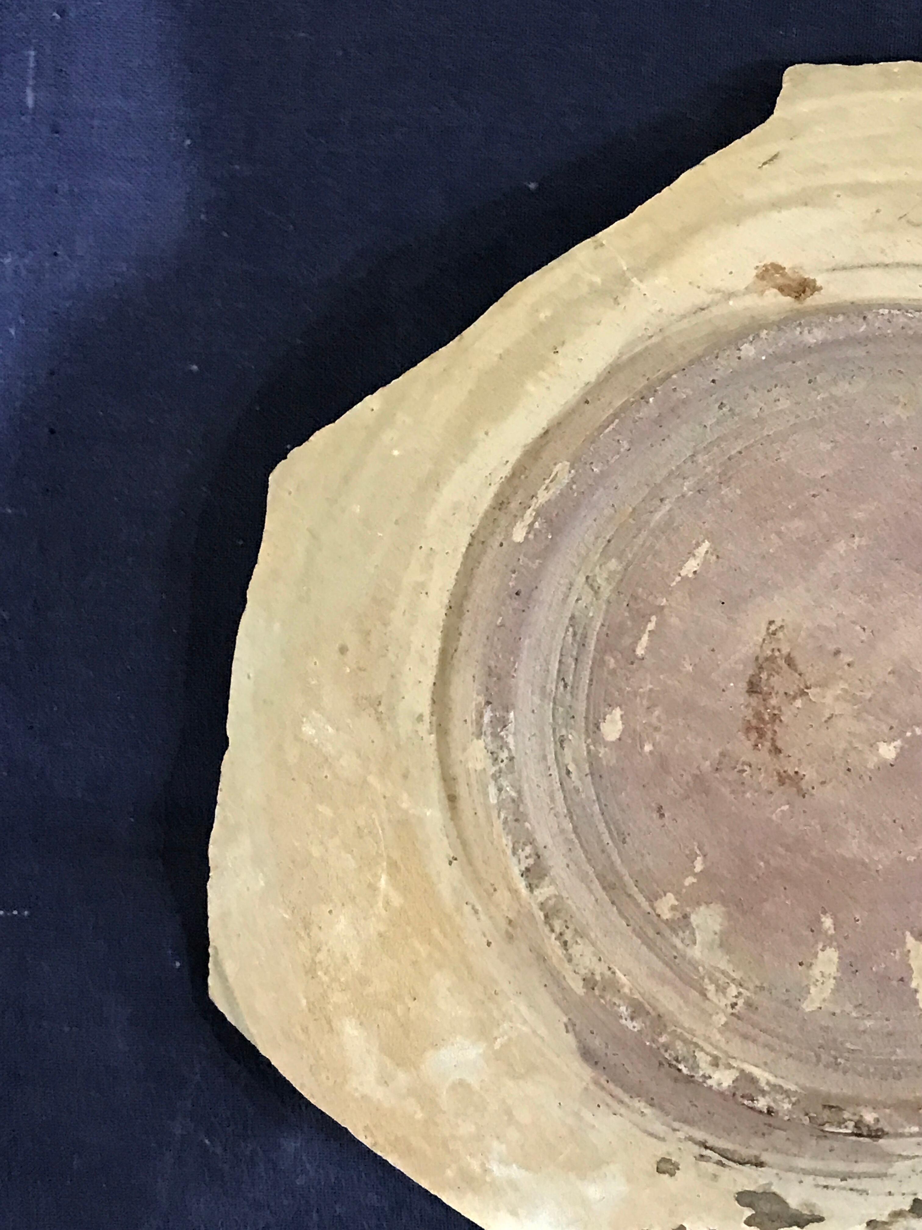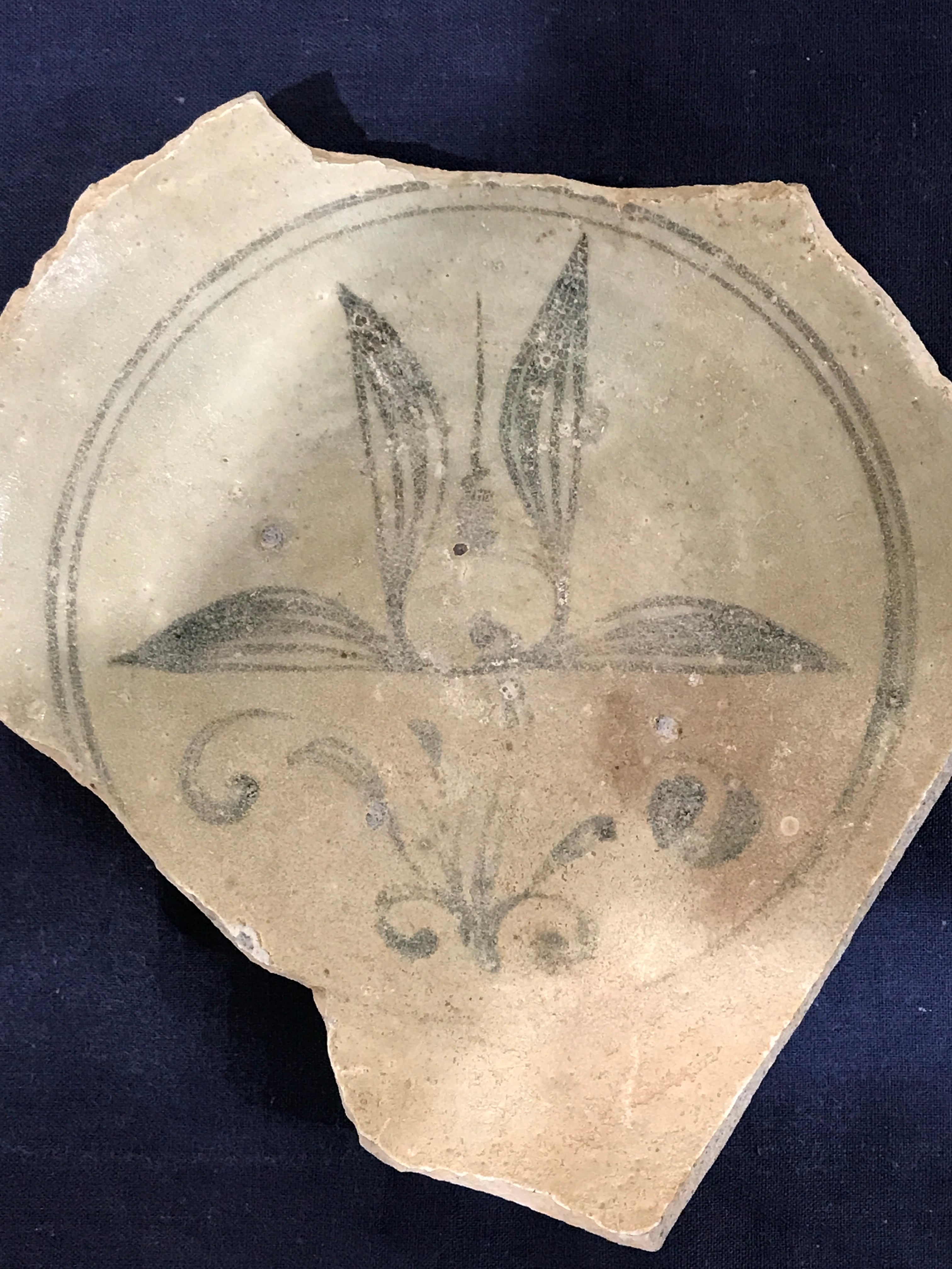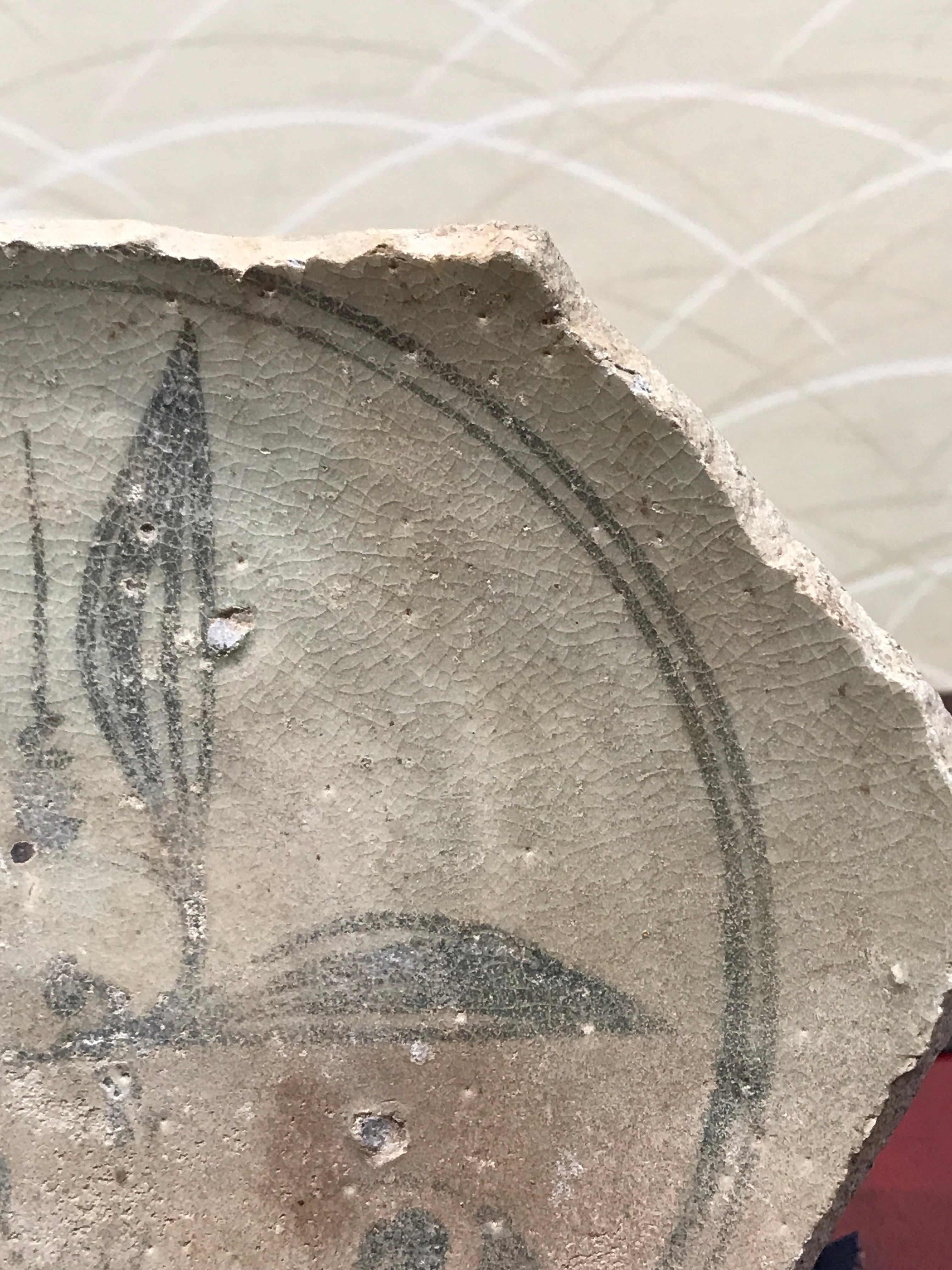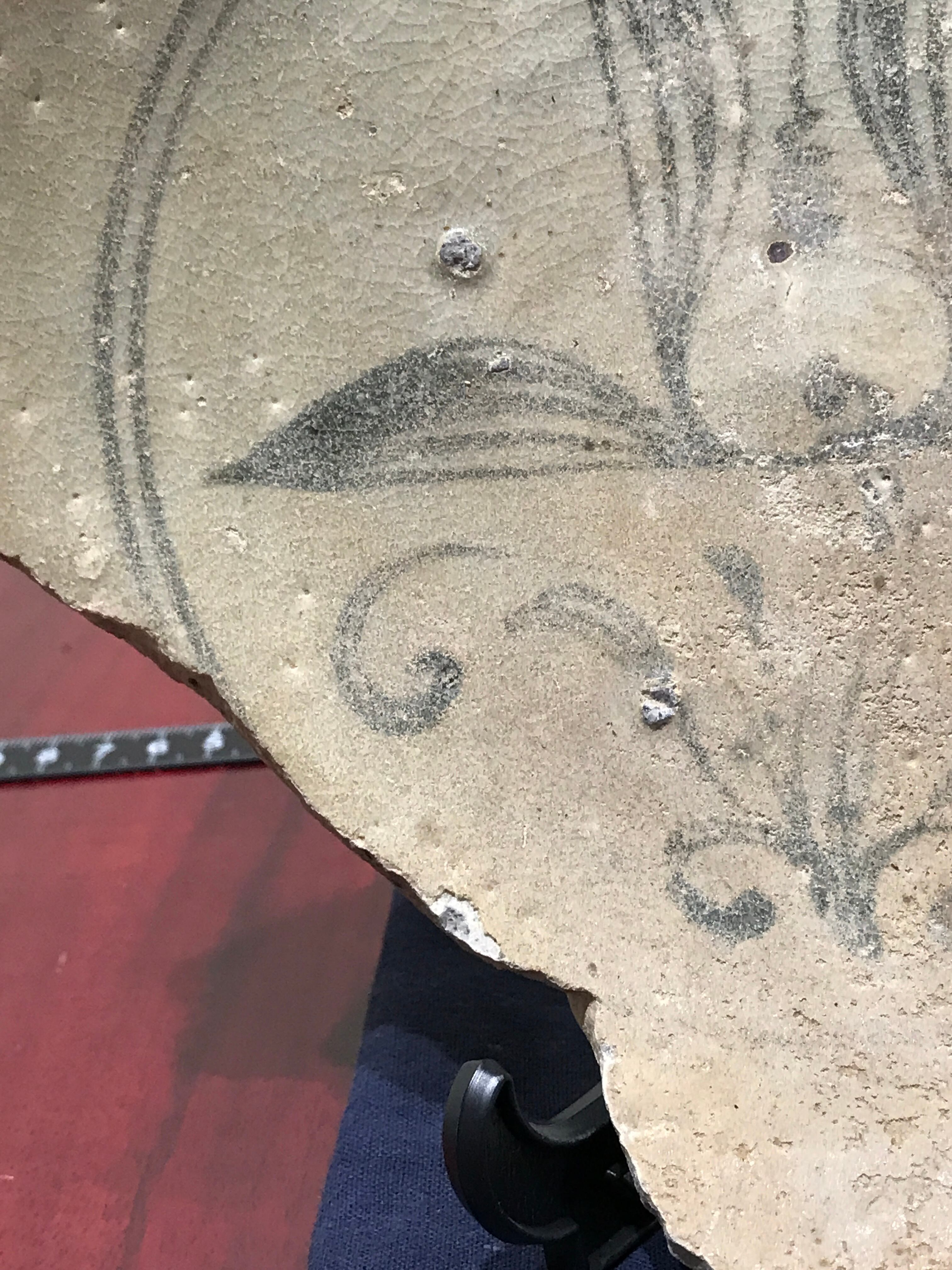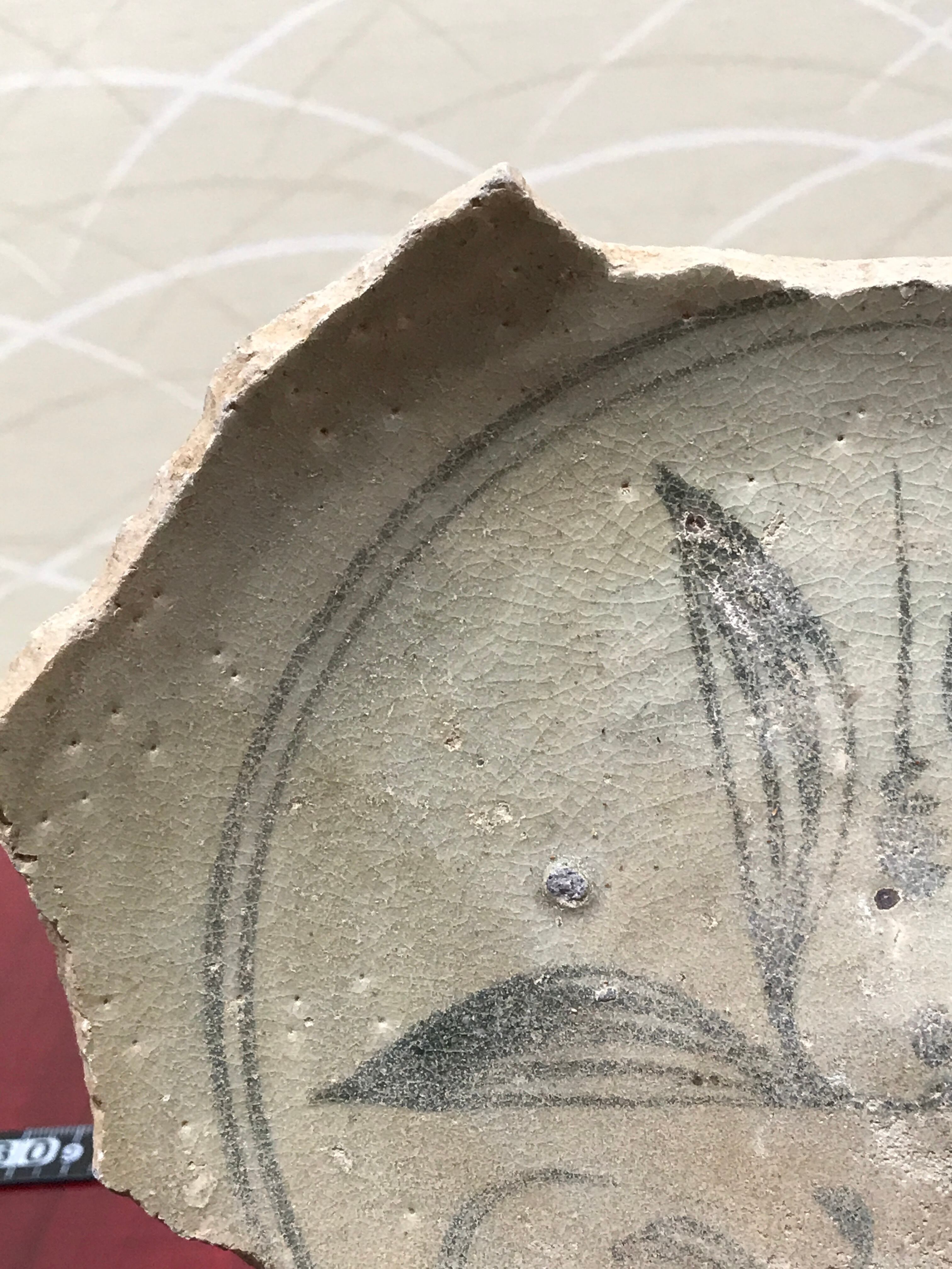 鉄絵の唐草文様が美しい、宋胡録の15c タイ製陶片(鉢)です。