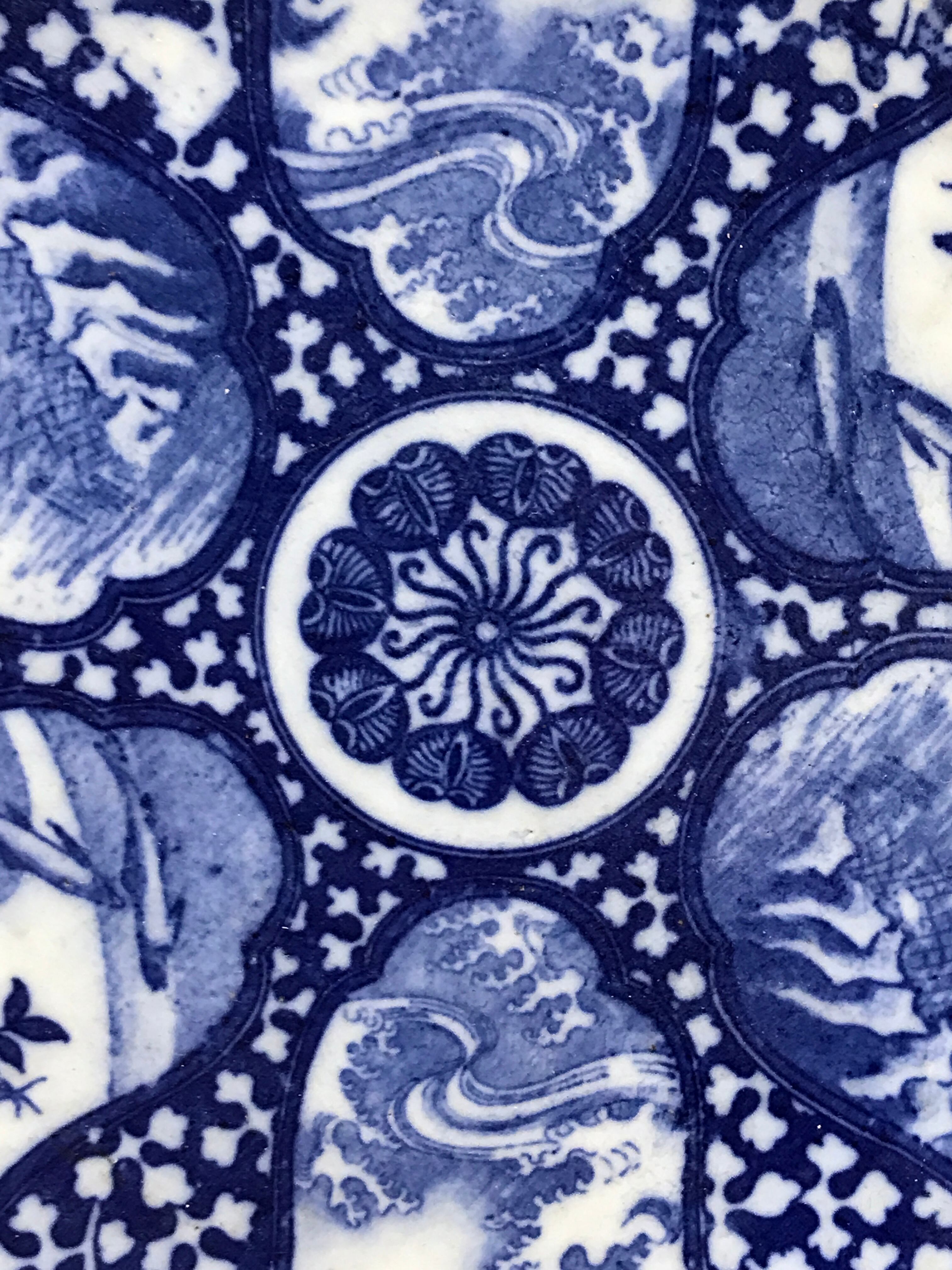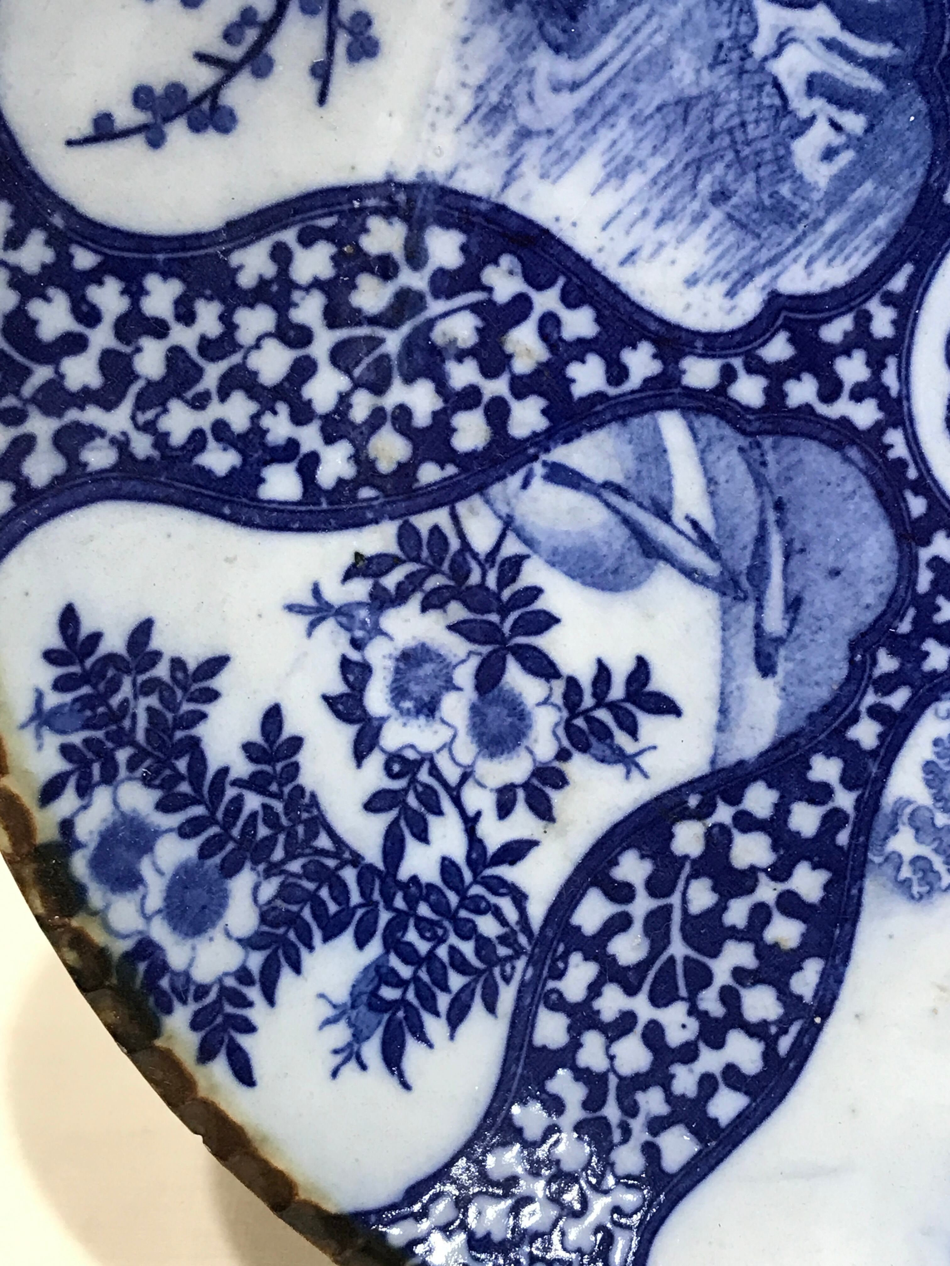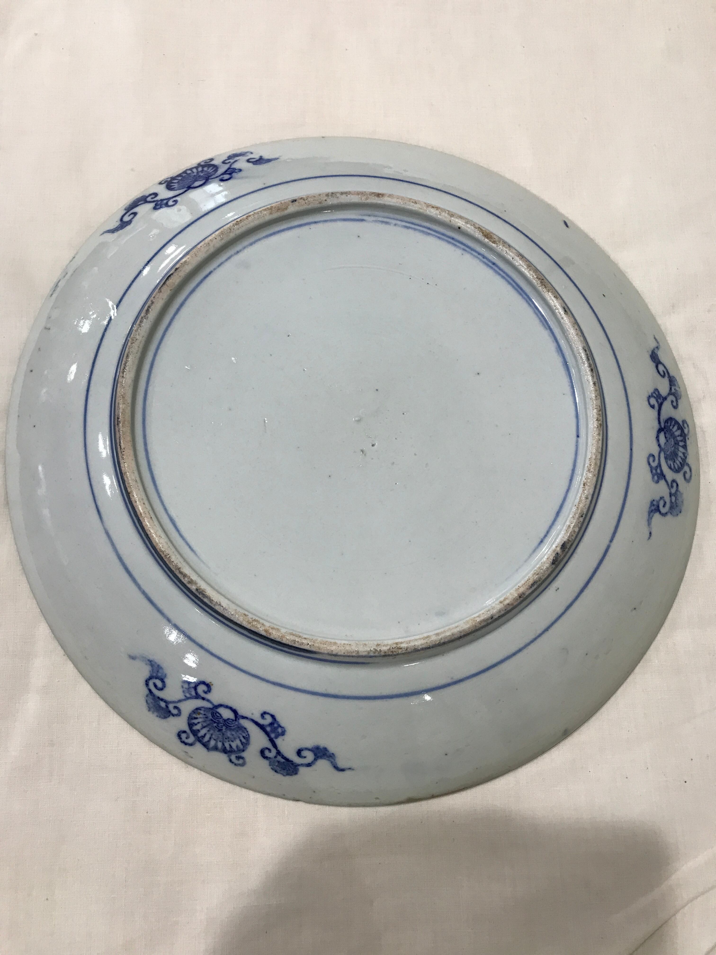 印判手 染付燕鮎文イゲ皿 径29cm 高さ4.2cm