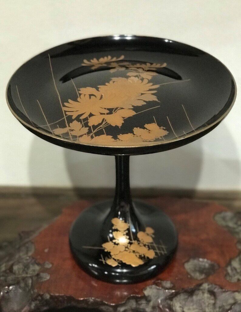 Chrysanthemum lacquer plate with legs (Takatsuki)